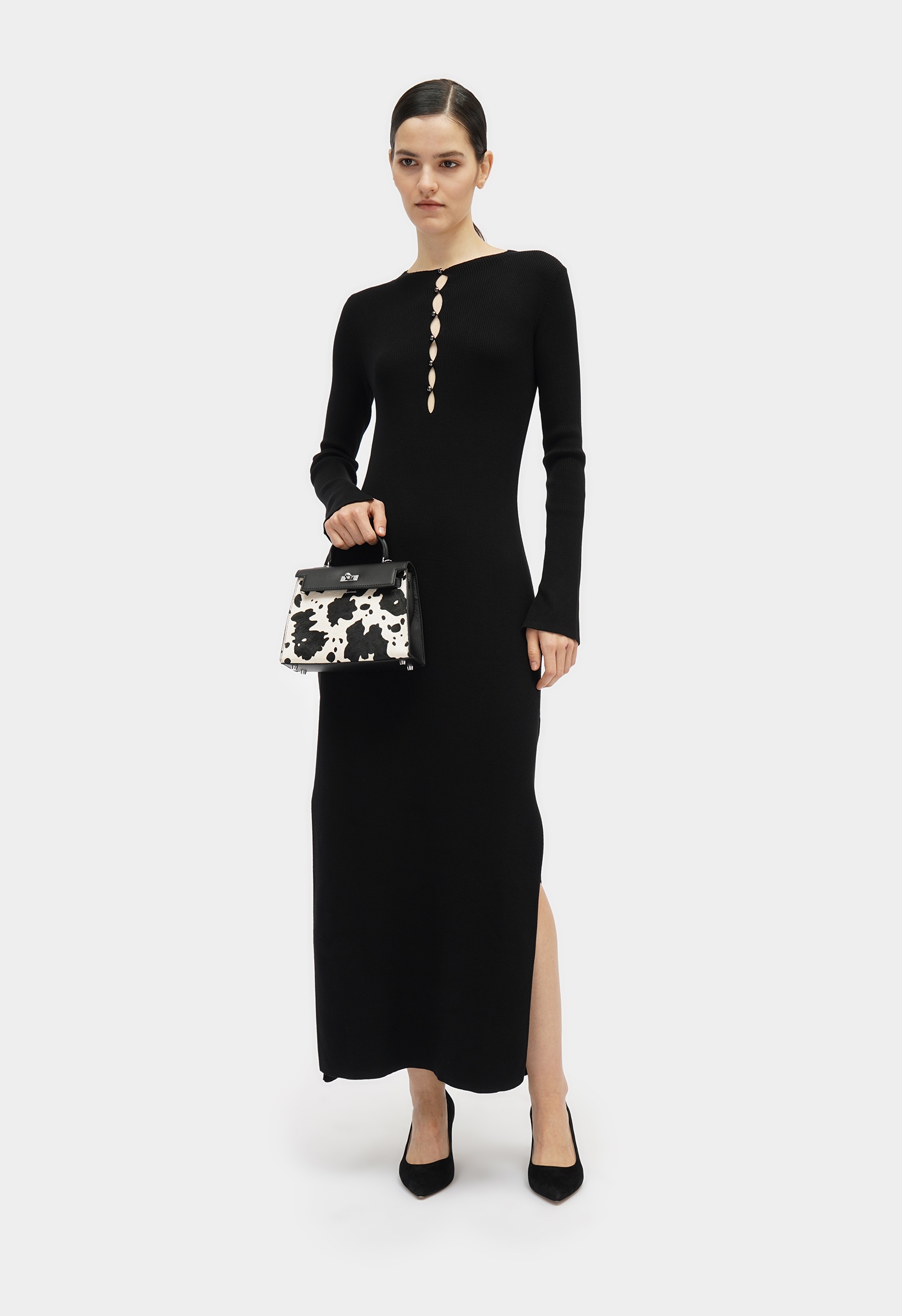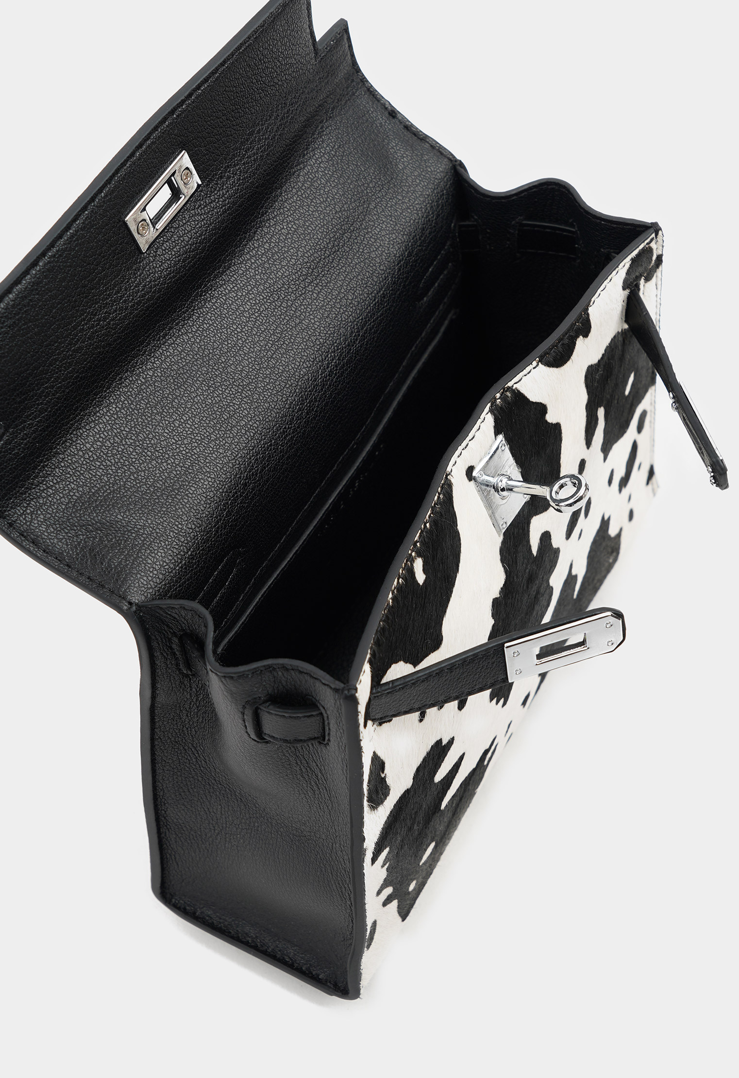 Оригинальная сумка из новой коллекции изготовлена из натуральной кожи и представлена в черном цвете. Актуальный крой дополнен короткой ручкой и анималистичным принтом. Основное отделение закрывается на пряжку и имеет два внутренних кармана для мелочей. Трендовая модель удачно сочетается с элементами классического и базового гардероба.