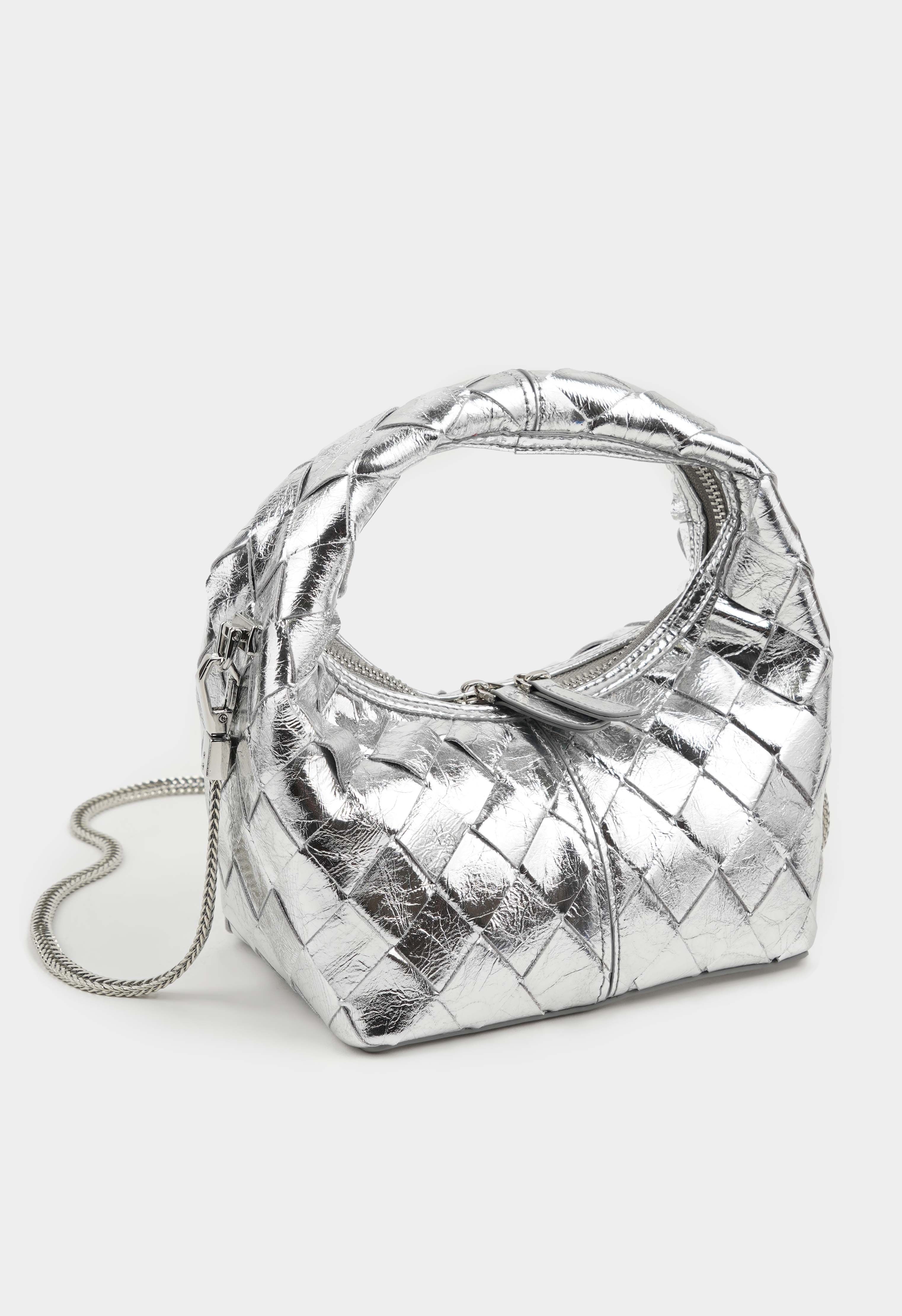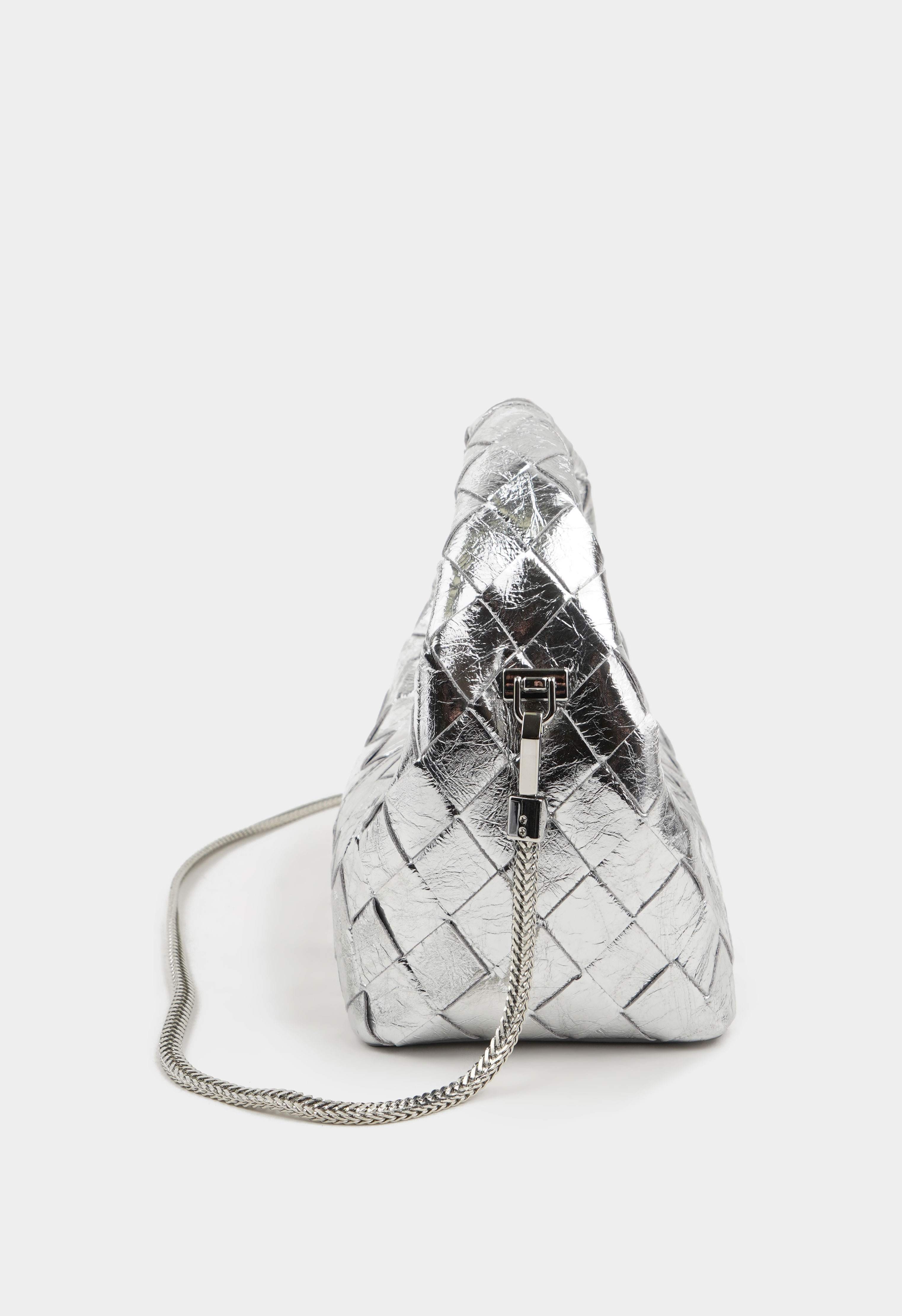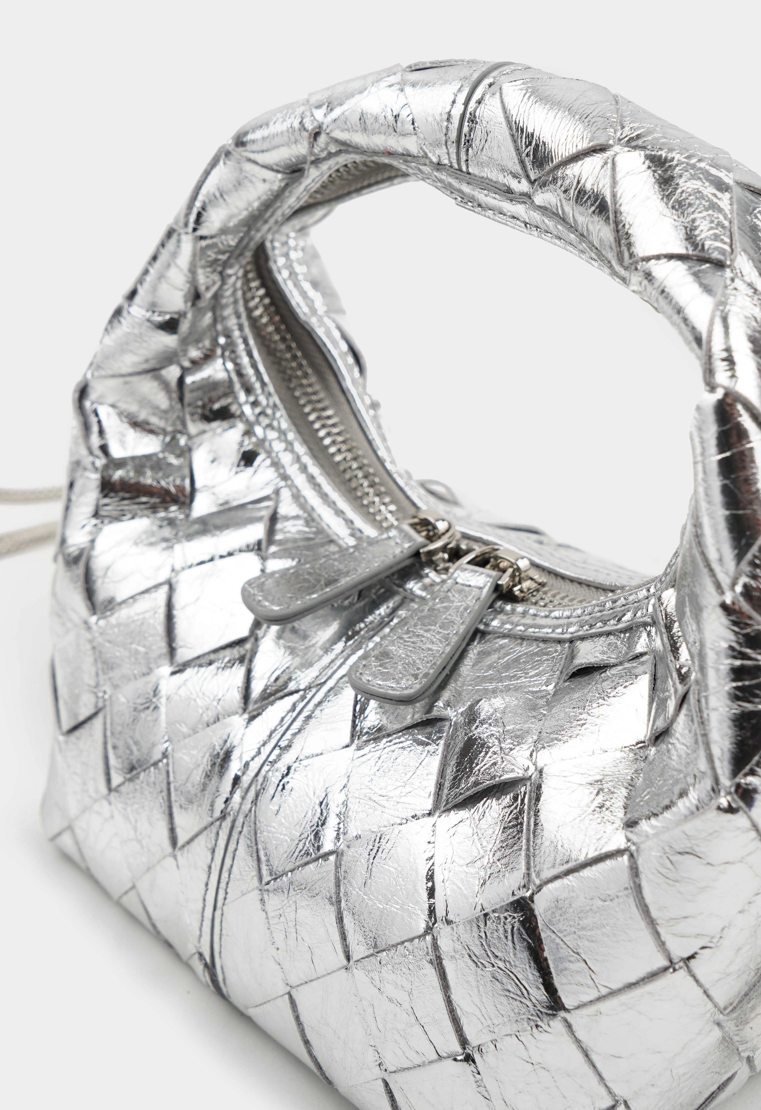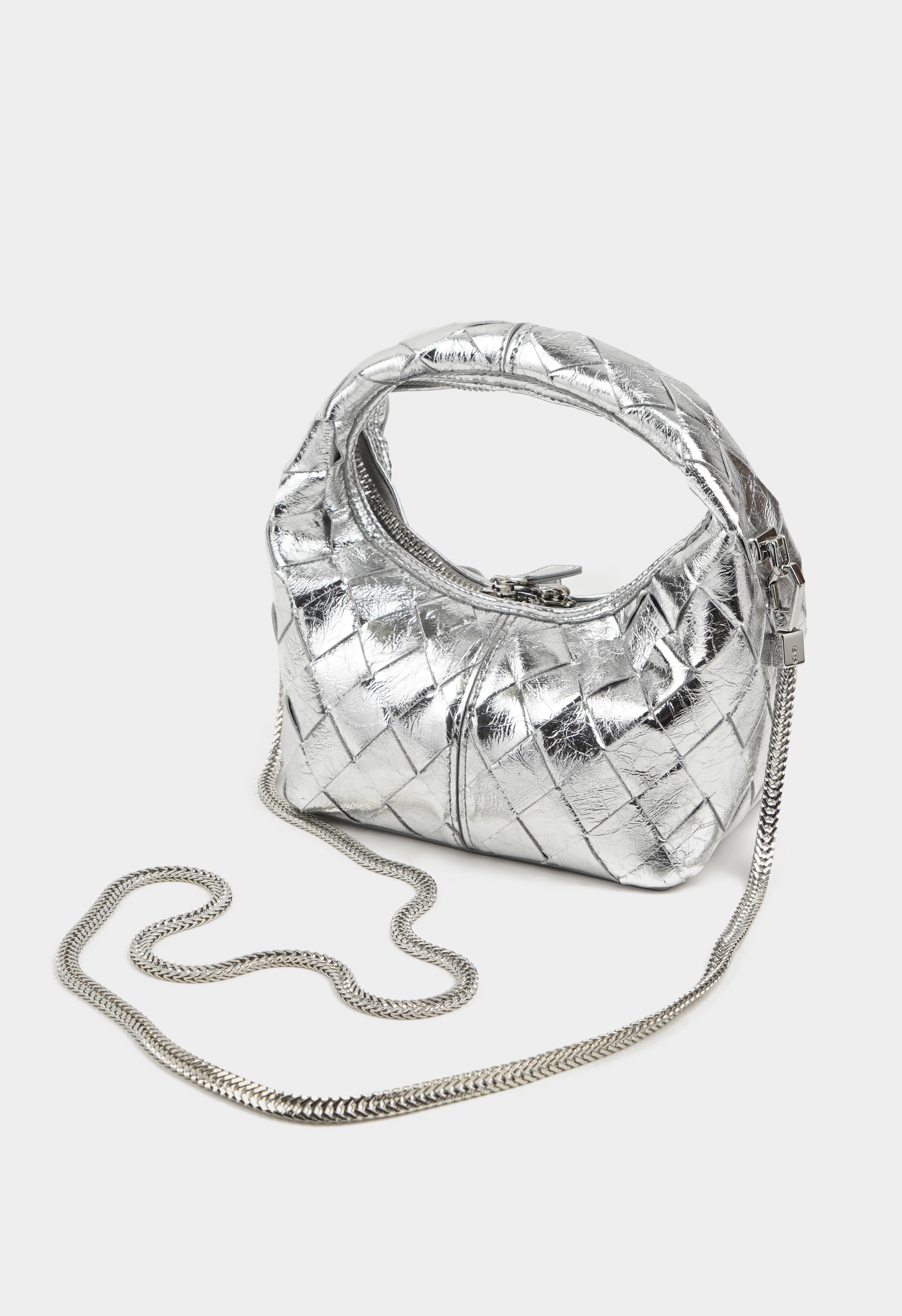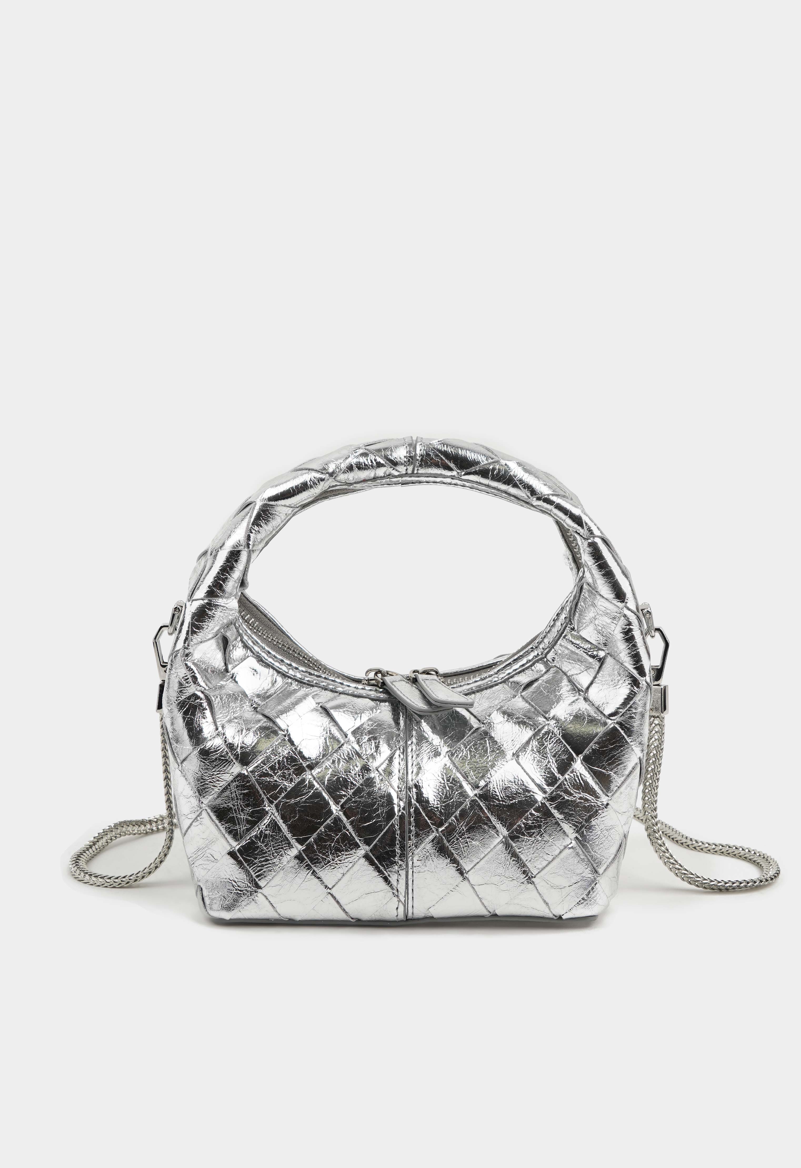 Сумка из натуральной кожи в серебряном цвете. Основное отделение застегивается на молнию, а стильный дизайн дополняют фурнитура в тон модели и удобная ручка. В комплект входит плечевой ремень.
