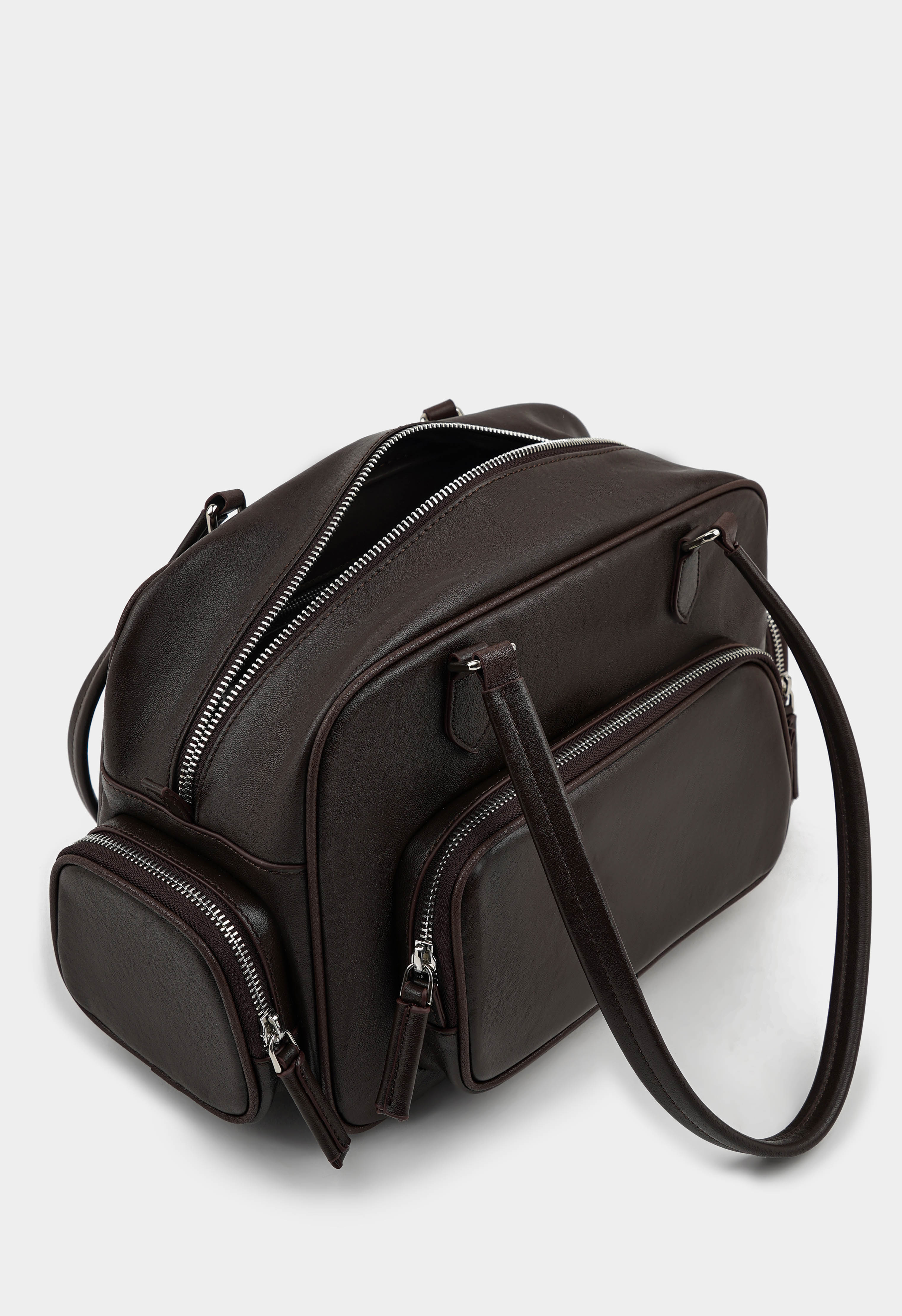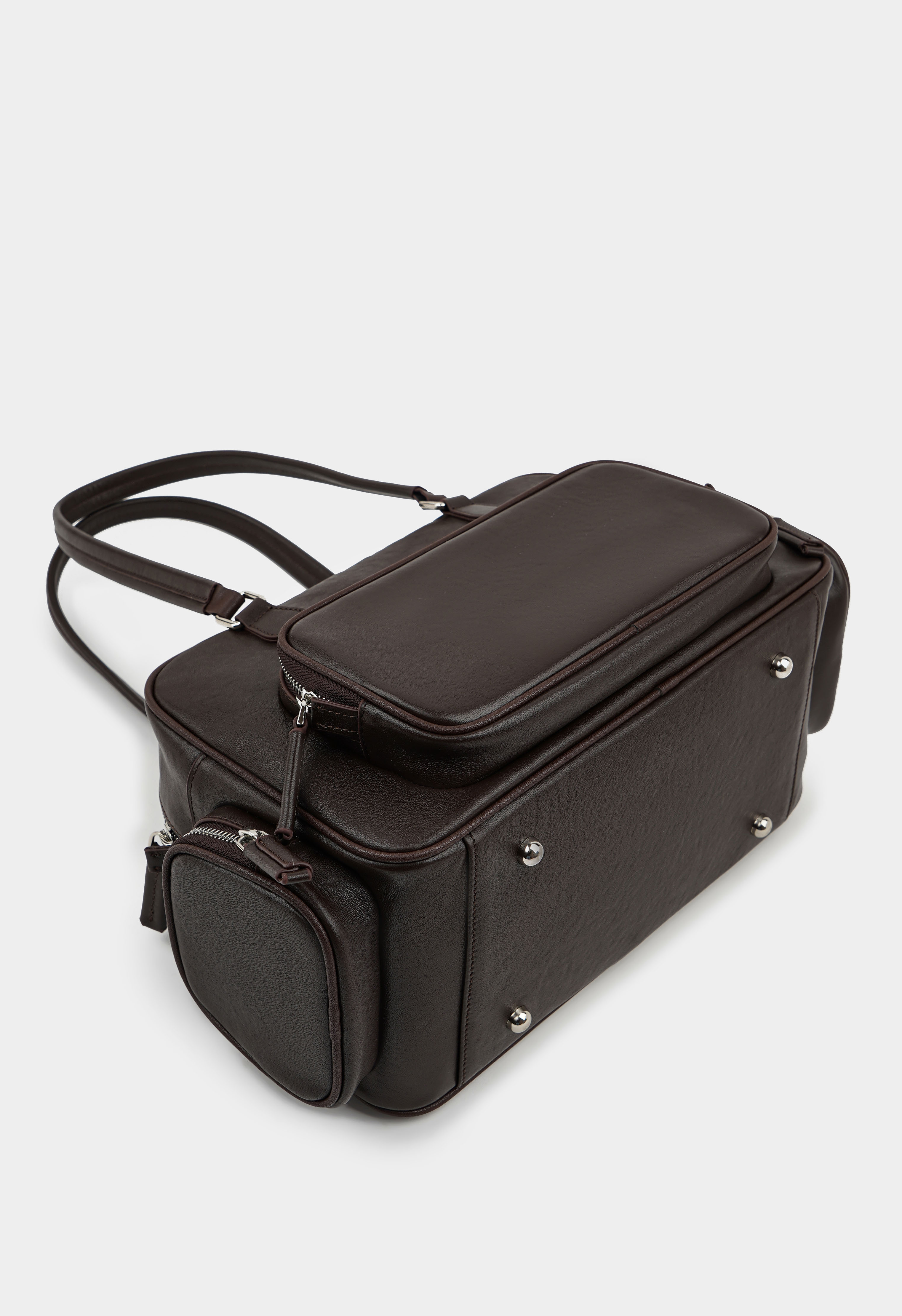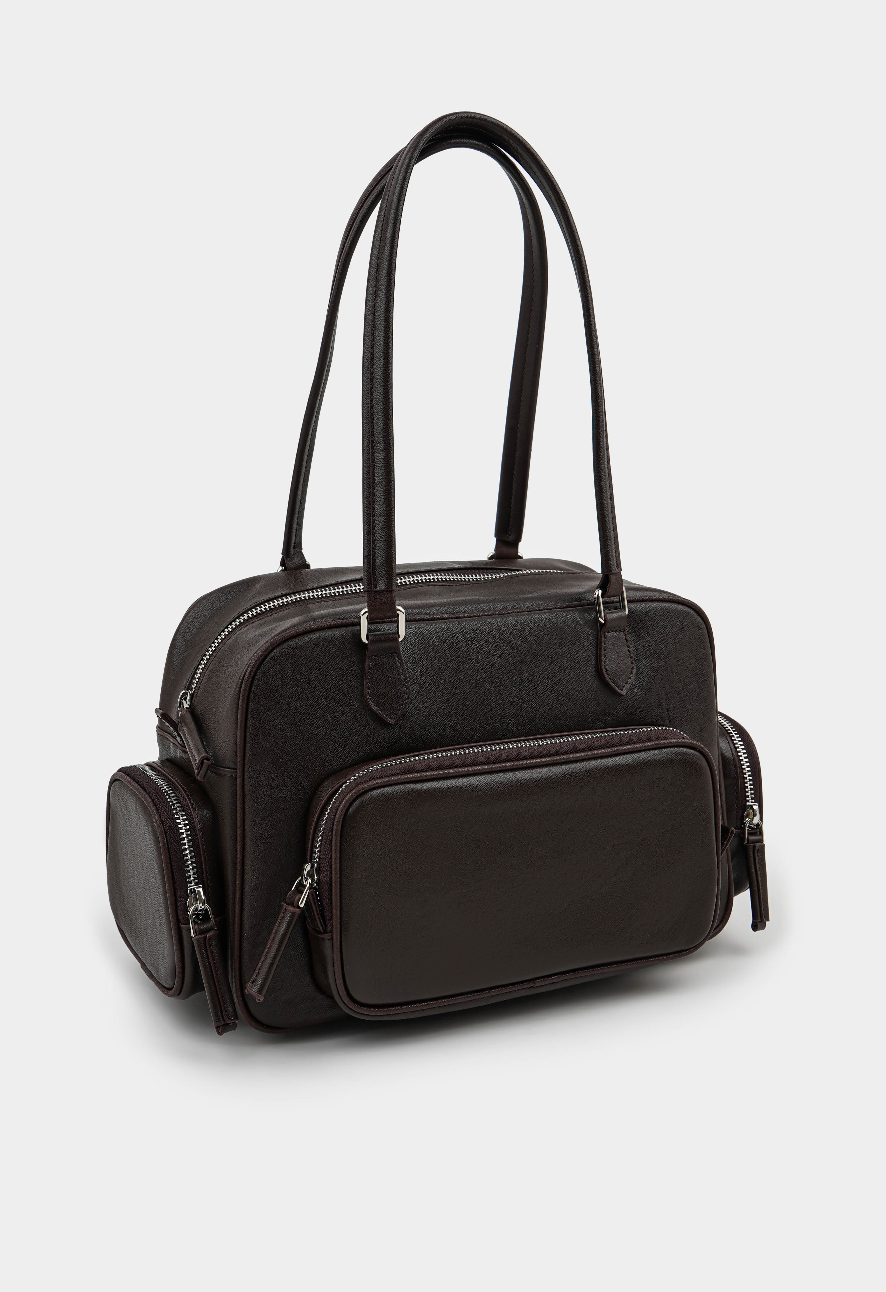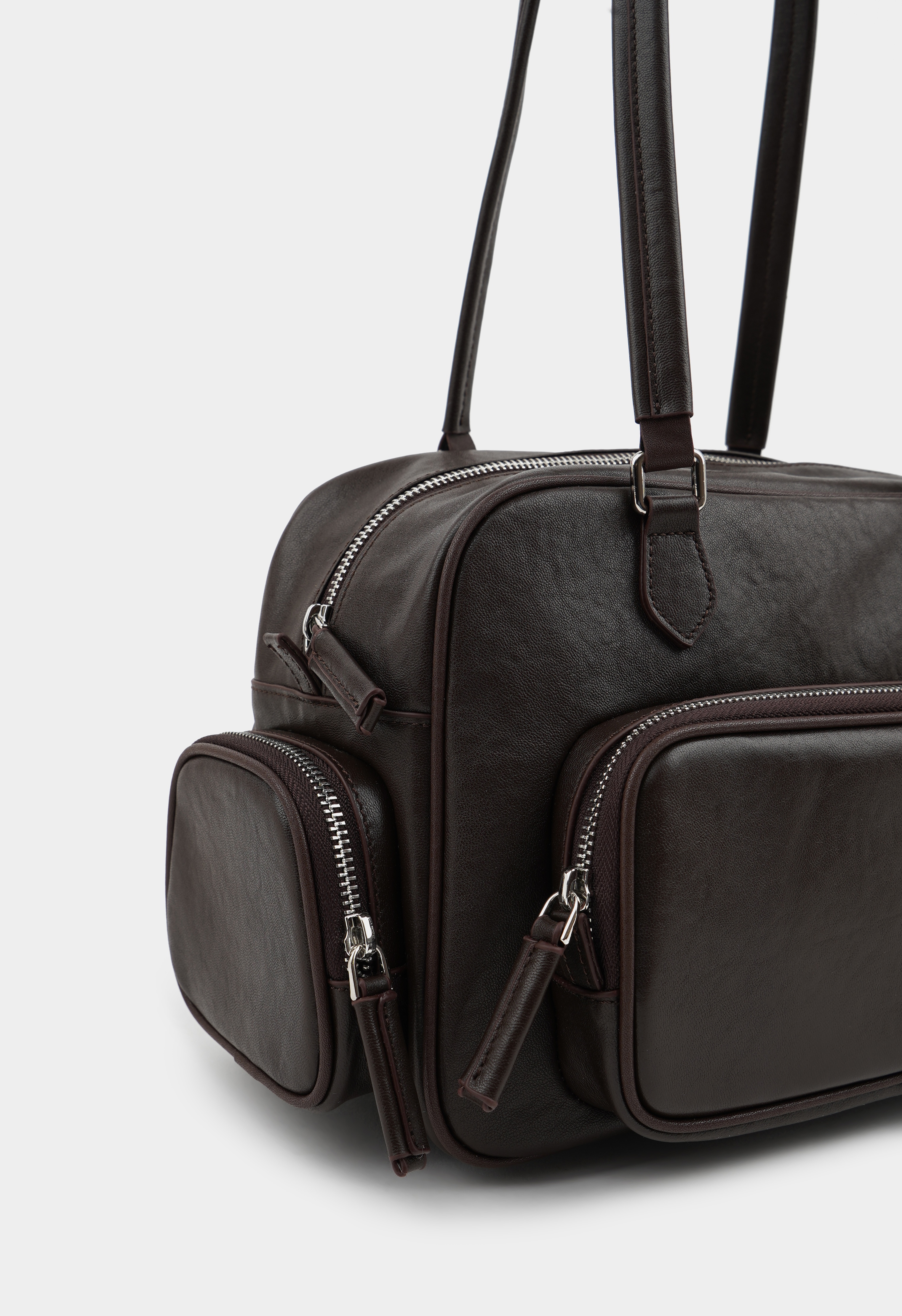 Повседневная сумка выполнена в классическом коричневом цвете из натуральной кожи. Модель закрывается на удобную молнию, а серебряная фурнитура придаёт изделию изысканность и элегантность. Внутри и снаружи сумки предусмотрено два и четыре удобных кармана соответственно, где можно удобно разместить необходимые мелочи. Модель станет отличным дополнением к образу, подчеркнёт вкус и статус её обладательницы.