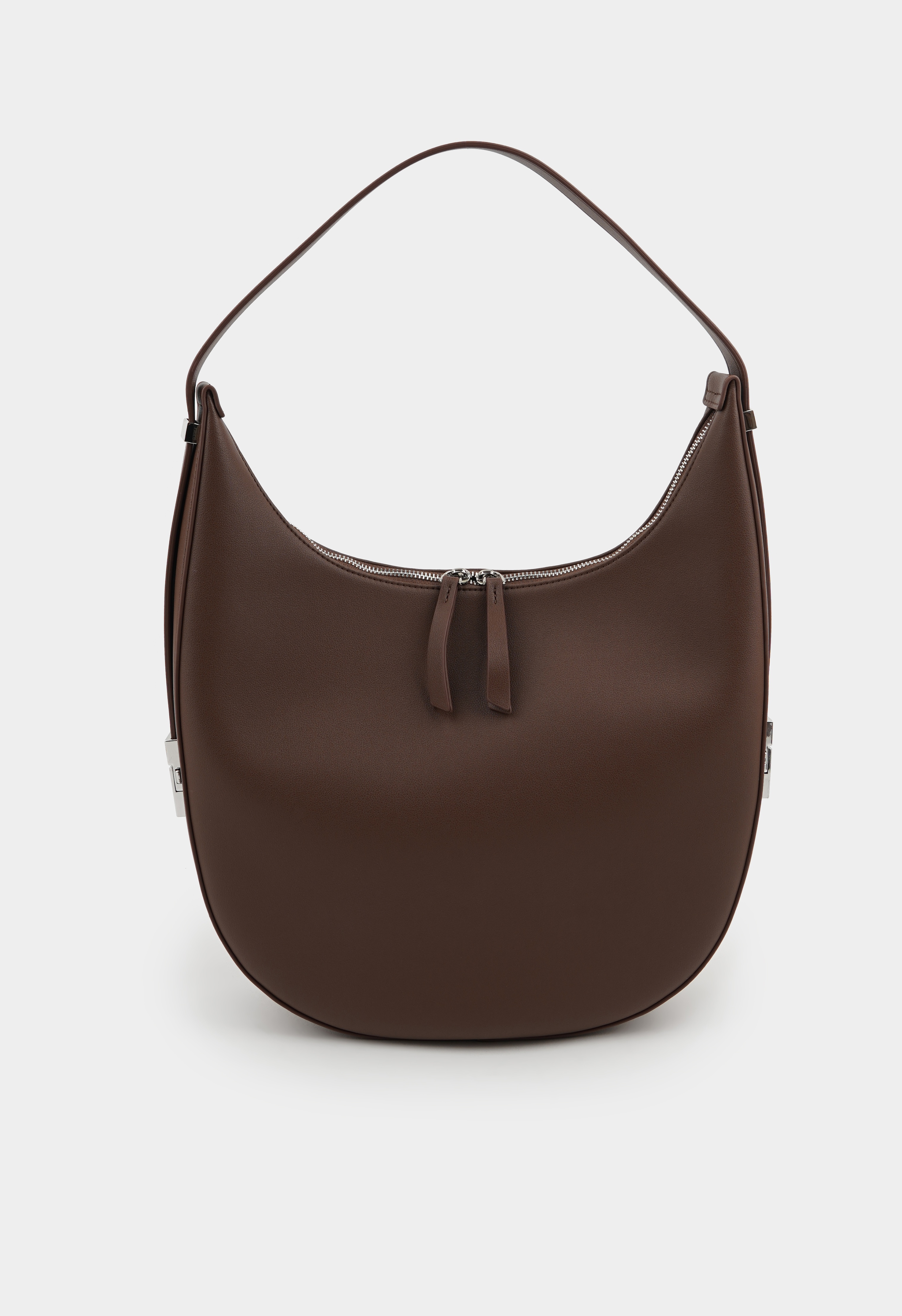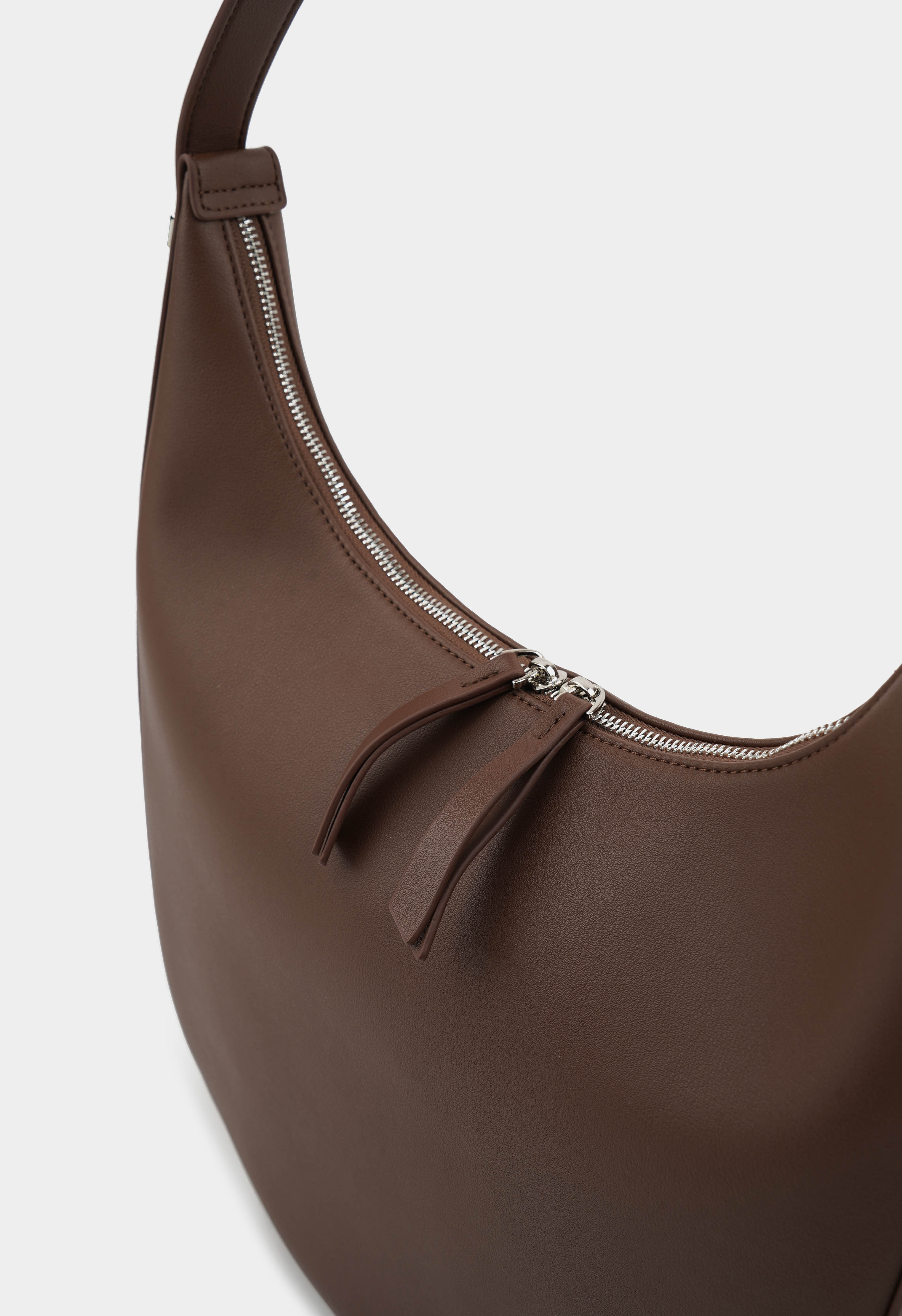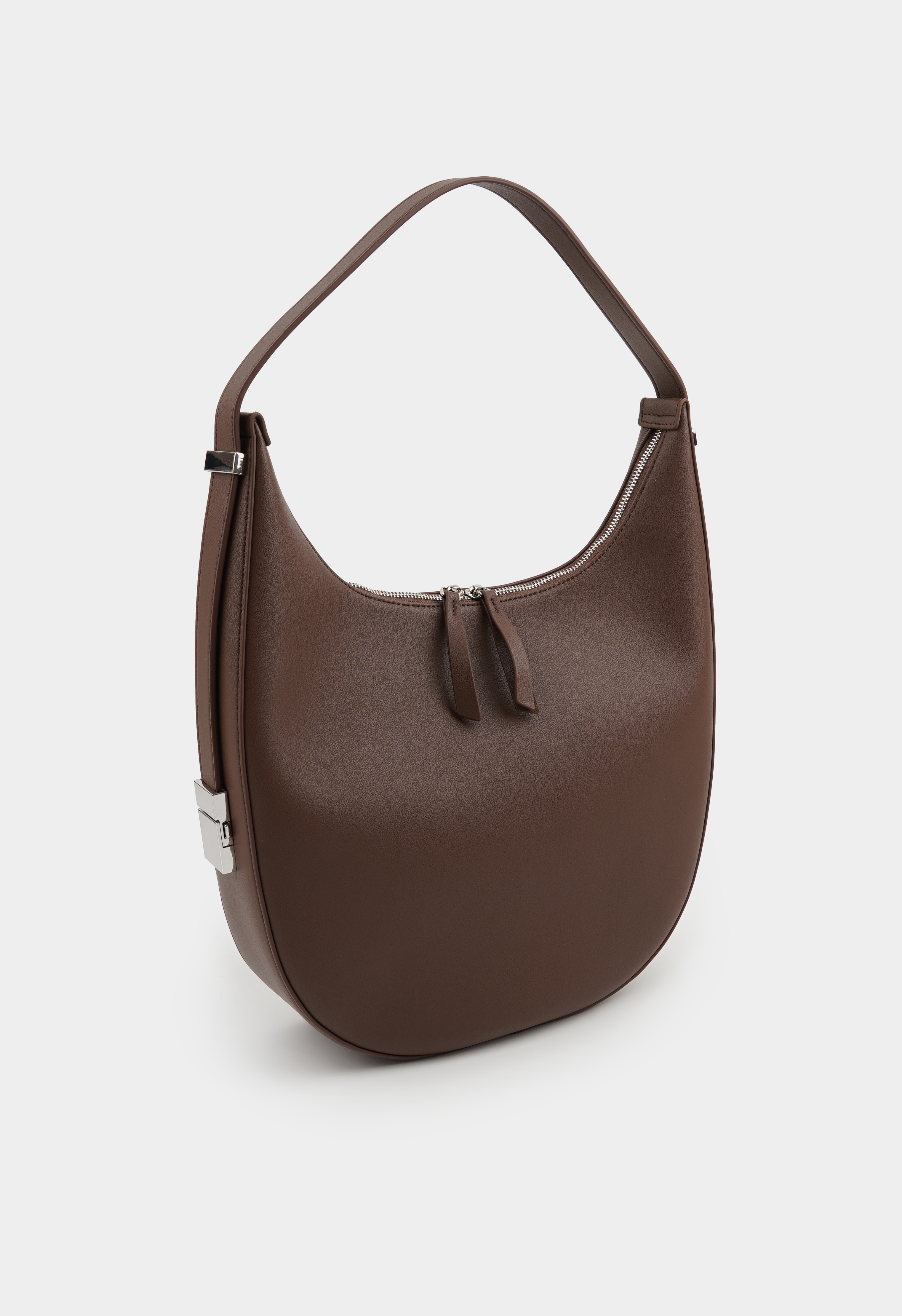 Сумка из натуральной кожи выполнена в классическом коричневом цвете, который никогда не выходит из моды. Молния обеспечивает надежное закрытие, а регулируемая ручка позволяет носить модель как в руках, так и на плече. Благодаря двум внутренним карманам можно удобно разместить необходимые мелочи. Особое внимание заслуживает серебряная фурнитура, которая придает сумке изысканный и элегантный вид.