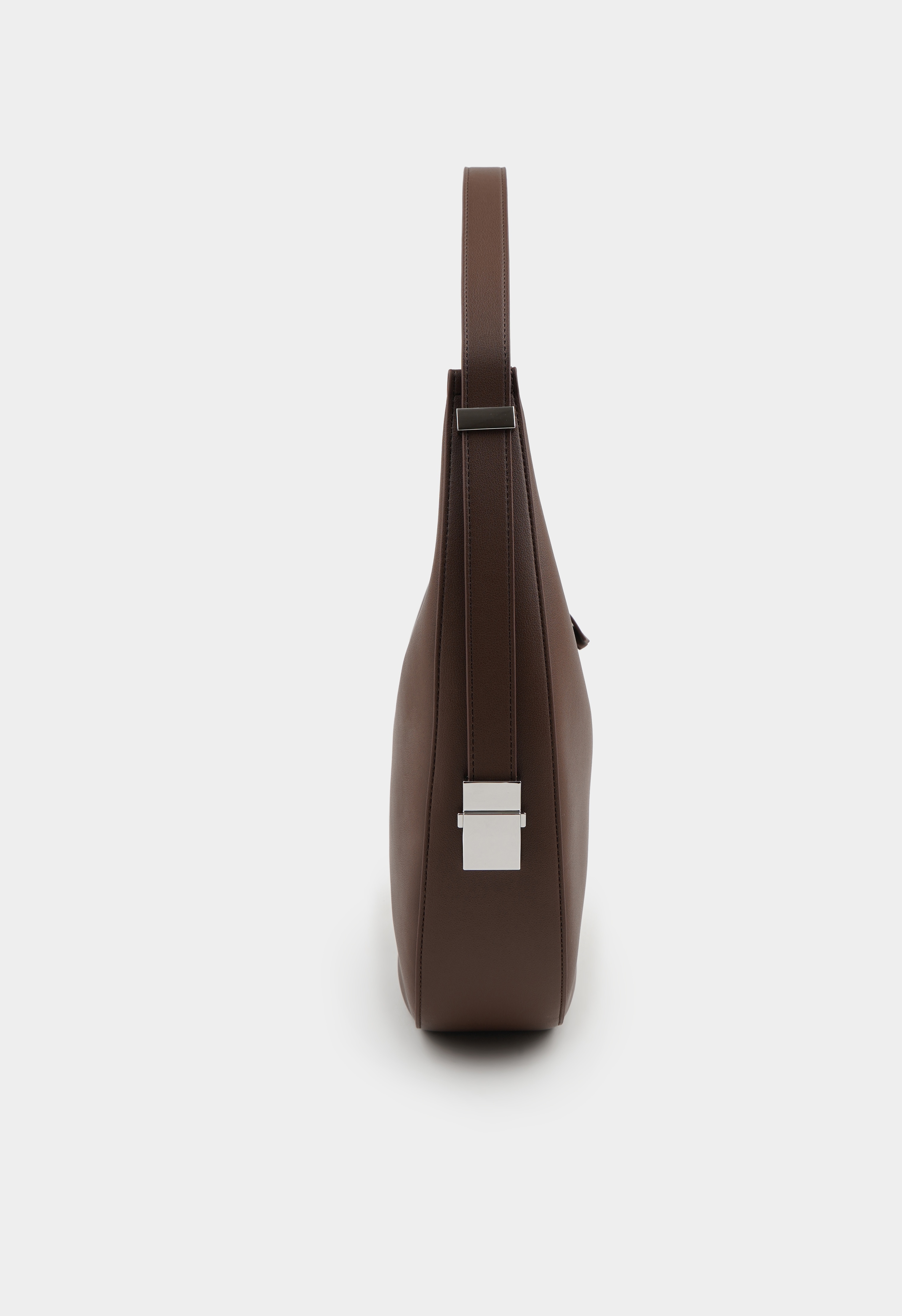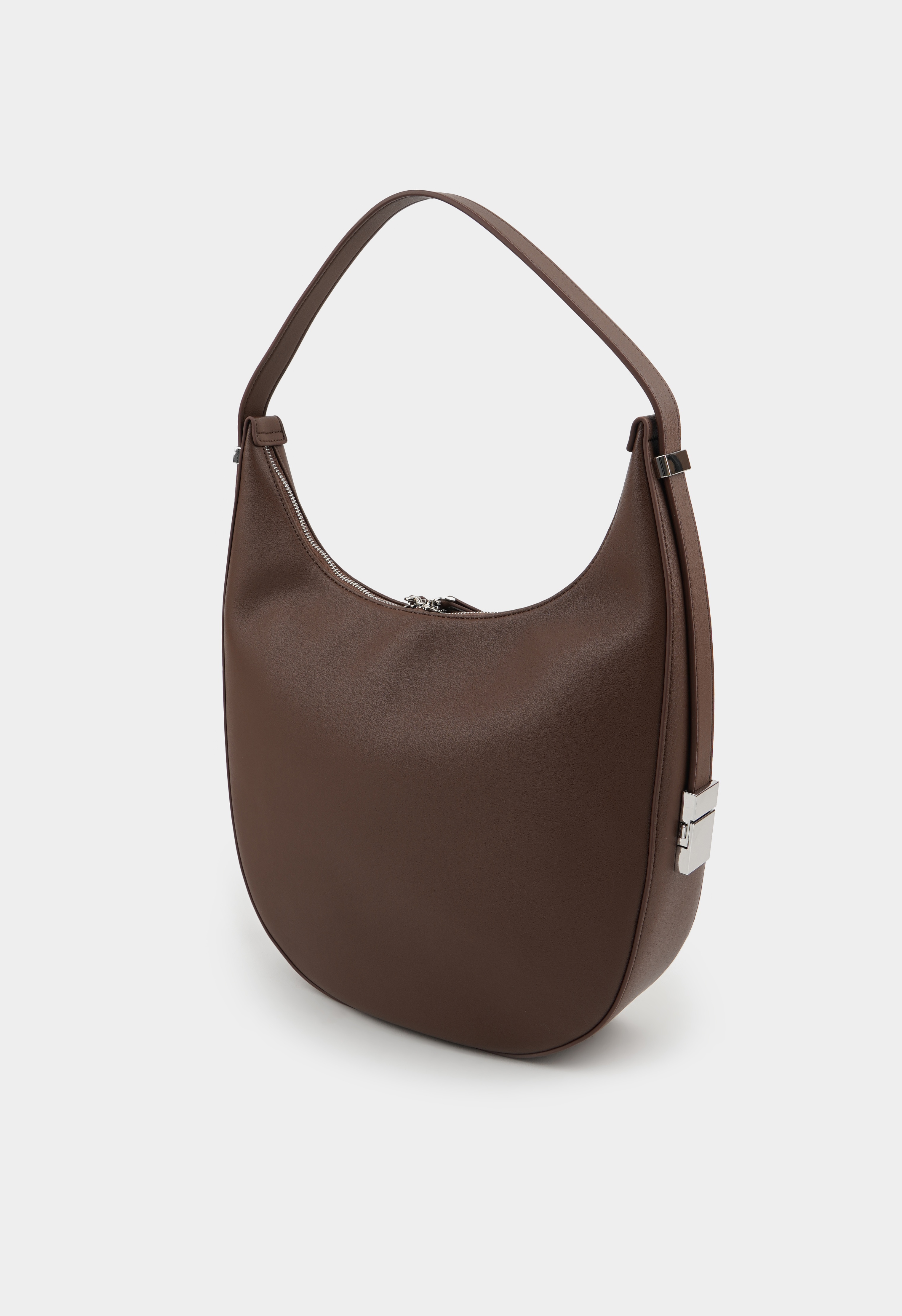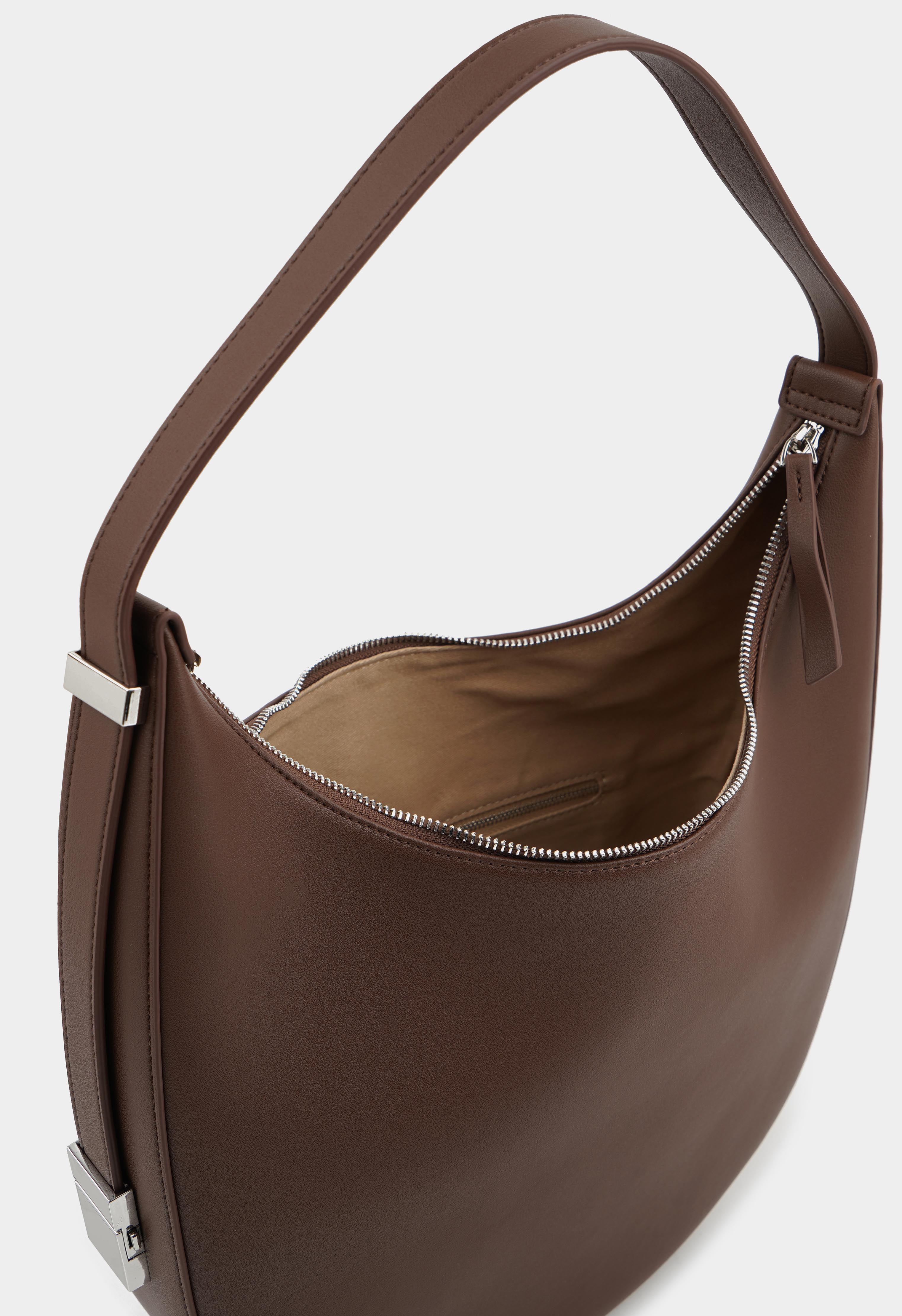 Сумка из натуральной кожи выполнена в классическом коричневом цвете, который никогда не выходит из моды. Молния обеспечивает надежное закрытие, а регулируемая ручка позволяет носить модель как в руках, так и на плече. Благодаря двум внутренним карманам можно удобно разместить необходимые мелочи. Особое внимание заслуживает серебряная фурнитура, которая придает сумке изысканный и элегантный вид.