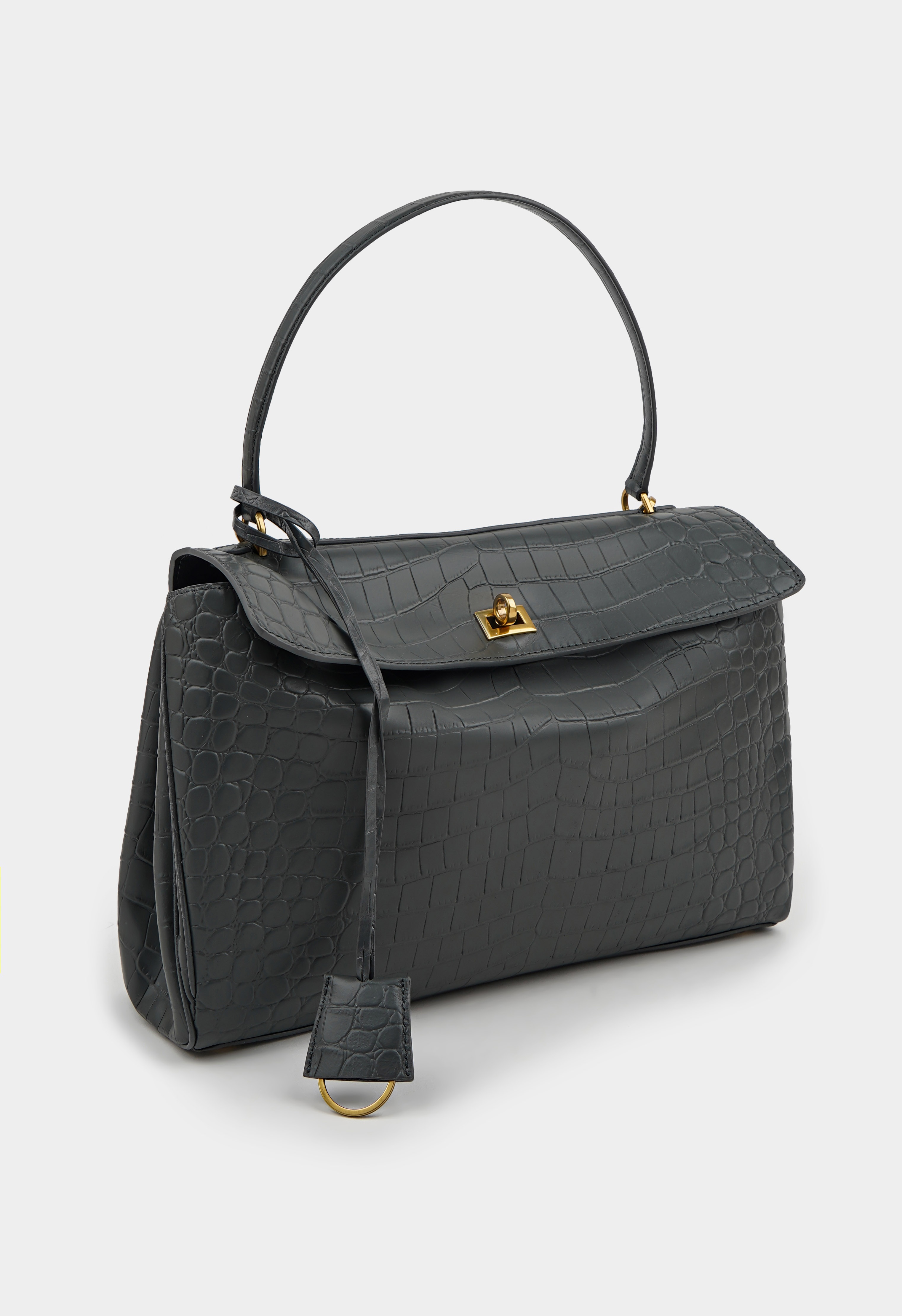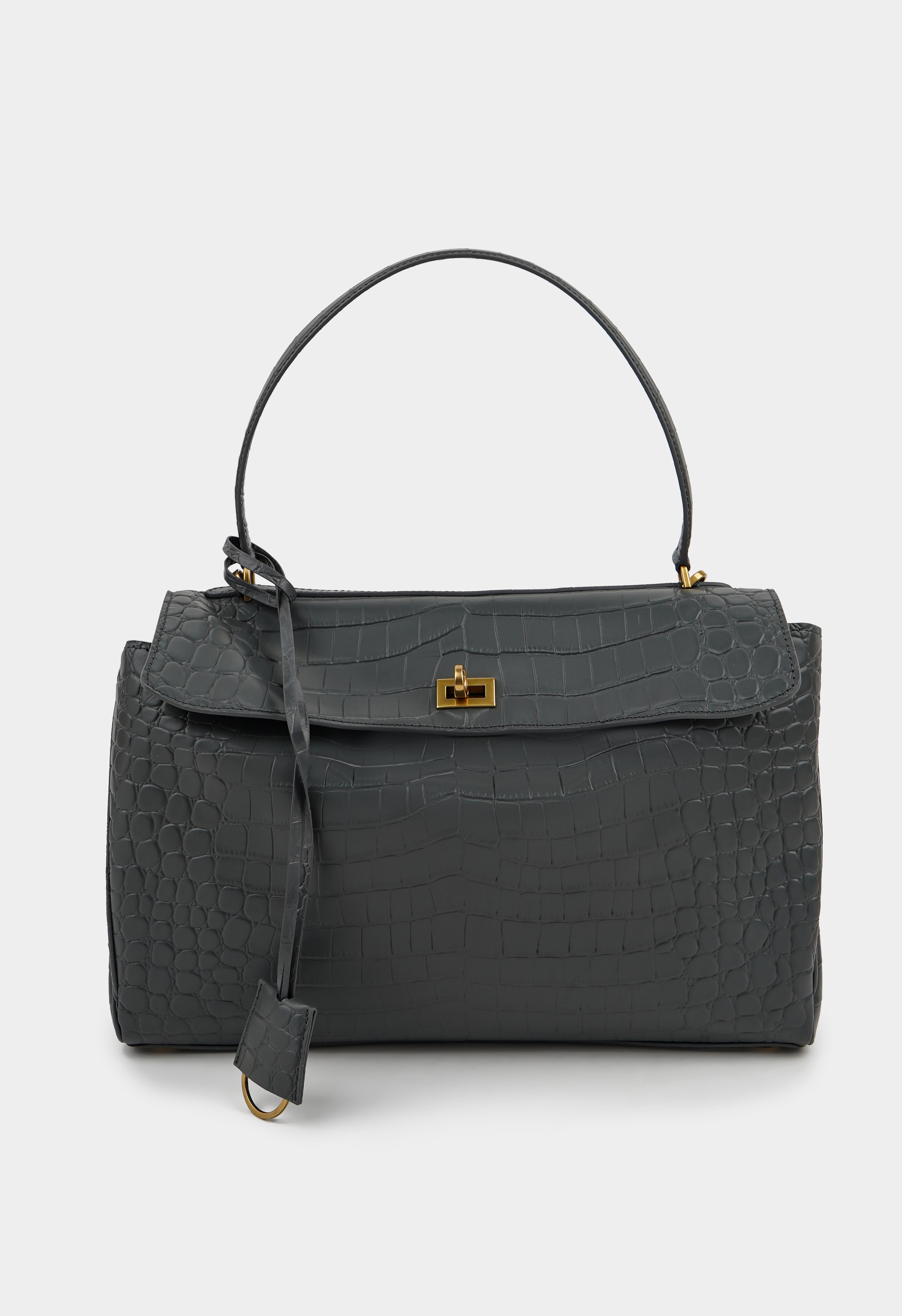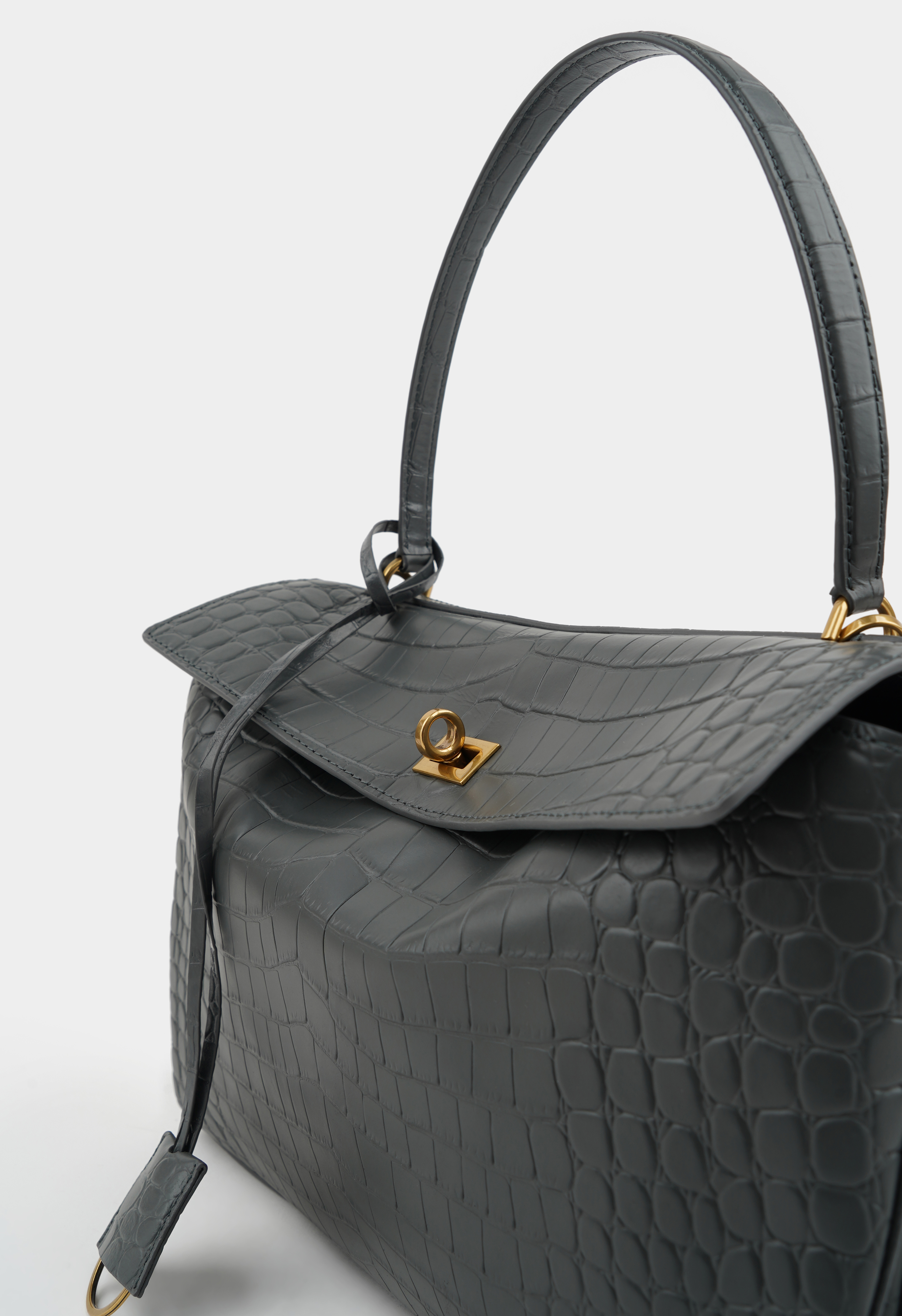 Сумка из натуральной кожи – стильный и практичный аксессуар серого цвета, которая сочетается с любой одеждой. Модель дополнена золотой фурнитурой и застёгивается на пряжку. Внутри сумки расположен один карман для мелочей, а снаружи – два кармана для самого необходимого. Плечевой ремень регулируется по длине, а декор в виде кожаной тесьмы добавляет элегантности.