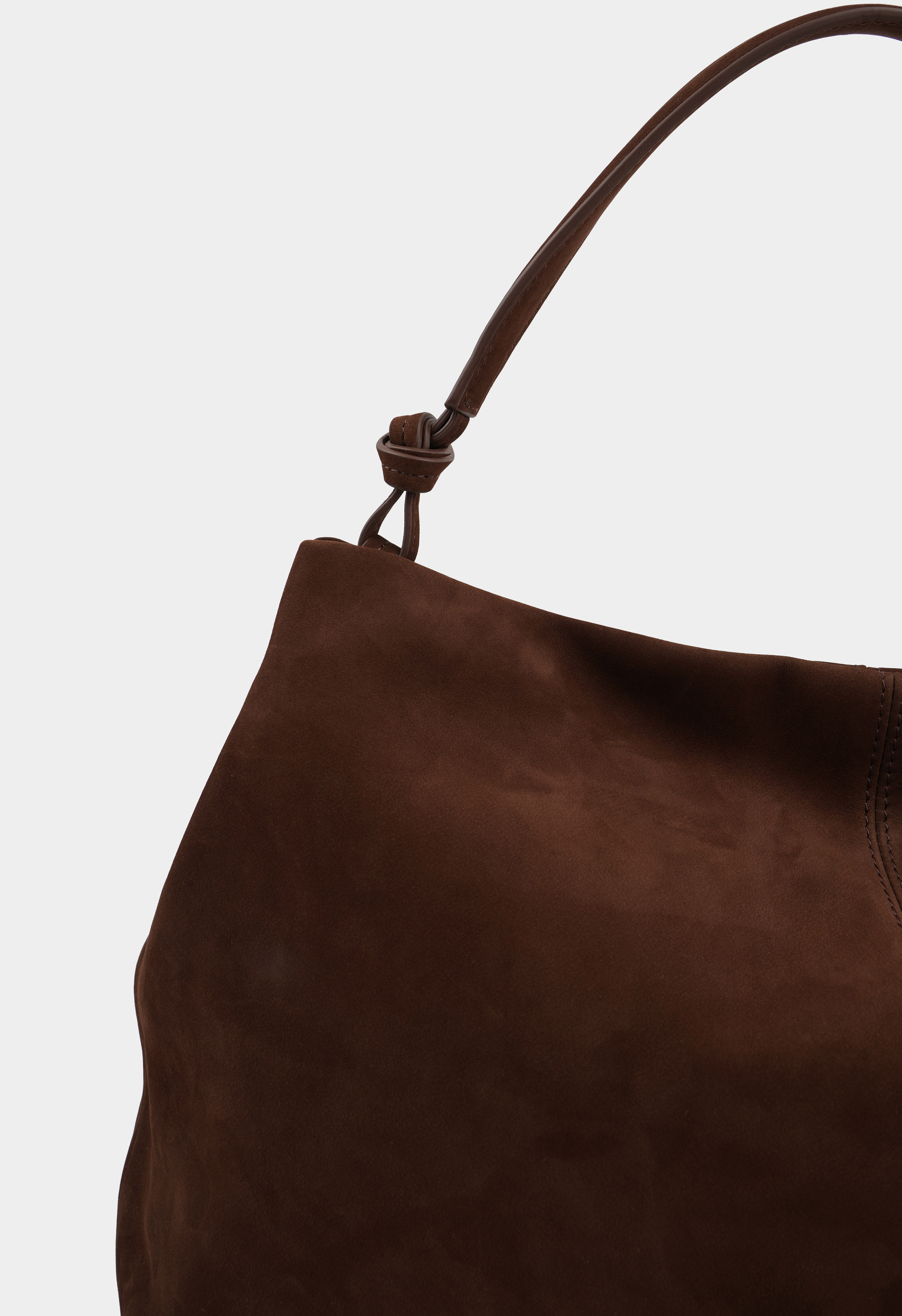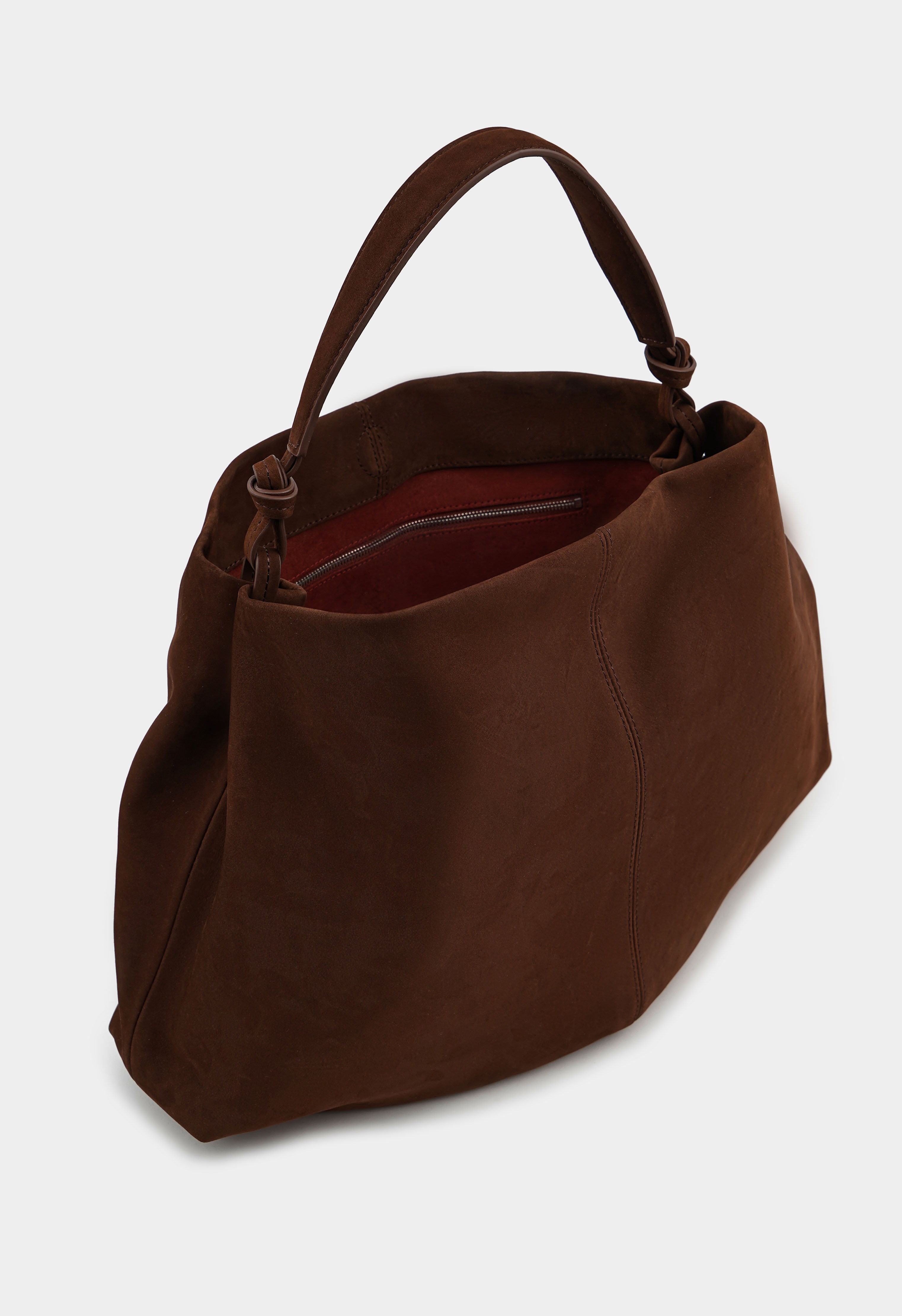 Современная сумка из натурального нубука коричневого цвета – отличный выбор для стильных людей. Застёжка-магнит обеспечивает удобное открытие и закрытие сумки, а серебряная фурнитура придаёт ей изысканный вид. Два внутренних кармана позволяют аккуратно разместить все необходимые мелочи, а качественная натуральная кожа гарантирует долгий срок службы.