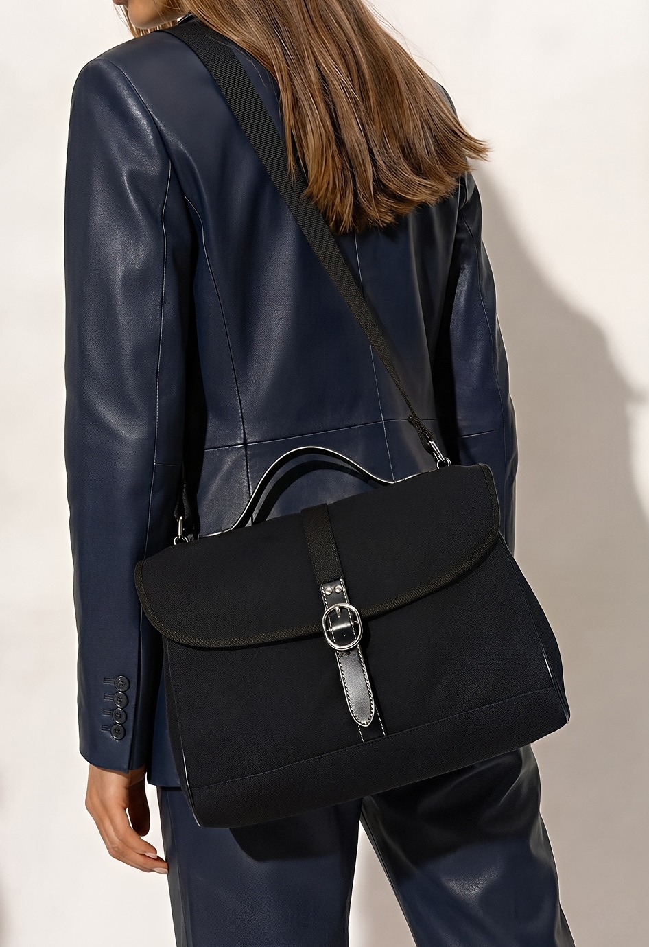 Как-будто создана для вашего активного дня – повседневная сумка из черного текстиля сочетает в себе легкость, удобство и современный стиль. Прочный материал устойчив к нагрузке, а минималистичный дизайн дополнен серебряной фурнитурой и аккуратной застежкой на кнопке. Внутри – два функциональных кармана, чтобы все необходимое было на своем месте. Регулируемая ручка позволяет адаптировать сумку под ваш стиль и образ жизни.