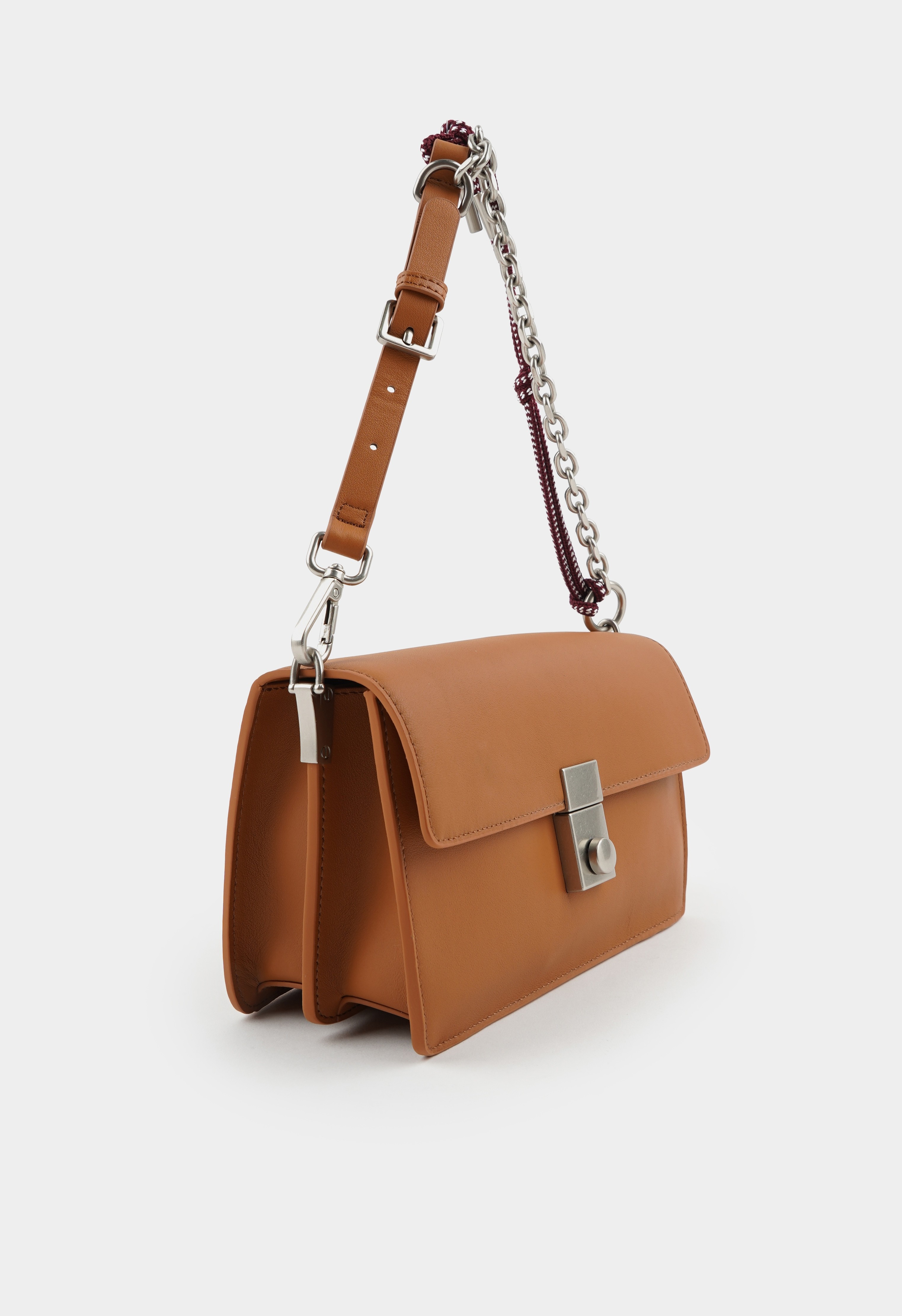 Минималистичная сумка из натуральной кожи актуального рыжего оттенка – это современный взгляд на классику, в котором сочетаются сдержанная элегантность и продуманный комфорт. Стильная пряжка, лаконичная серебряная фурнитура и декоративные кожаные ремешки на карабине придают образу характер и завершенность. Съемная ручка и удобный плечевой ремень позволяют легко менять стиль носки: от строгого до расслабленного городского.