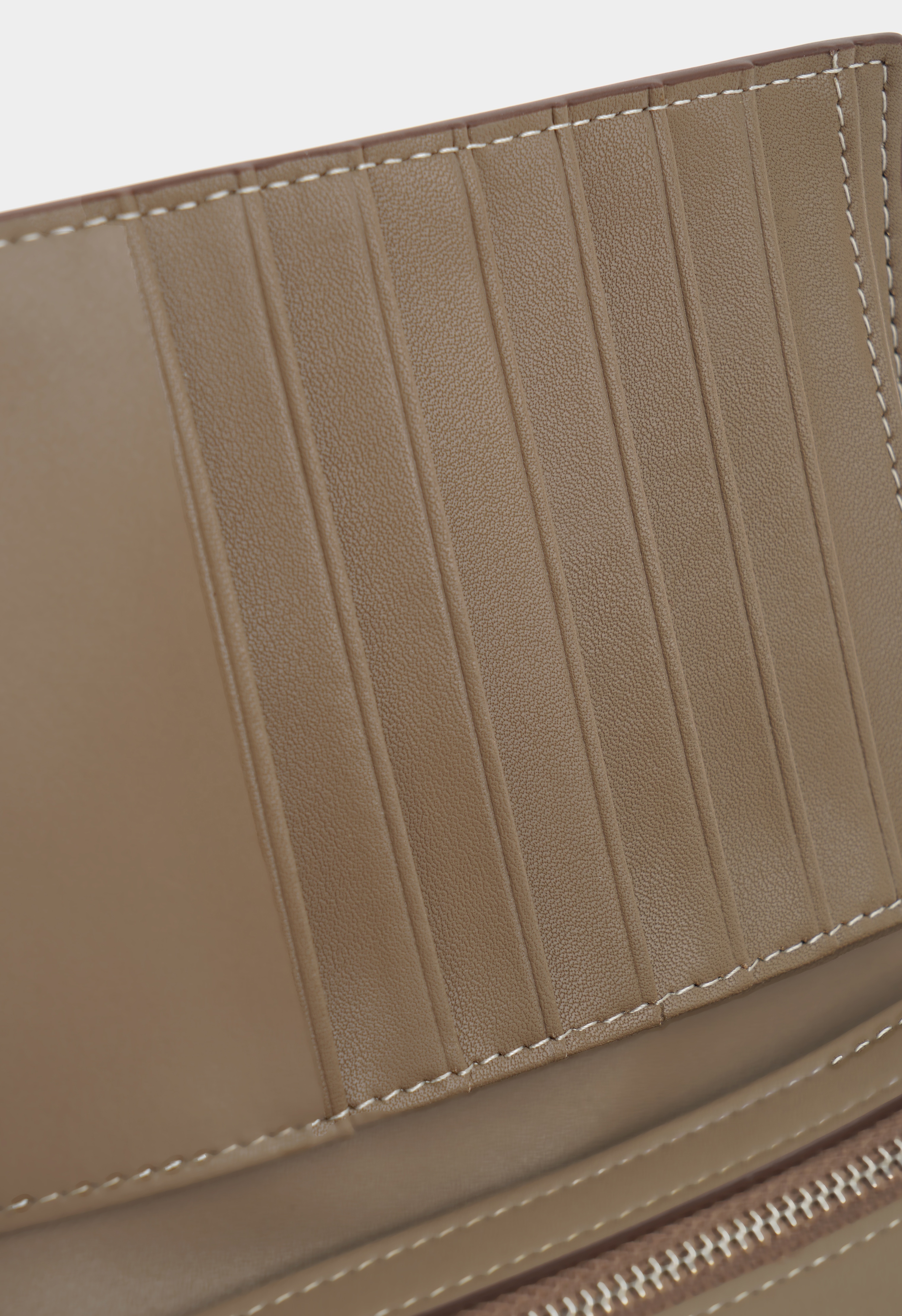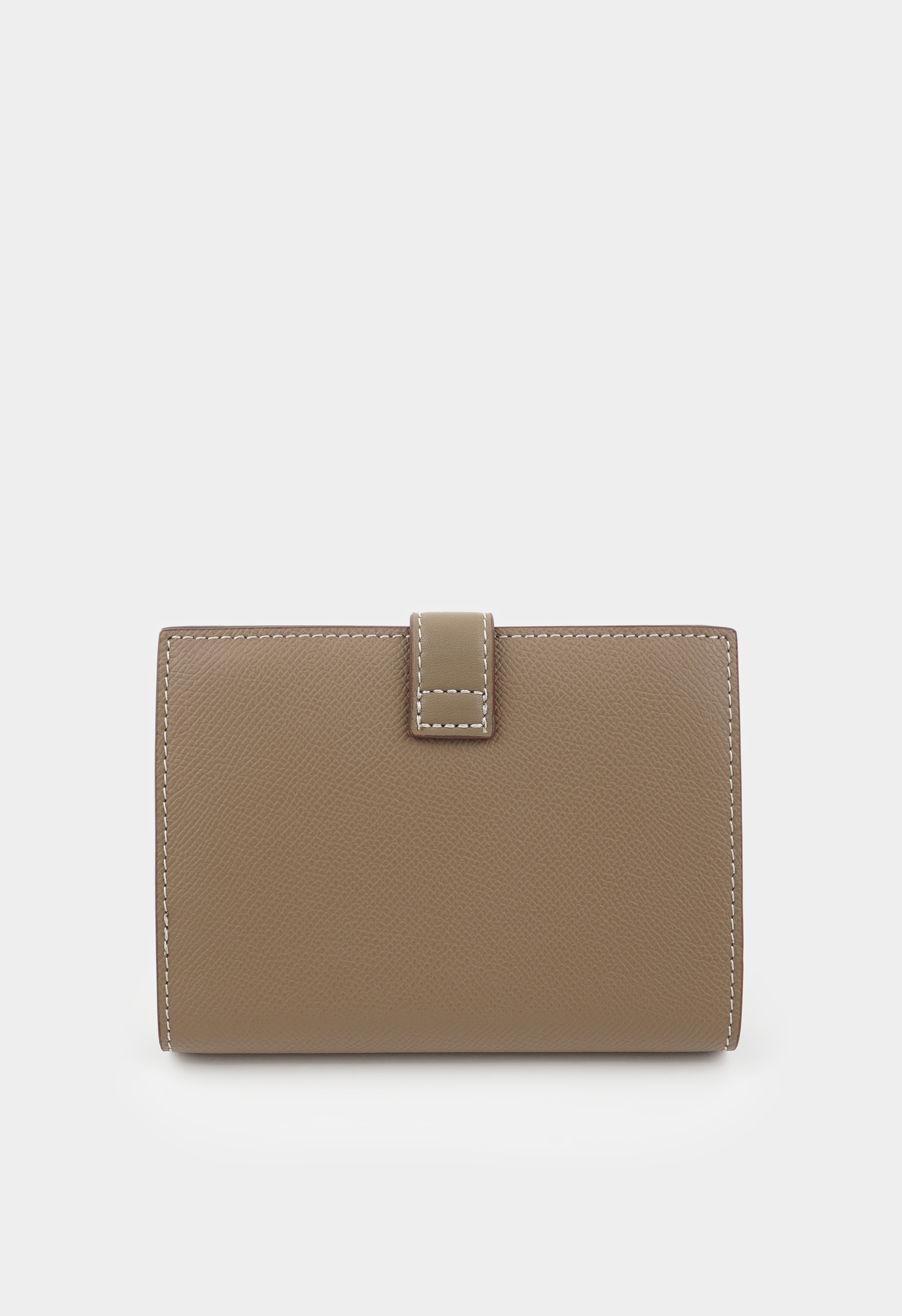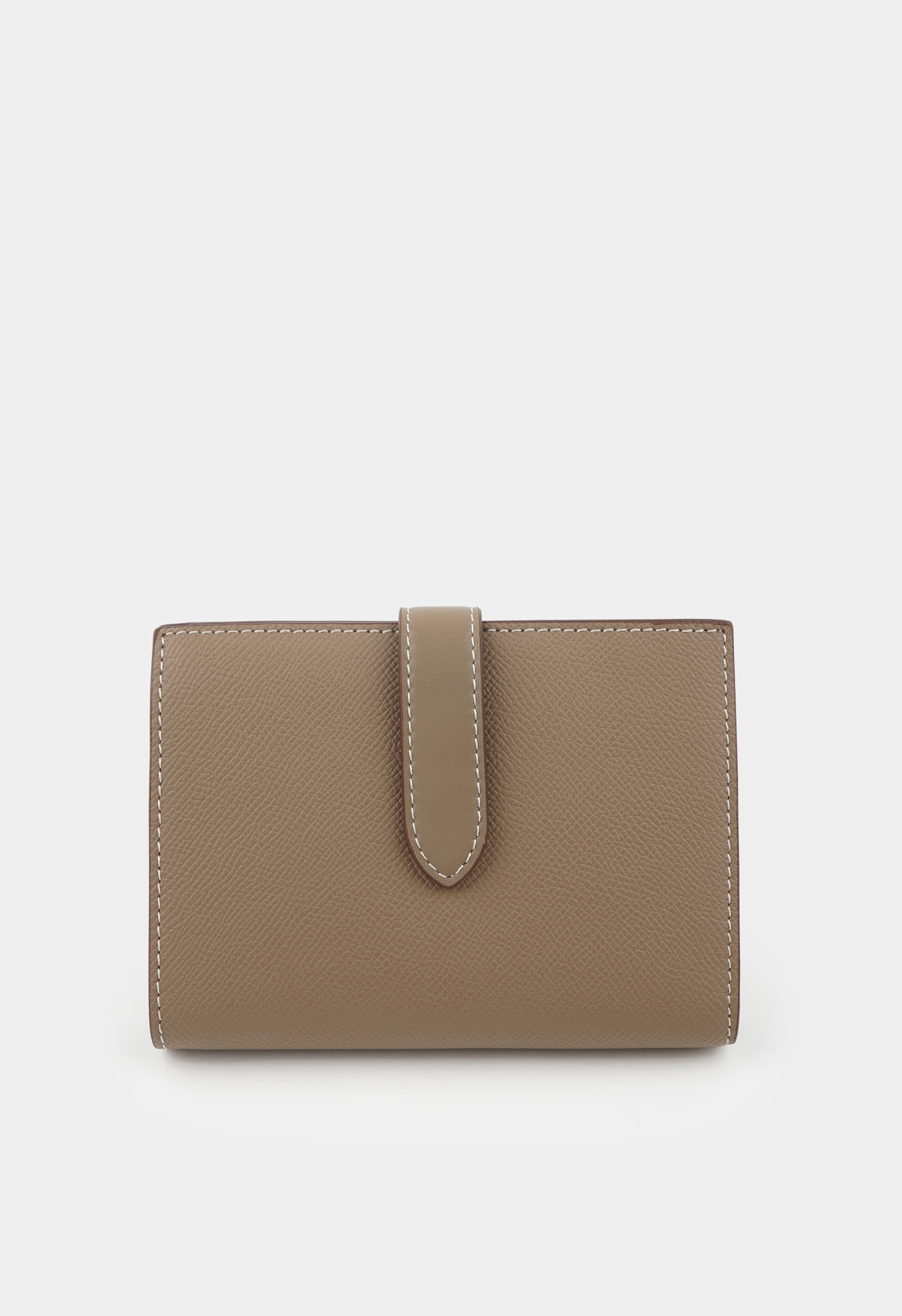 Этот кошелек в цвете хаки из натуральной кожи сочетает стиль и функциональность. Застежка на кнопку надежно защищает содержимое, а серебряная фурнитура добавляет элегантный блеск. Внутри предусмотрены четыре кармана и семь отделений для визиток, чтобы все было аккуратно разложено и всегда под рукой. Компактный и практичный кошелек станет акцентом вашего образа и удобным аксессуаром на каждый день.