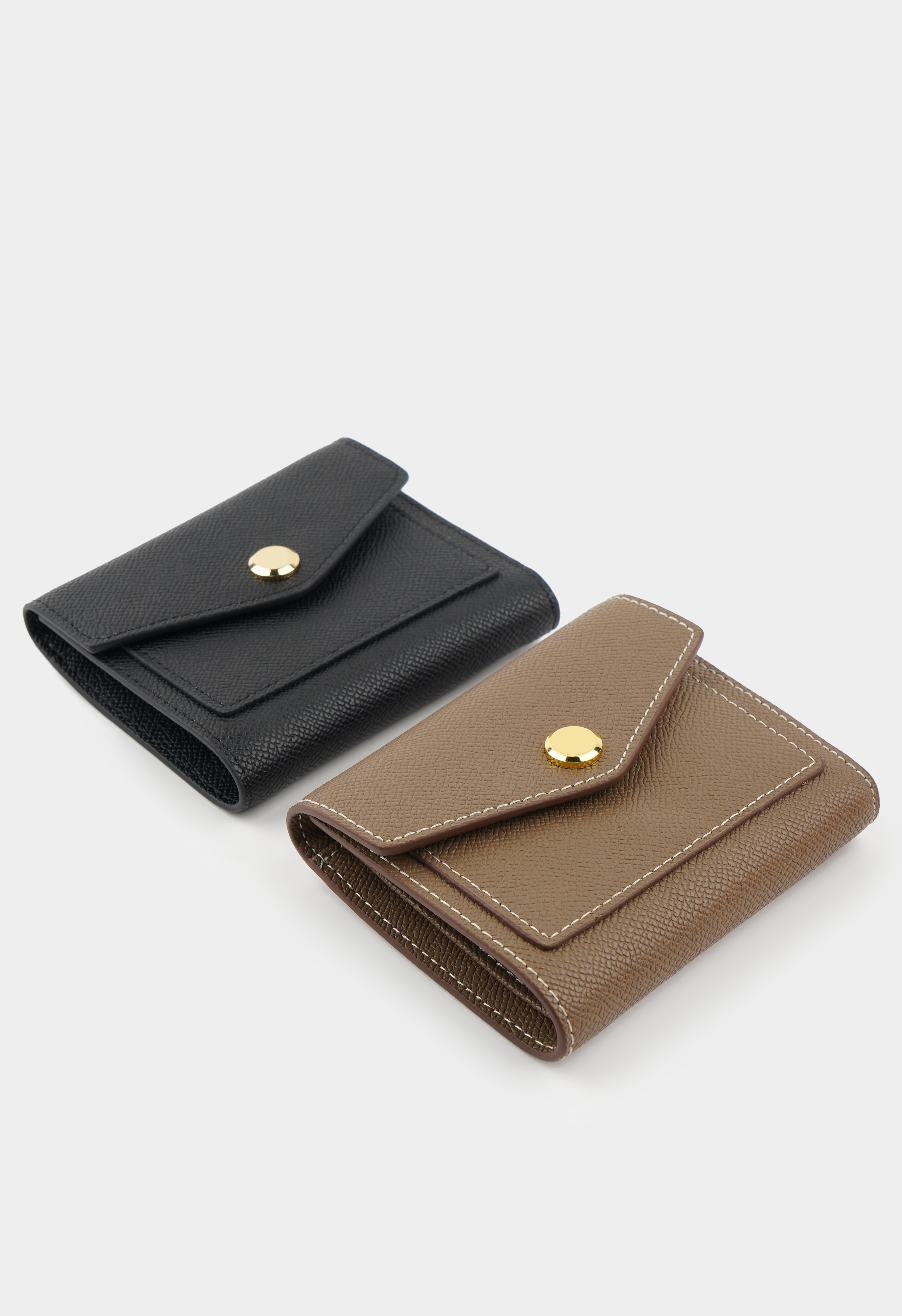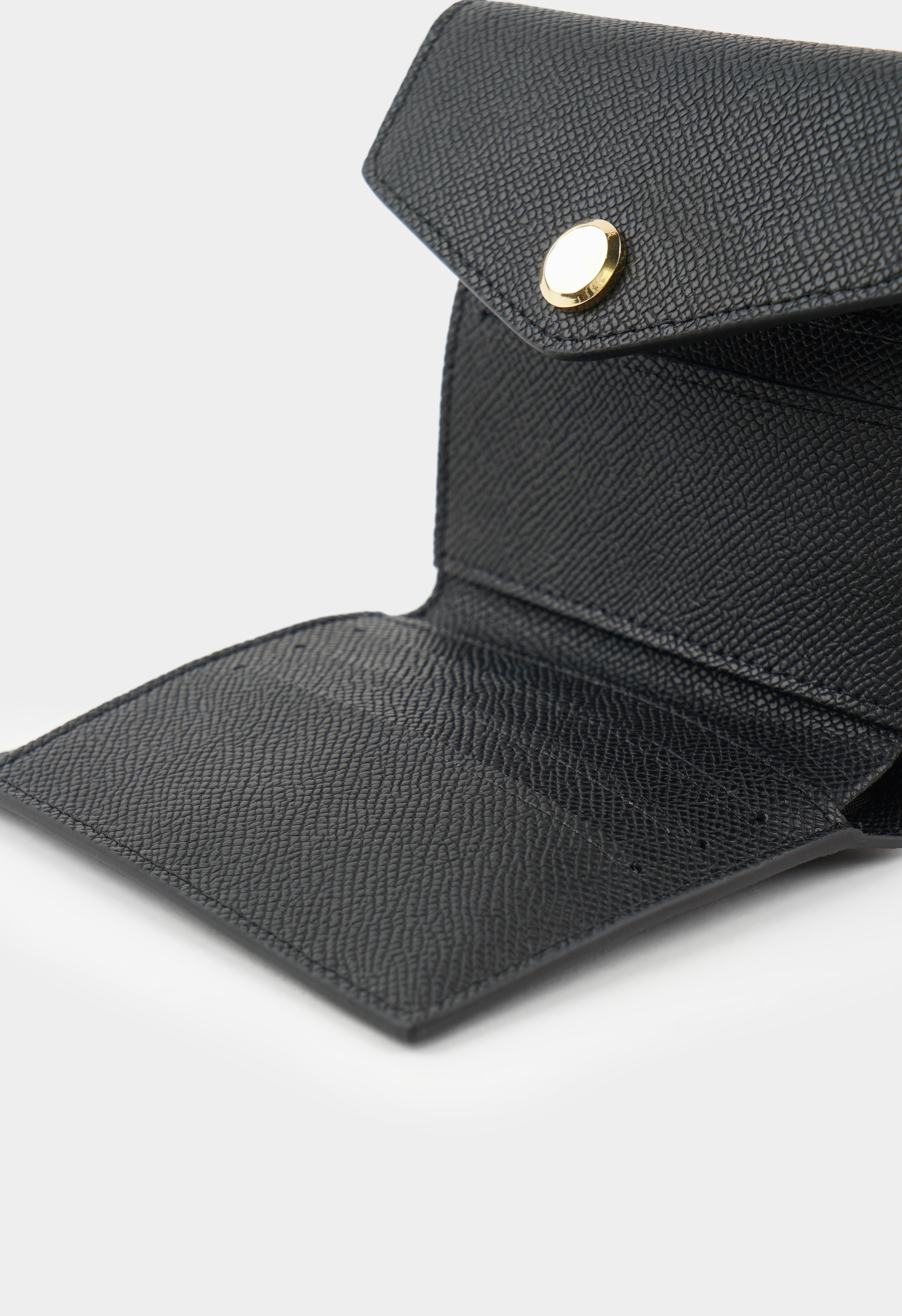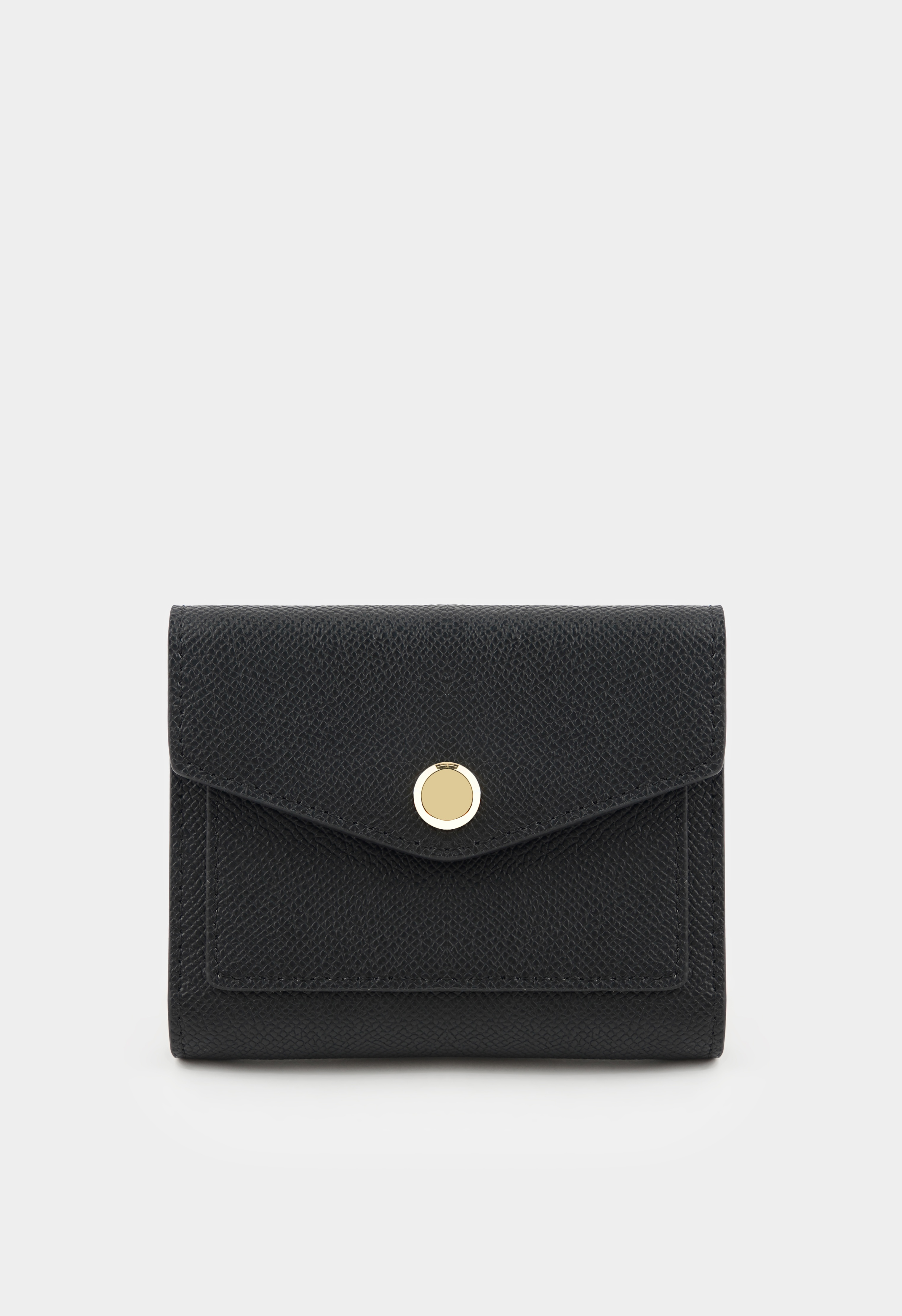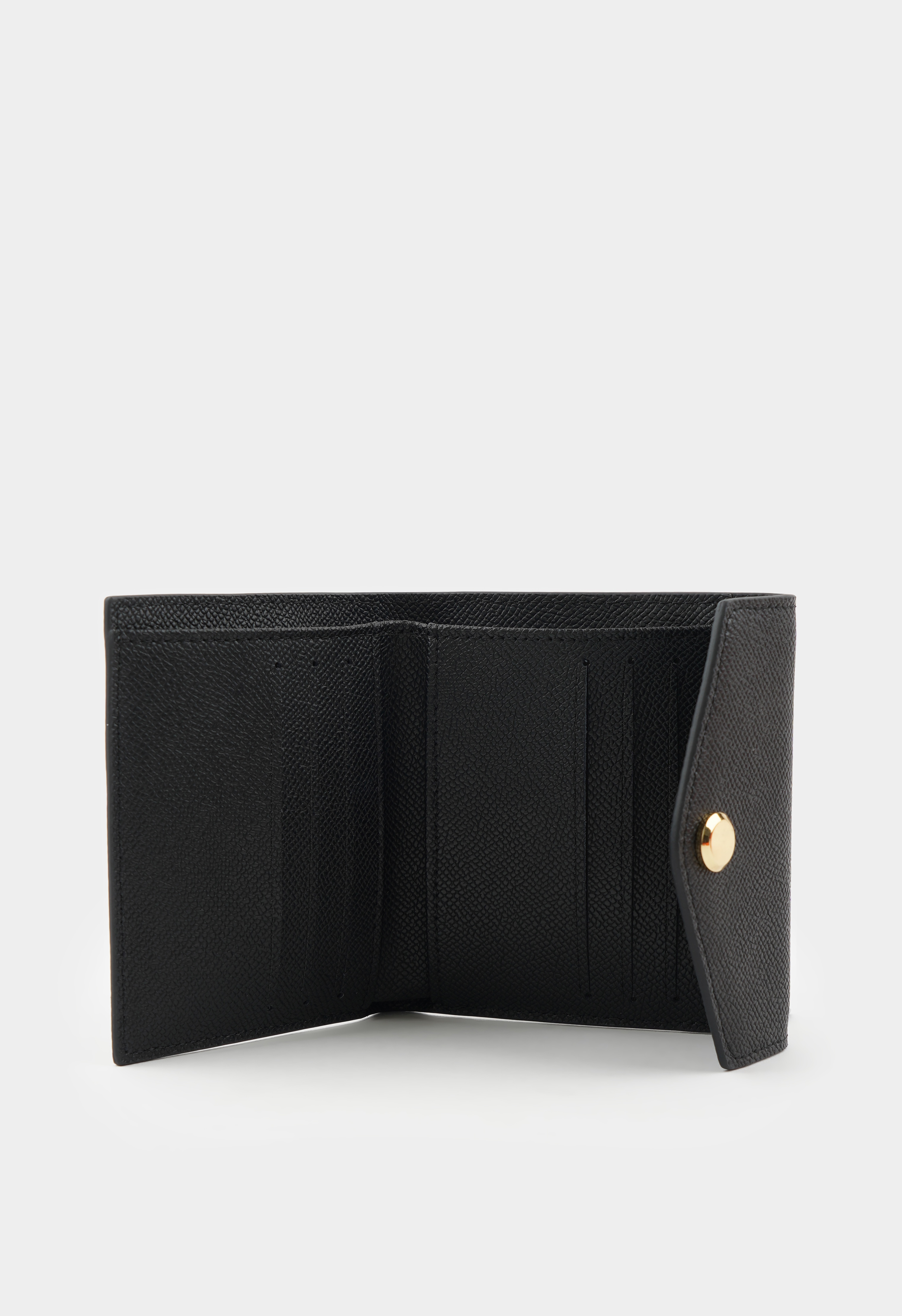 Стильный черный кошелек из натуральной кожи станет надежным спутником в повседневной жизни. Застежка на кнопку гарантирует безопасность содержимого, а золотая фурнитура добавляет стильный акцент. Один внешний карман для быстрого доступа к мелочам, три внутренних отделения и семь карманов для визиток позволяют держать все под рукой и в порядке. Компактный, практичный и элегантный кошелек идеально дополнит любой образ, сочетая удобство и стиль.
