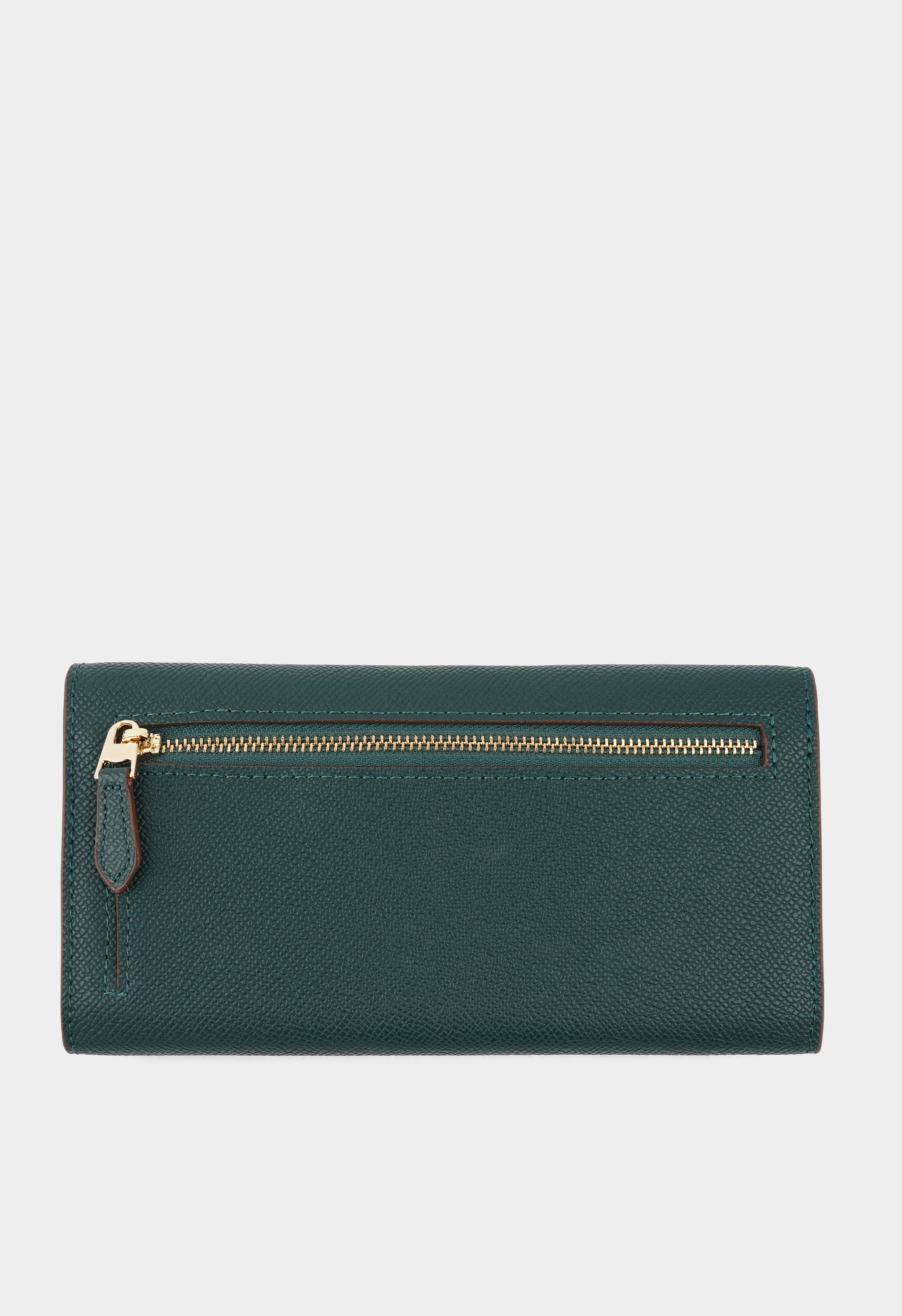 Элегантный зеленый кошелек сочетает стиль и функциональность. Застежка на кнопку надежно защищает содержимое, в то время как золотая фурнитура добавляет утонченный блеск. Два внешних кармана обеспечивают быстрый доступ к нужным мелочам, а внутри предусмотрено три вместительных отделения и шесть отделов для карт, чтобы всё было аккуратно разложено и всегда под рукой. Компактный и практичный аксуссуар станет идеальным для повседневного использования.