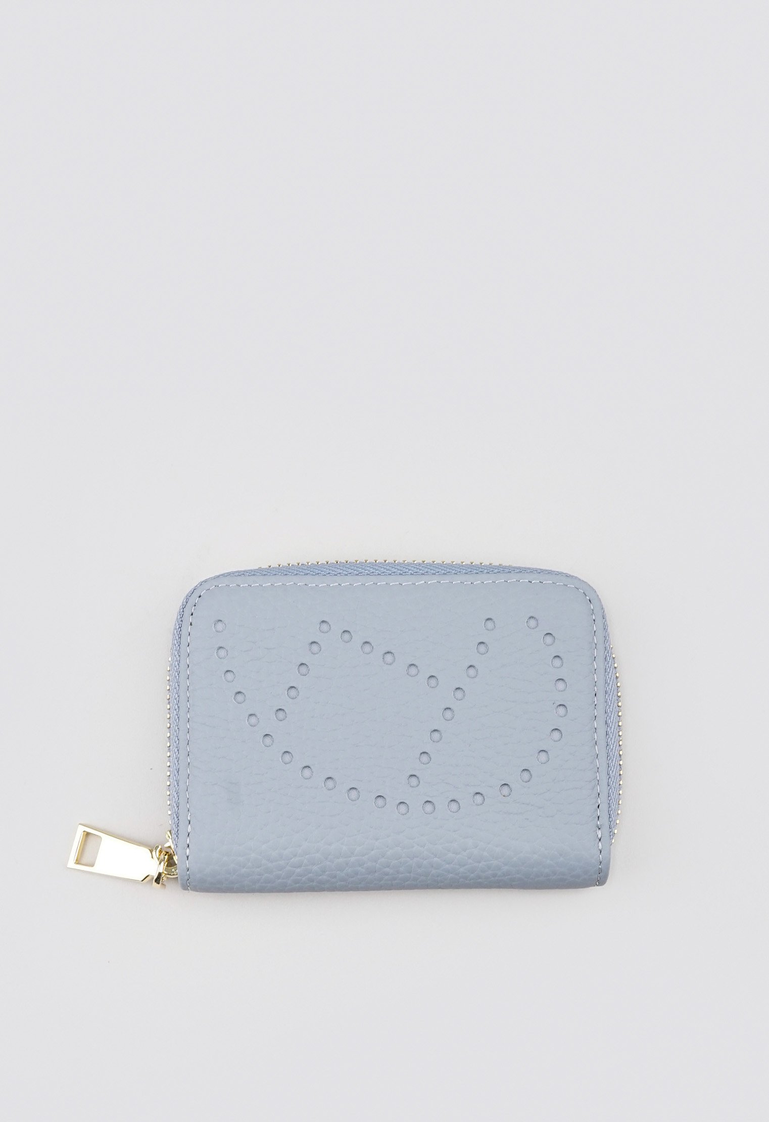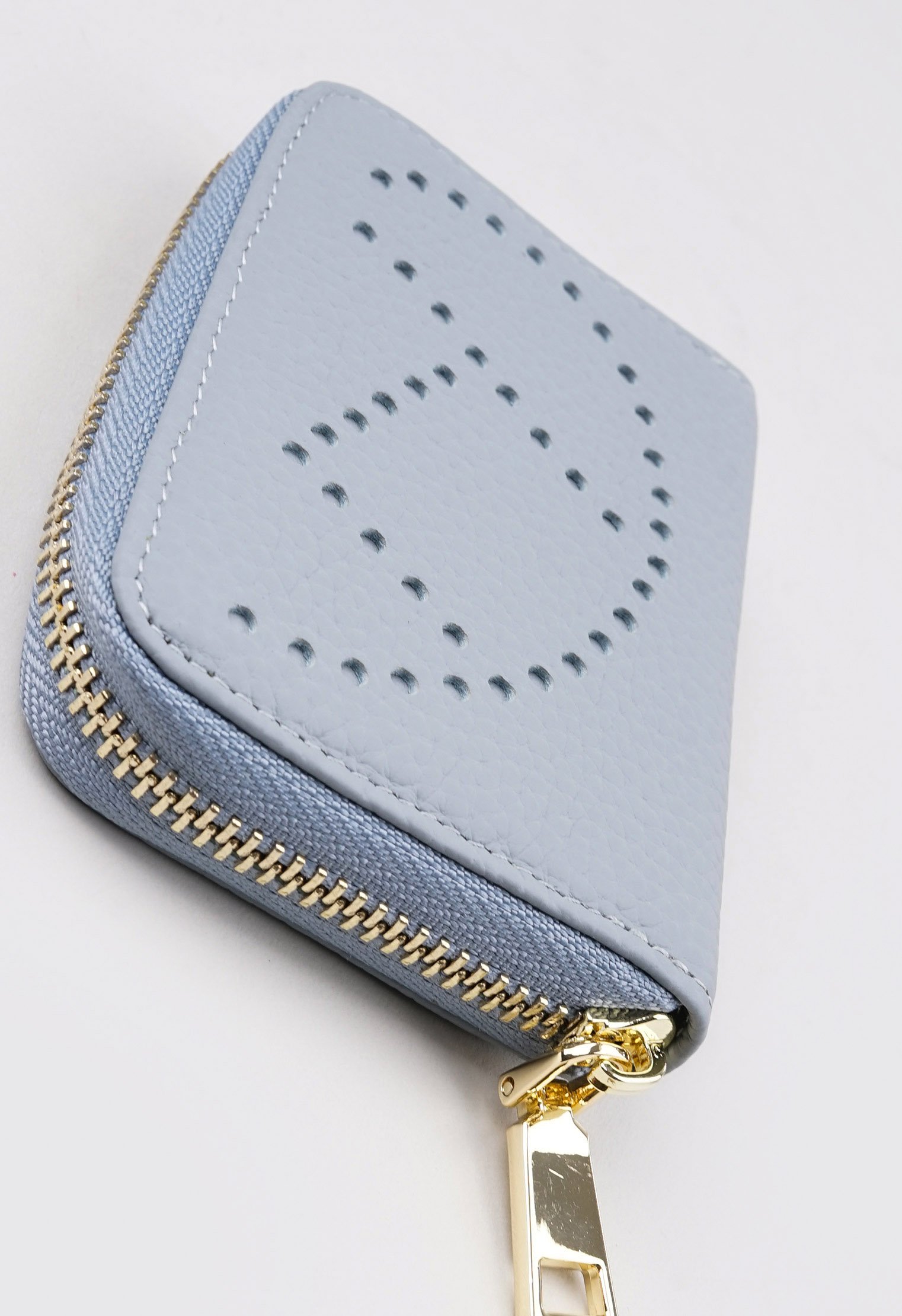 Кошелёк из новой коллекции изготовлен из натуральной кожи и представлен в синем цвете. Изделие декорировано перфорированным узором и застёгивается на молнию. Основное отделение оснащено текстильной подкладкой, несколько удобных карманов позволяют разместить как купюры, так и карты. Компактная модель станет удачным дополнением к повседневному гардеробу.