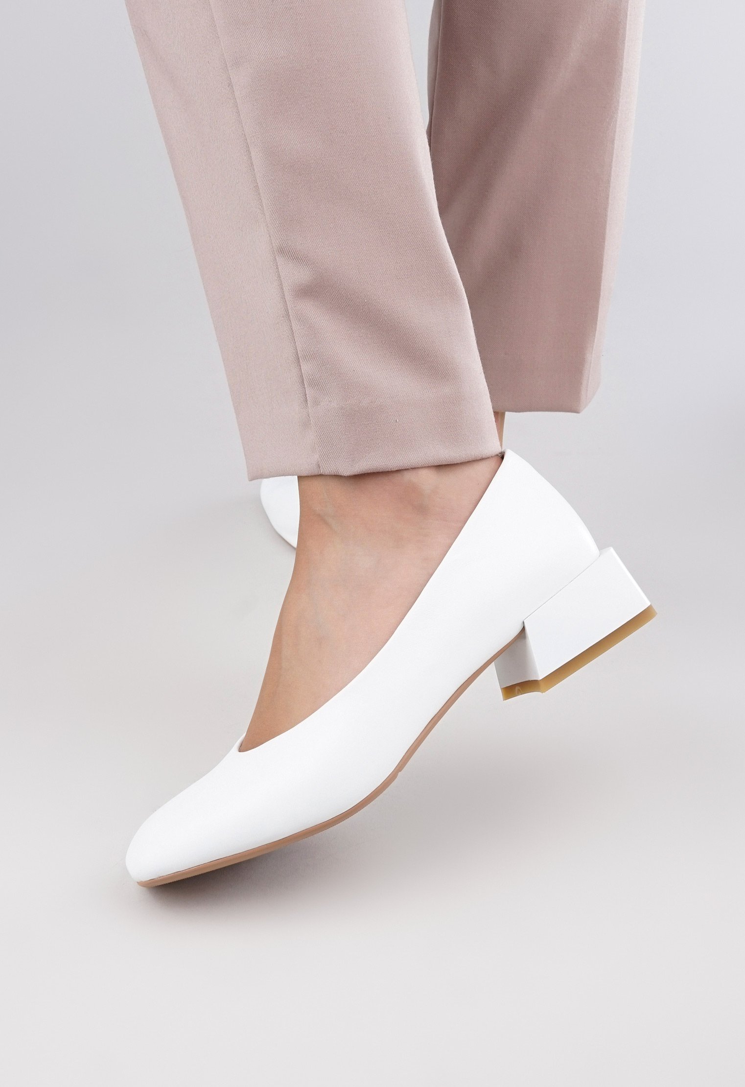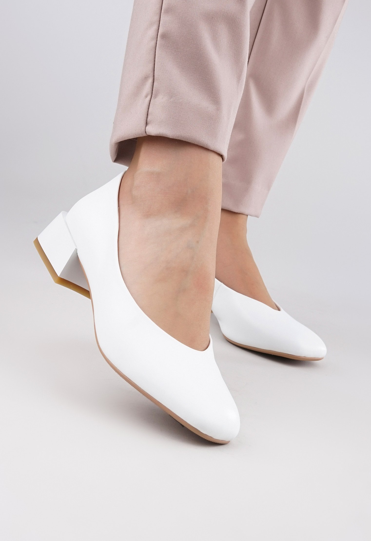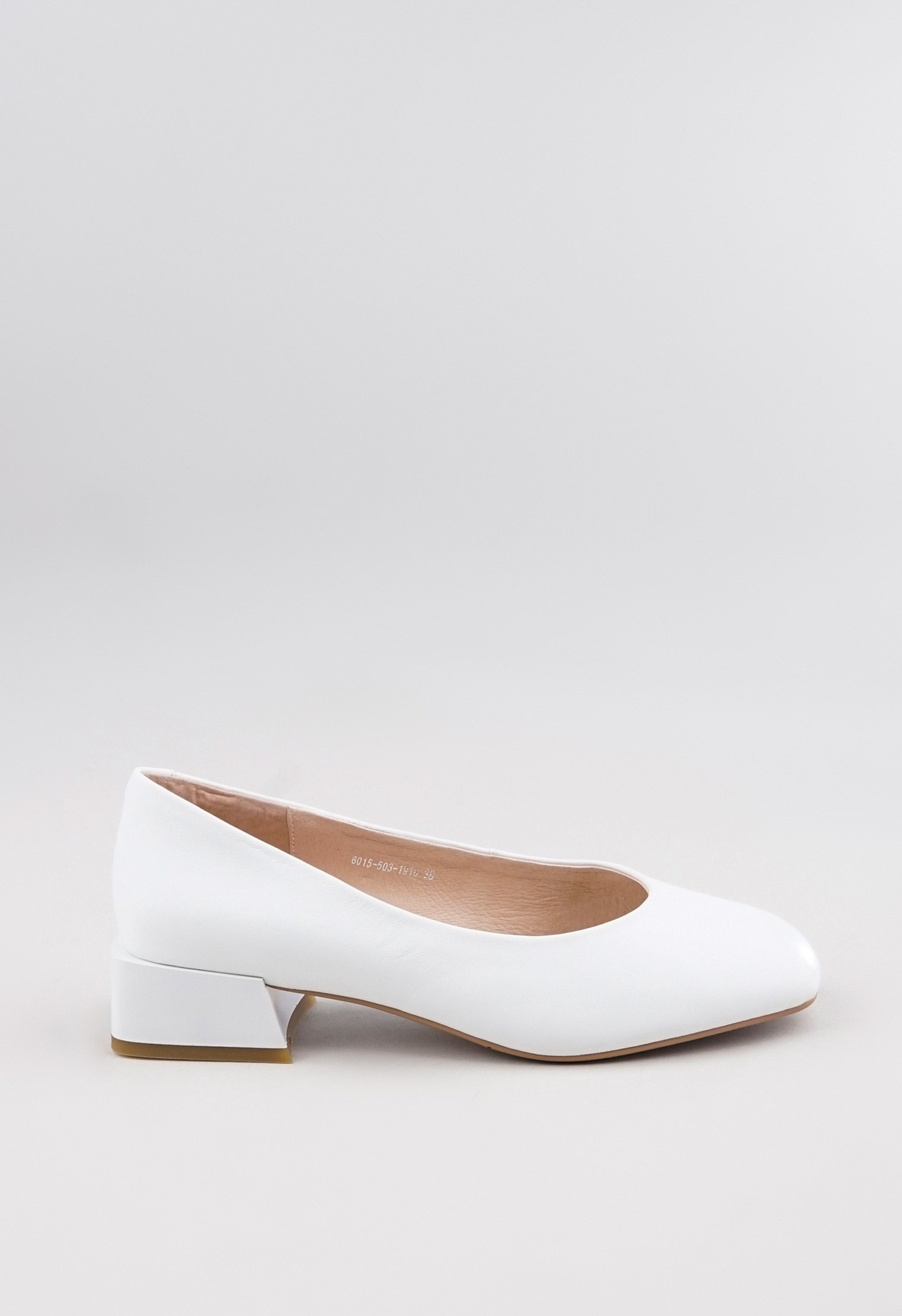 Обратите внимание: данная модель идёт в размер и отлично подходит для ног со средней и широкой полнотой стопы. Советуем проконсультироваться с менеджером по выбору наиболее подходящего Вам размера. Однотонные туфли из новой коллекции выполнены из натуральной гладкой кожи и представлены в белом цвете. Изделие дополнено широким каблуком и подкладкой из натуральной кожи, что обеспечивает комфорт и предохраняет от усталости в конце дня. Классическая модель идеально сочетается с одеждой из базового гардероба и украсит Ваш женственный наряд.