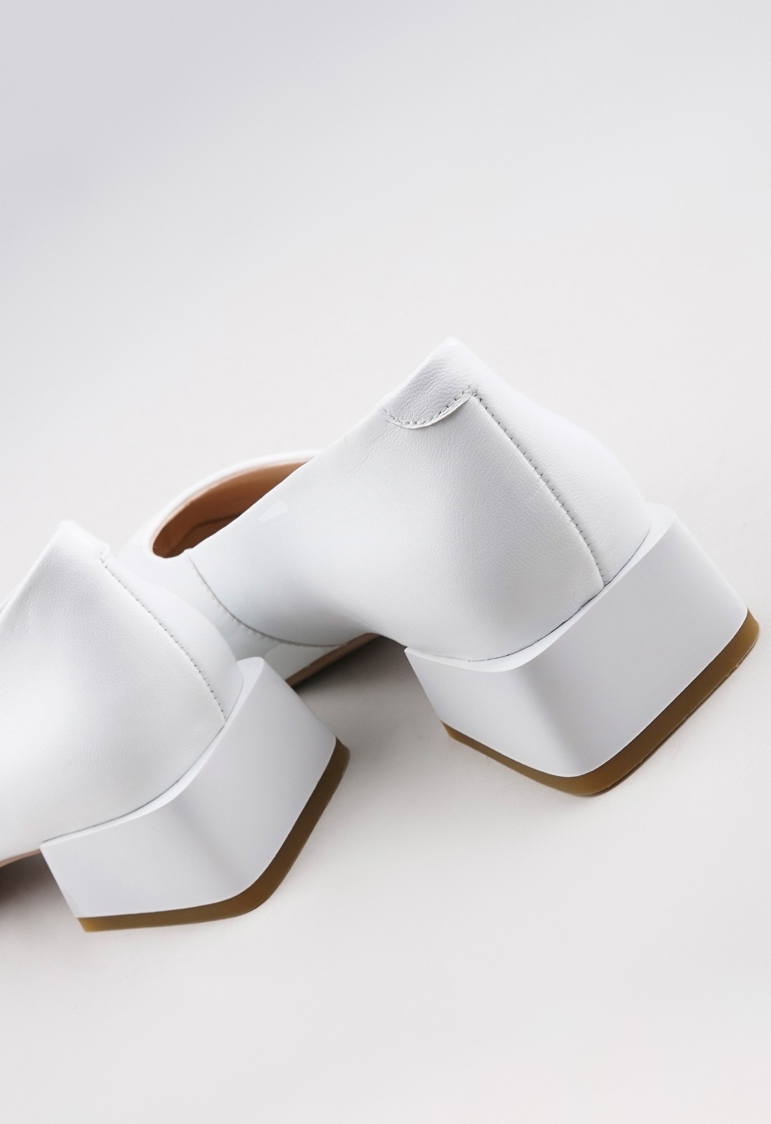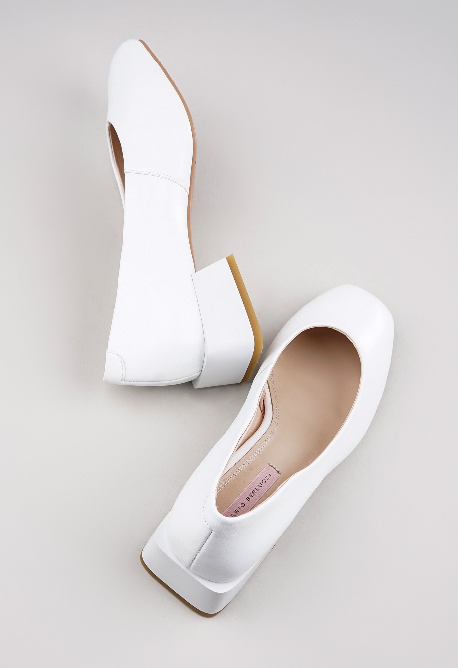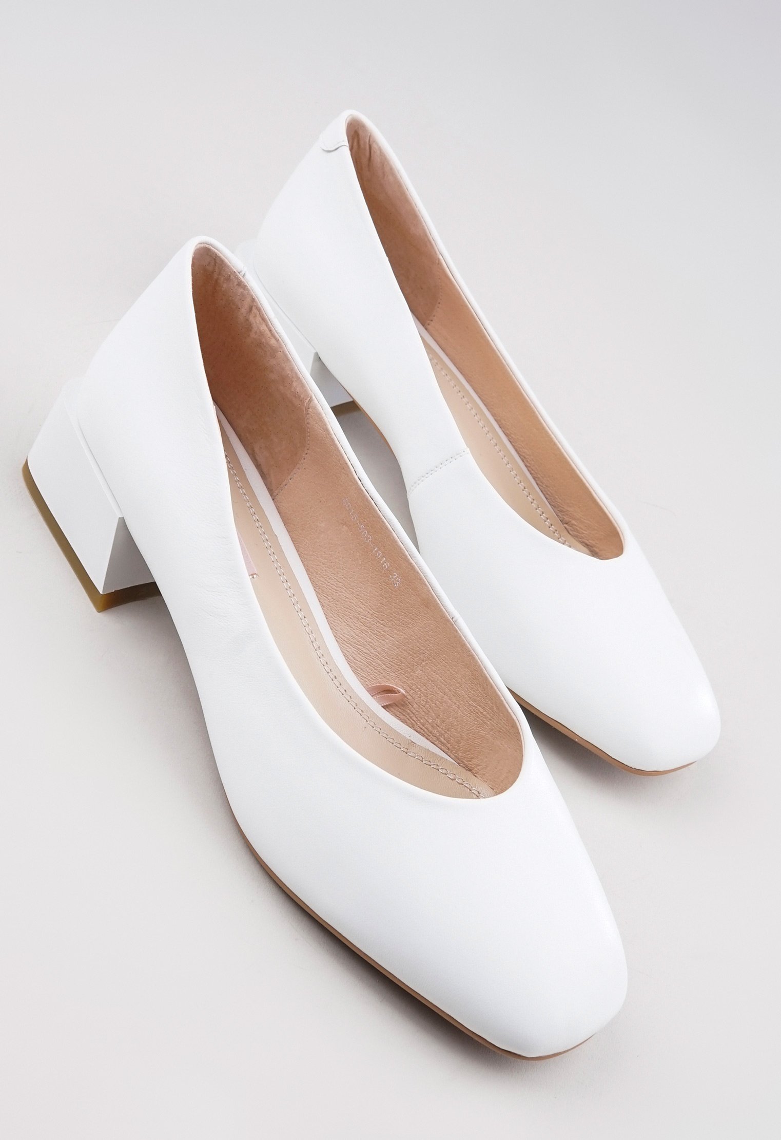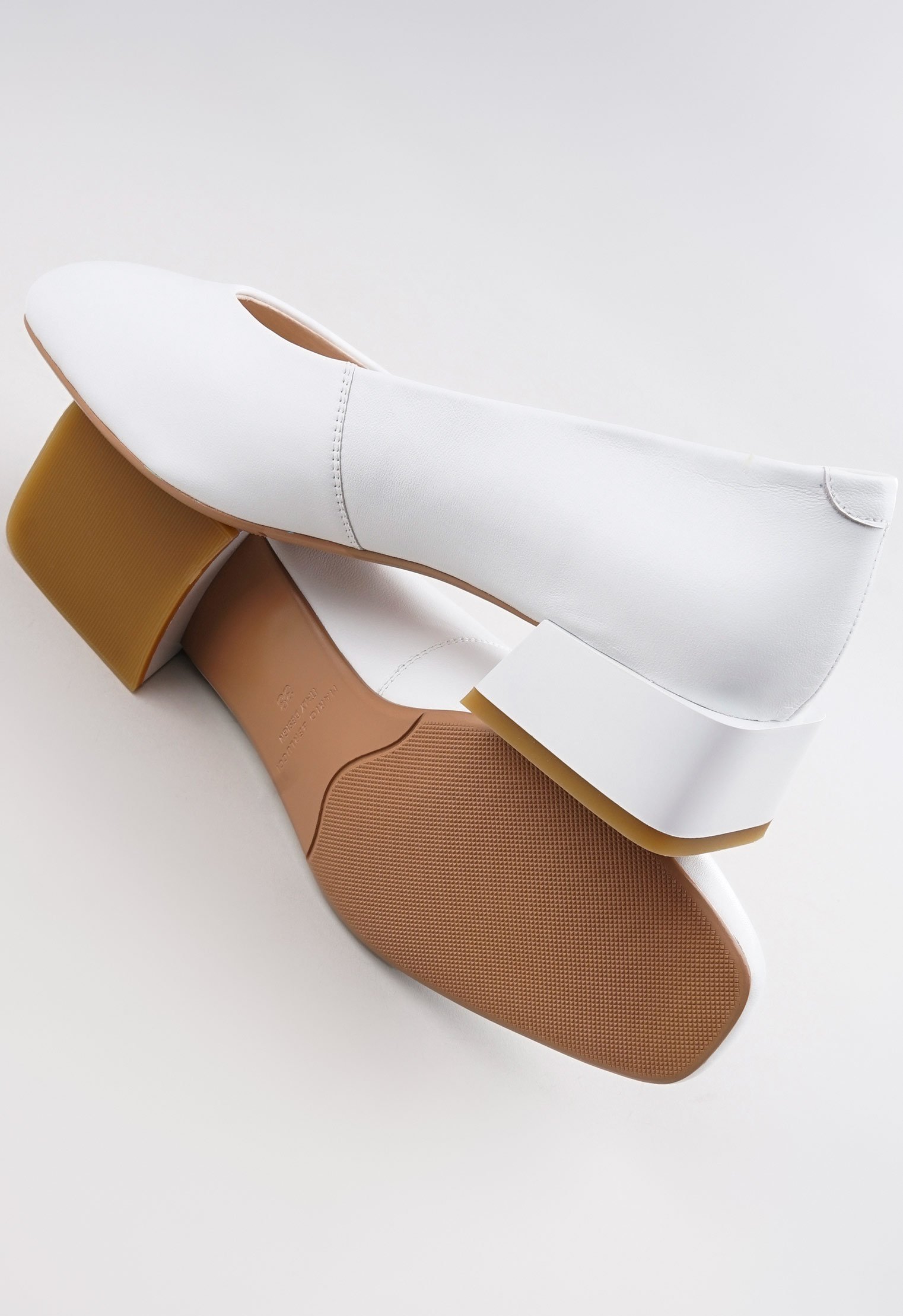 Обратите внимание: данная модель идёт в размер и отлично подходит для ног со средней и широкой полнотой стопы. Советуем проконсультироваться с менеджером по выбору наиболее подходящего Вам размера. Однотонные туфли из новой коллекции выполнены из натуральной гладкой кожи и представлены в белом цвете. Изделие дополнено широким каблуком и подкладкой из натуральной кожи, что обеспечивает комфорт и предохраняет от усталости в конце дня. Классическая модель идеально сочетается с одеждой из базового гардероба и украсит Ваш женственный наряд.