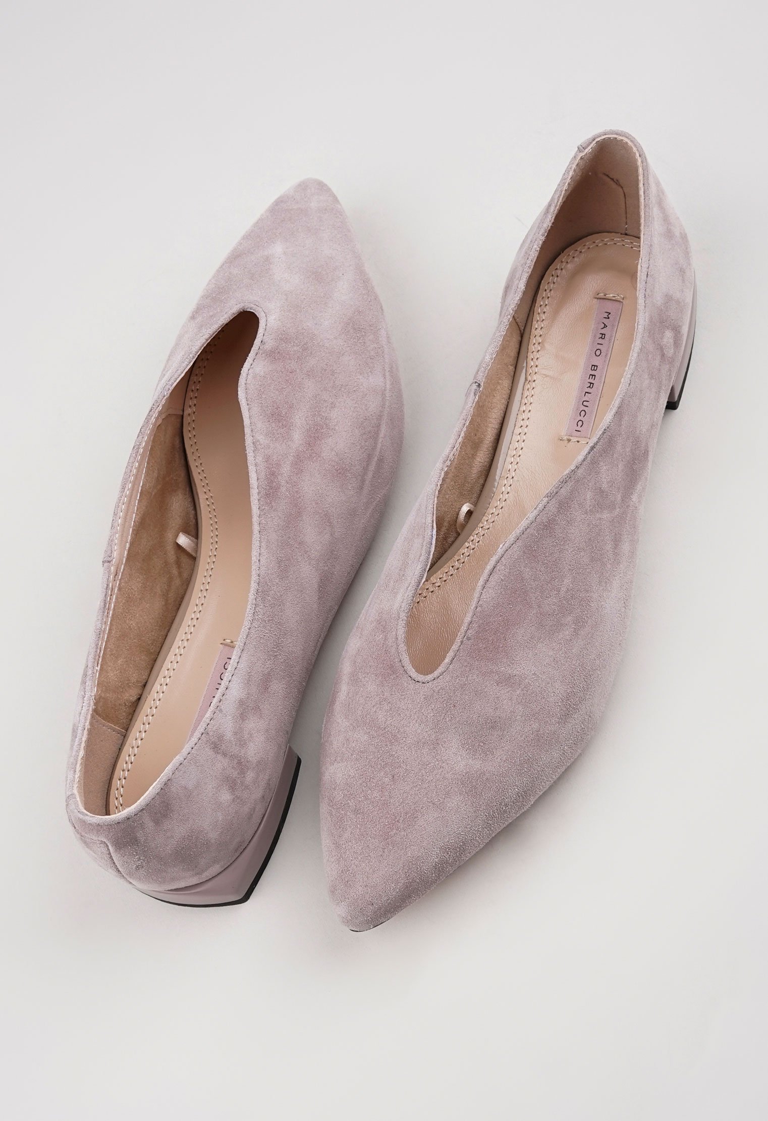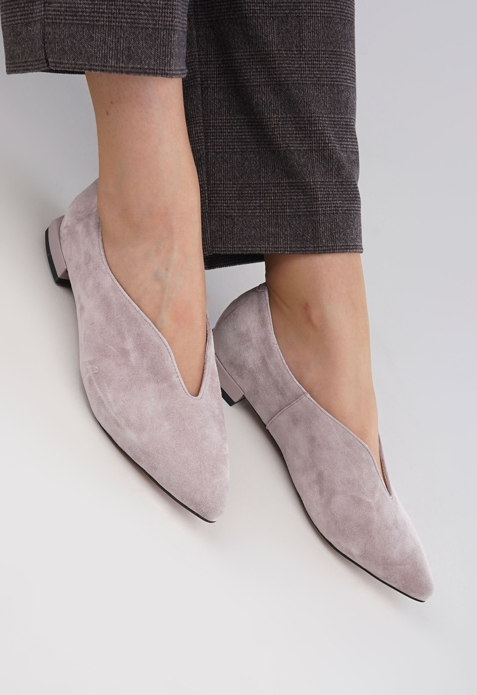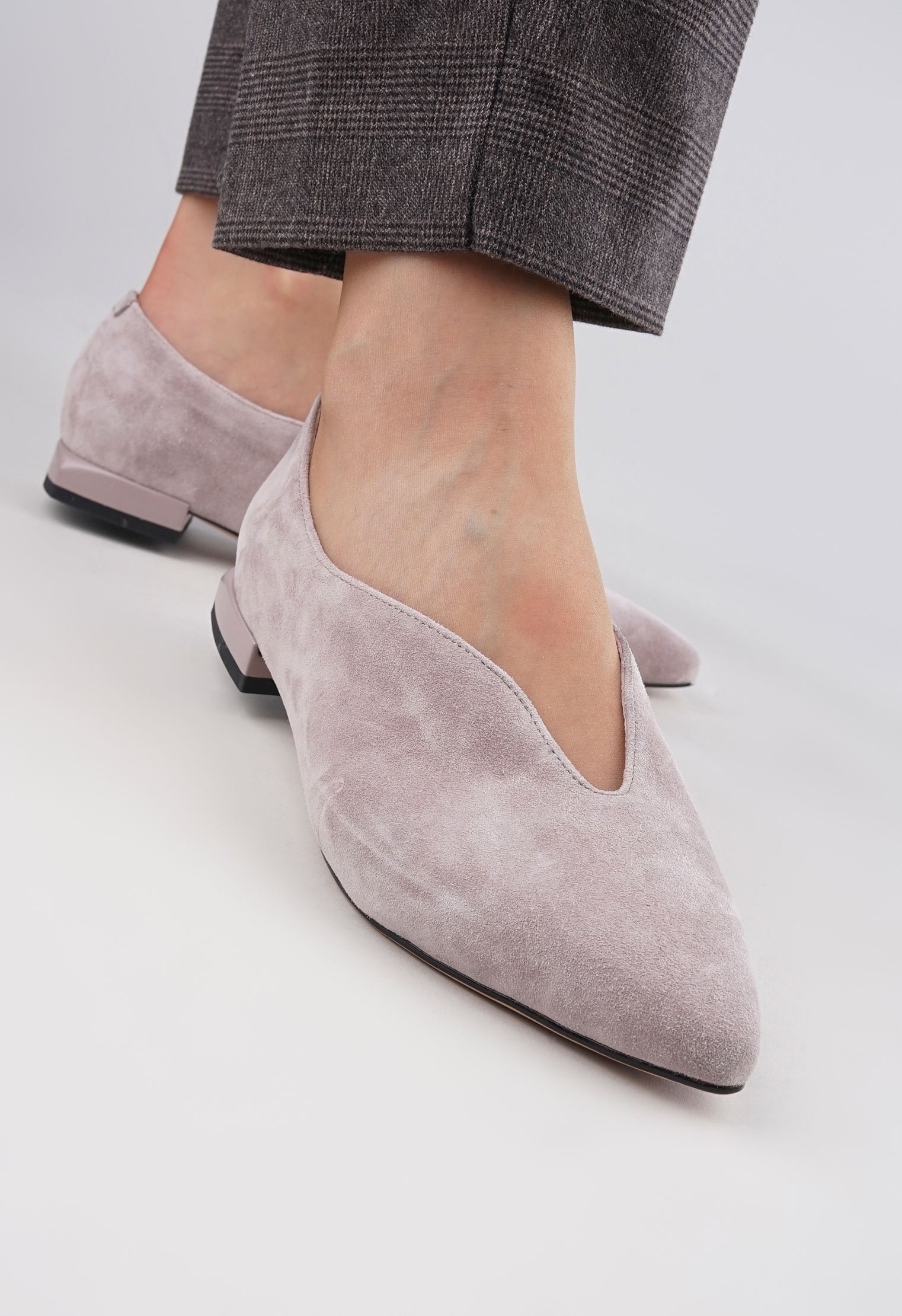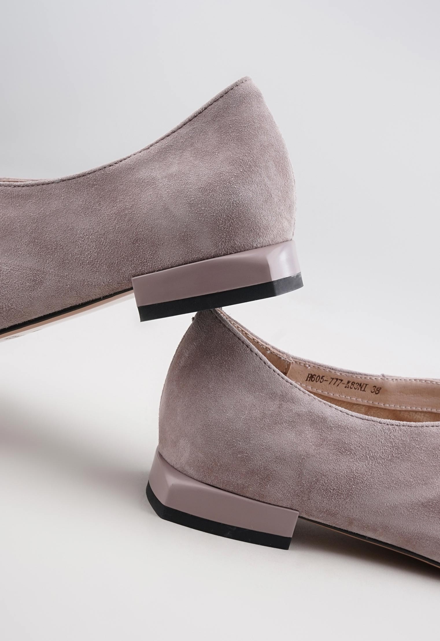 Обратите внимание: данная модель идёт в размер и отлично подходит для ног с широкой полнотой стопы. Советуем проконсультироваться с менеджером по выбору наиболее подходящего Вам размера. Стильные балетки из новой коллекции выполнены из натуральной мягкой замши и представлены в сером цвете. Изделие дополнено лаконичным каблуком и изящным вырезом. Мягкая подкладка и анатомическая кожаная стелька обеспечивают комфорт в течение дня. Элегантная модель удачно сочетается как с брюками, так и с платьями в современном стиле.