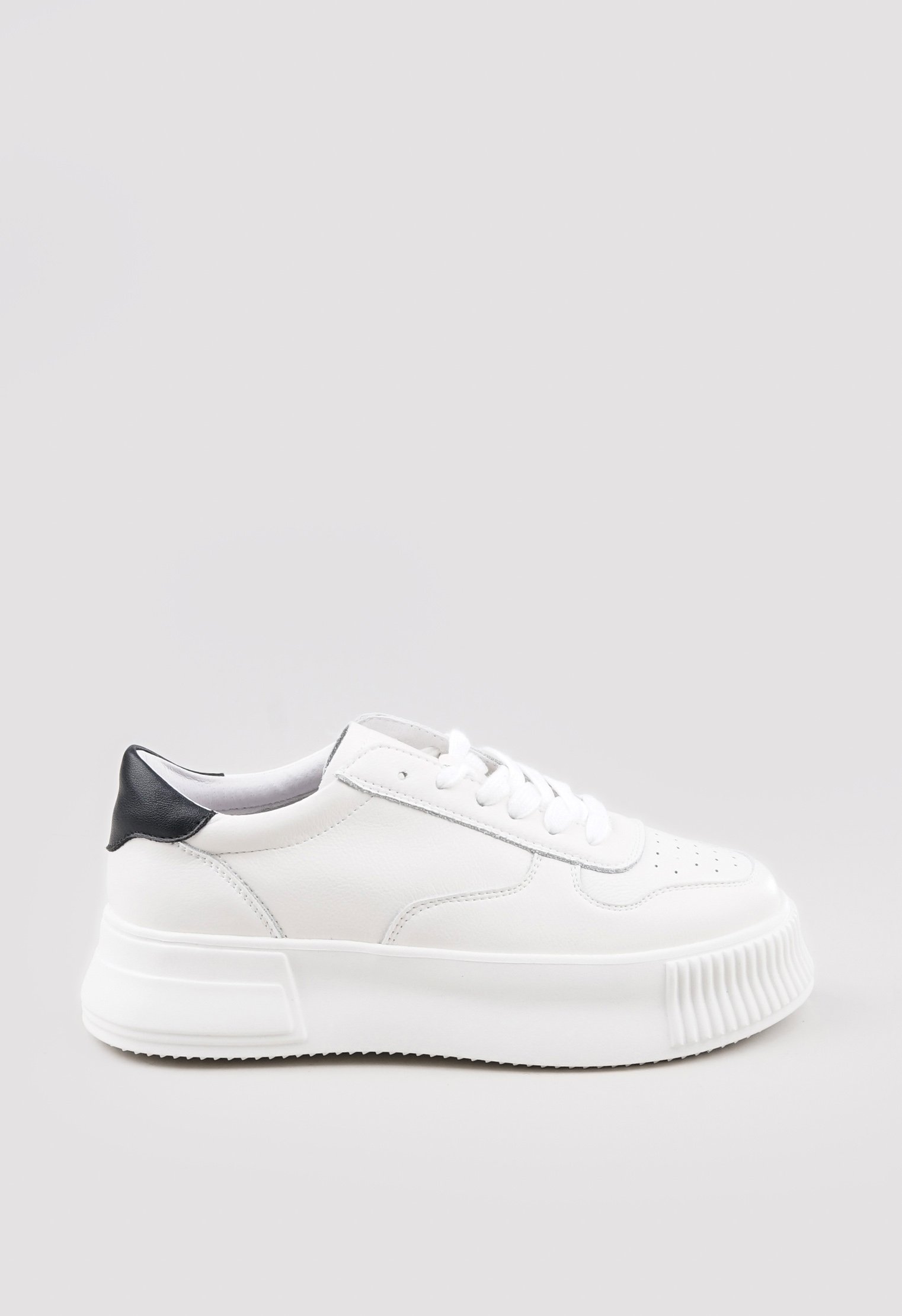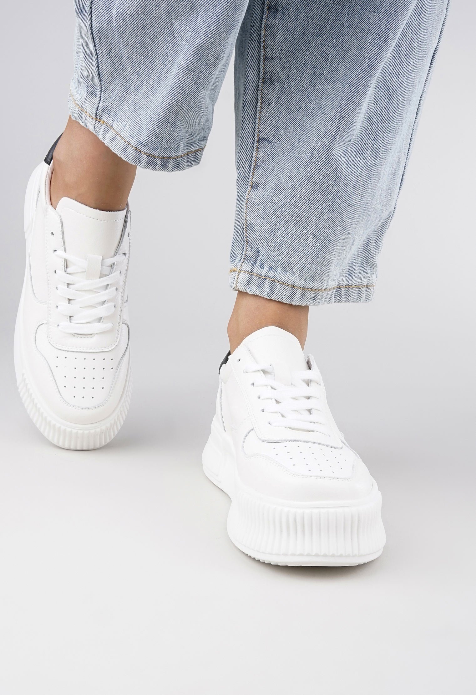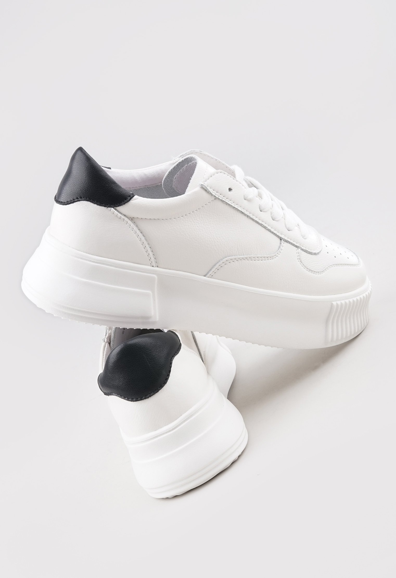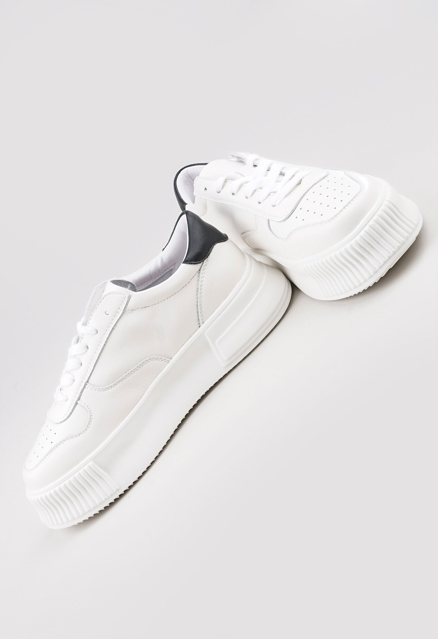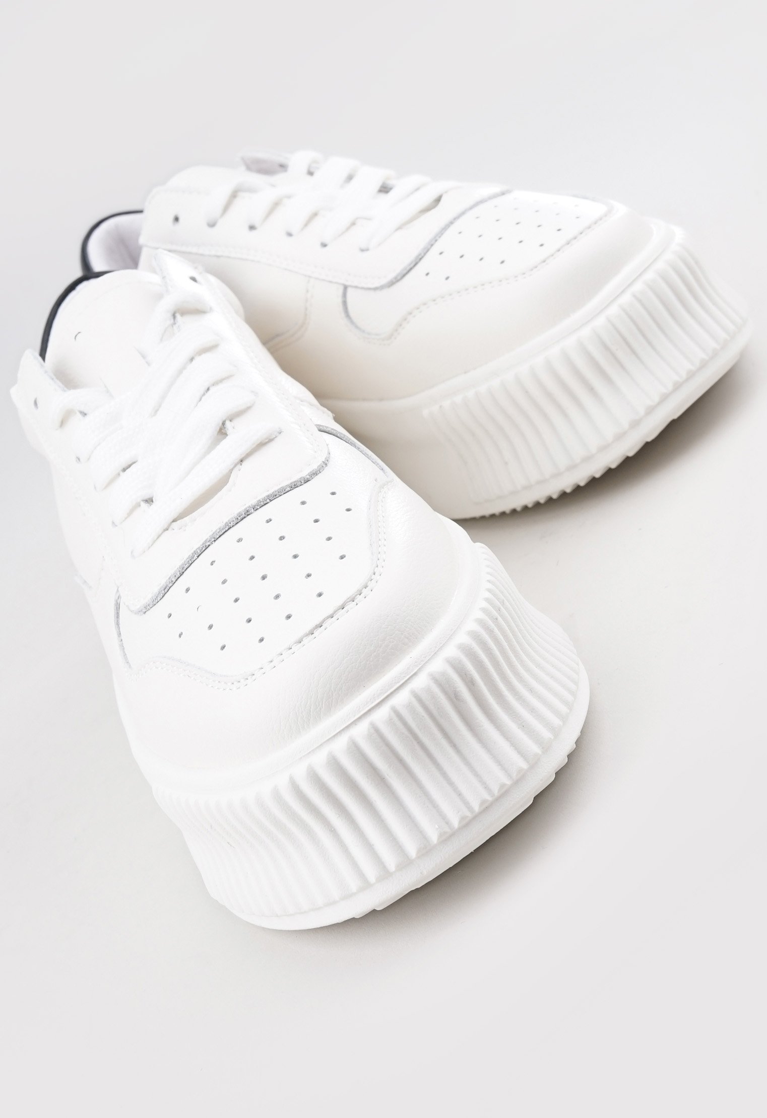 Обратите внимание: данная модель идёт в размер и отлично подходит для ног со средней и широкой полнотой стопы. Советуем проконсультироваться с менеджером по выбору наиболее подходящего Вам размера. Кроссовки на платформе выполнены из натуральной мягкой кожи и представлены в новой коллекции в белом цвете. Изделие декорировано контрастными вставками и перфорацией. Шнуровка обеспечивает особенно комфортную посадку, съёмная анатомическая стелька предохраняет от усталости в конце дня. Трендовая модель станет украшением повседневного гардероба.