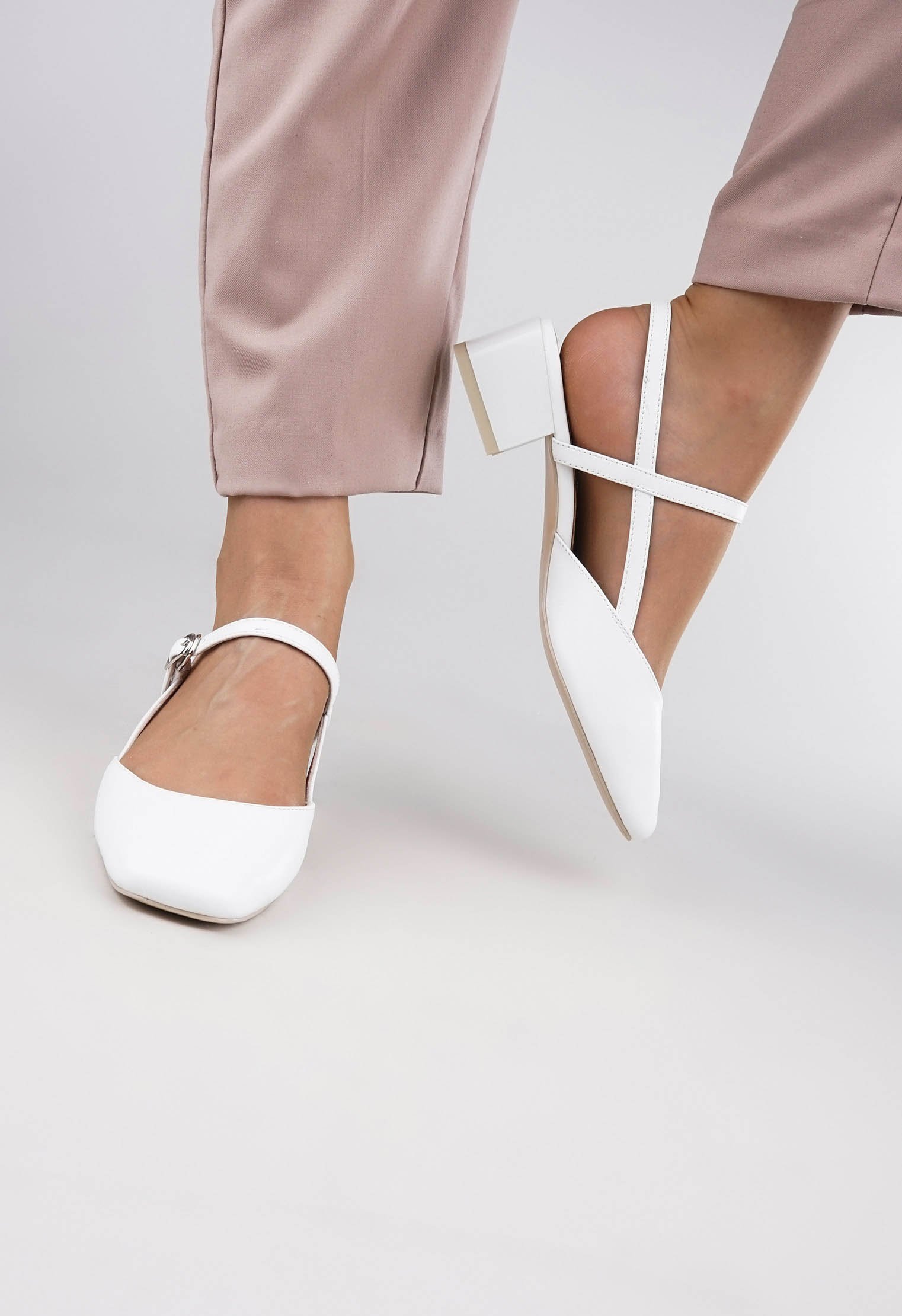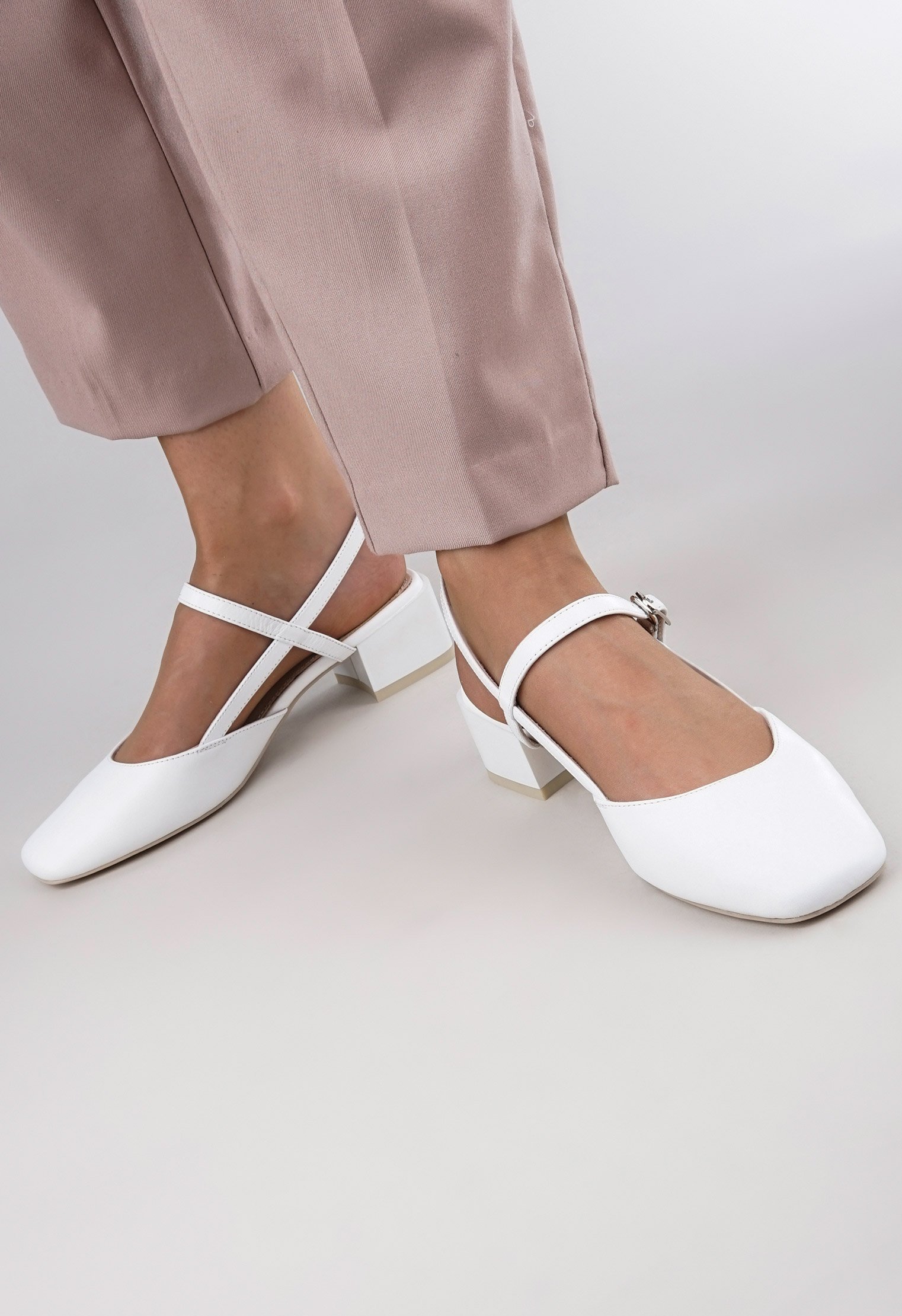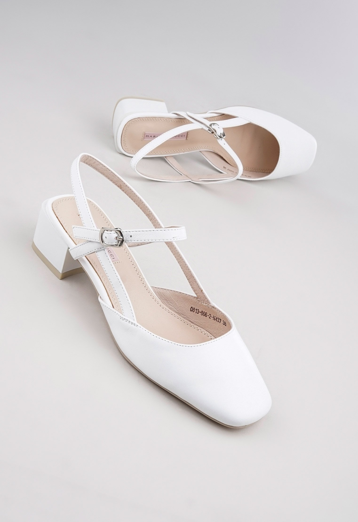 Обратите внимание: данная модель идёт в размер и отлично подходит для ног со средней и широкой полнотой стопы. Советуем проконсультироваться с менеджером по выбору наиболее подходящего Вам размера. Однотонные туфли из новой коллекции выполнены из натуральной гладкой кожи белого цвета и дополнены лаконичным каблуком. Ремень с пряжкой позволяет регулировать полноту, мягкая кожаная подкладка обеспечивает особенно комфортную посадку. Стильная летняя модель станет украшением современного базового гардероба на каждый день.