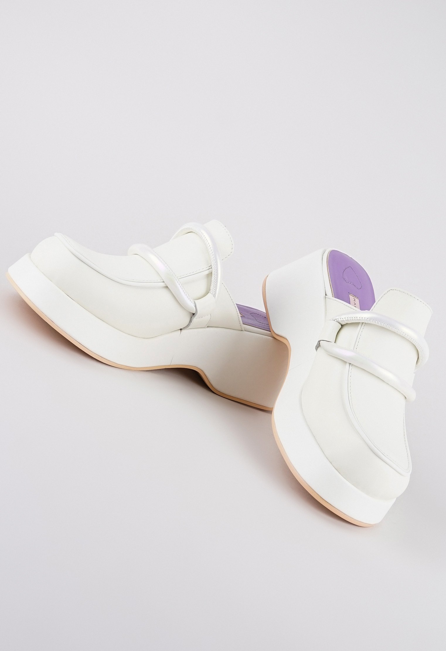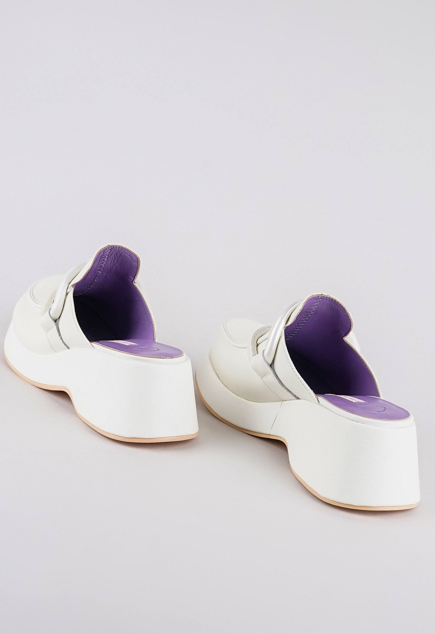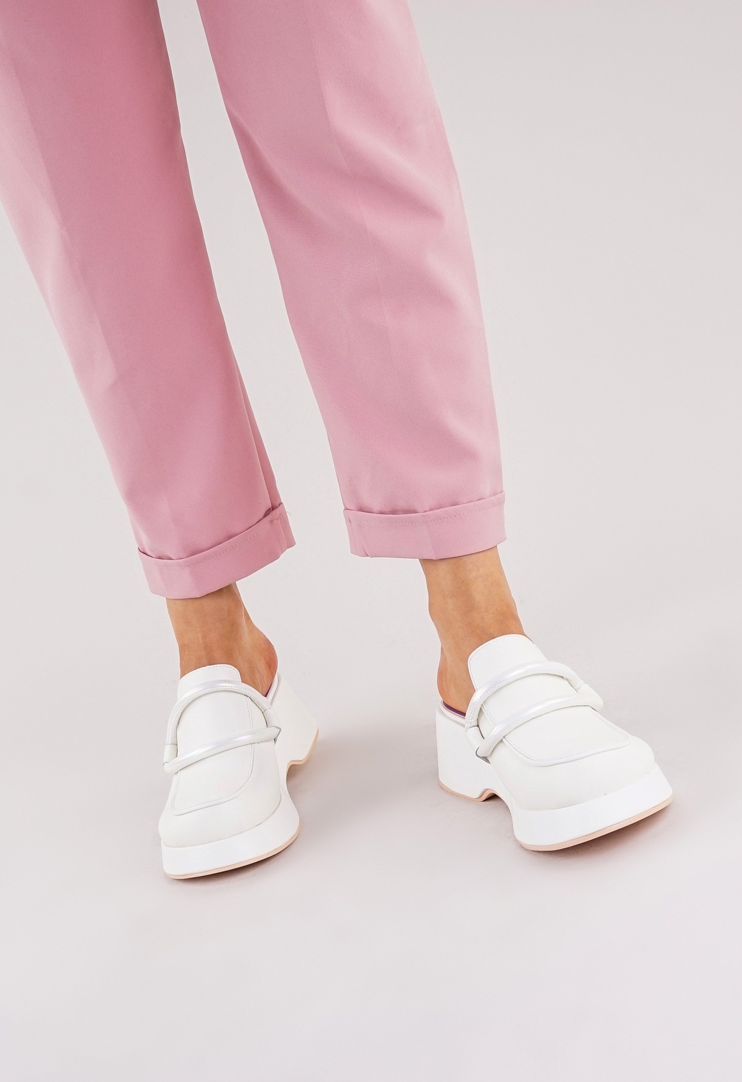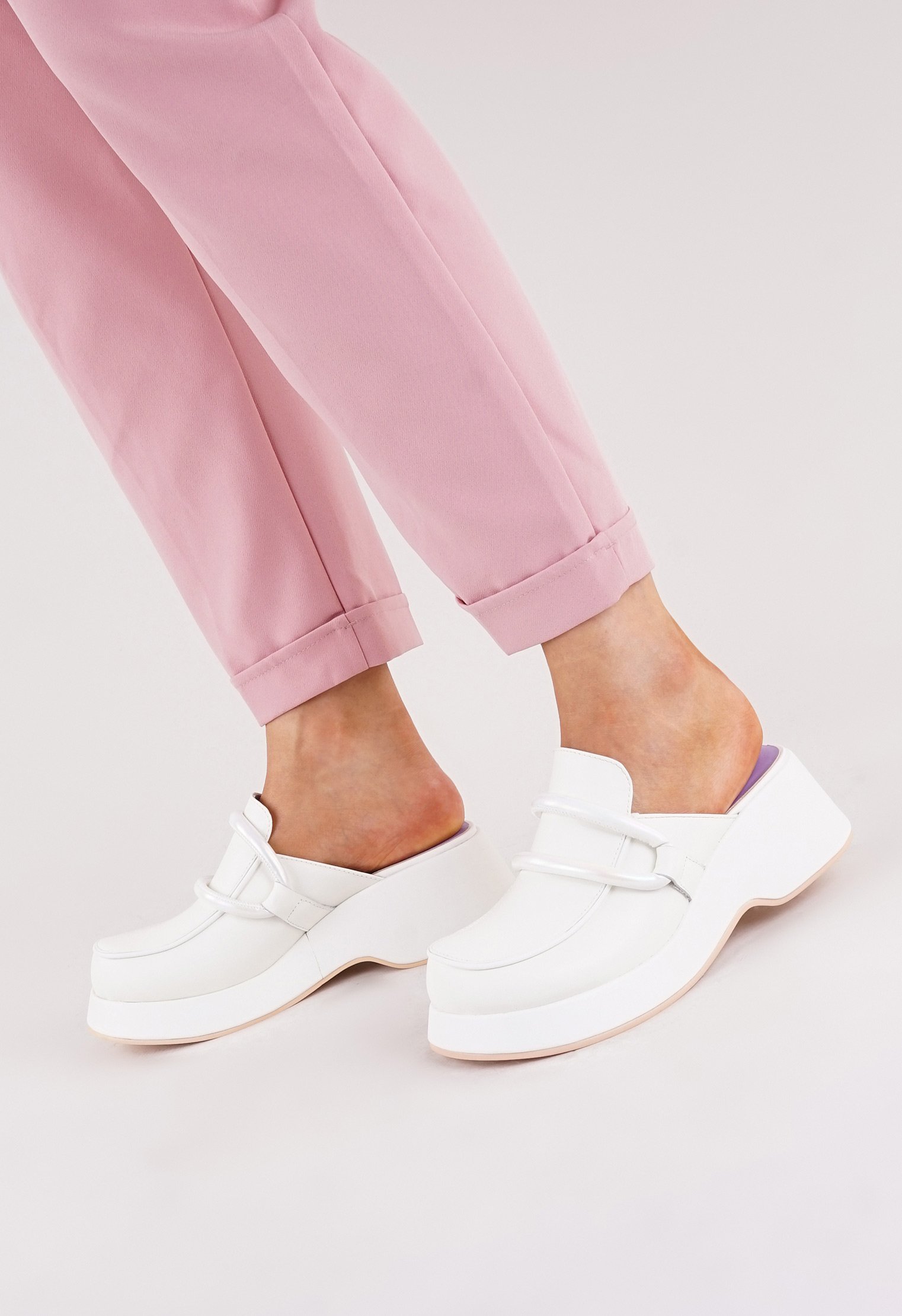 Обратите внимание: данная модель идёт в размер и отлично подходит для ног со средней полнотой и любым подъёмом стопы. Стильные сабо из новой коллекции выполнены из натуральной кожи и представлены в белом цвете. Мягкая кожаная стелька обеспечивает высокий уровень комфорта и предохраняет от усталости в конце дня. Платформа на широком каблуке позволяет равномерно распределить нагрузку на стопу. Актуальная модель удачно сочетается с элементами базового гардероба.
