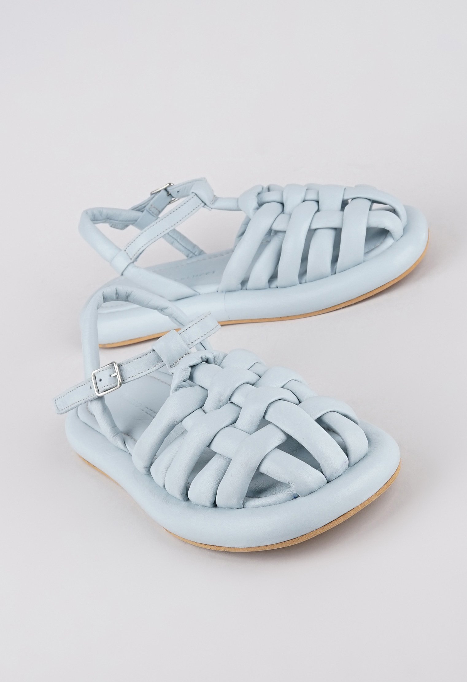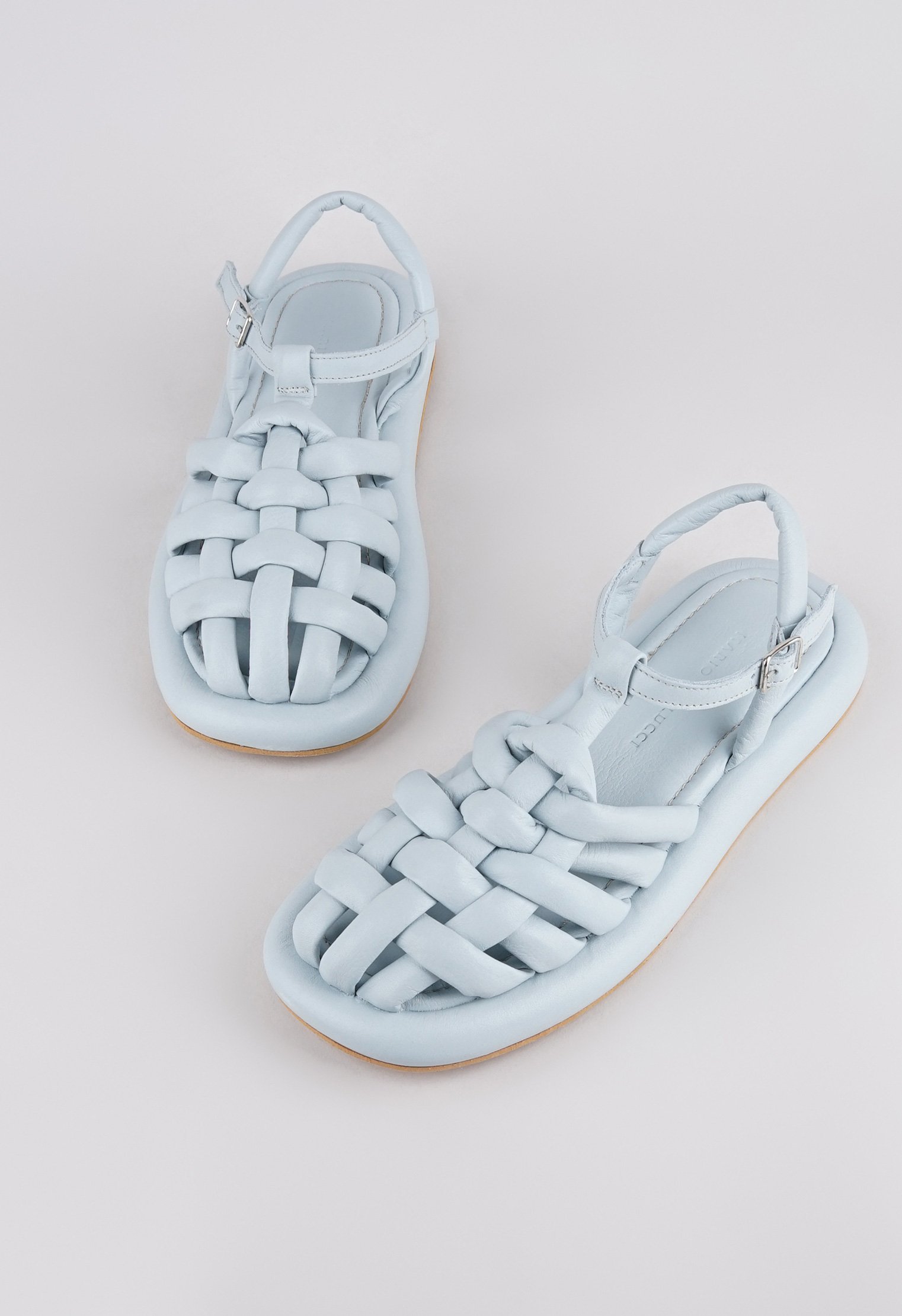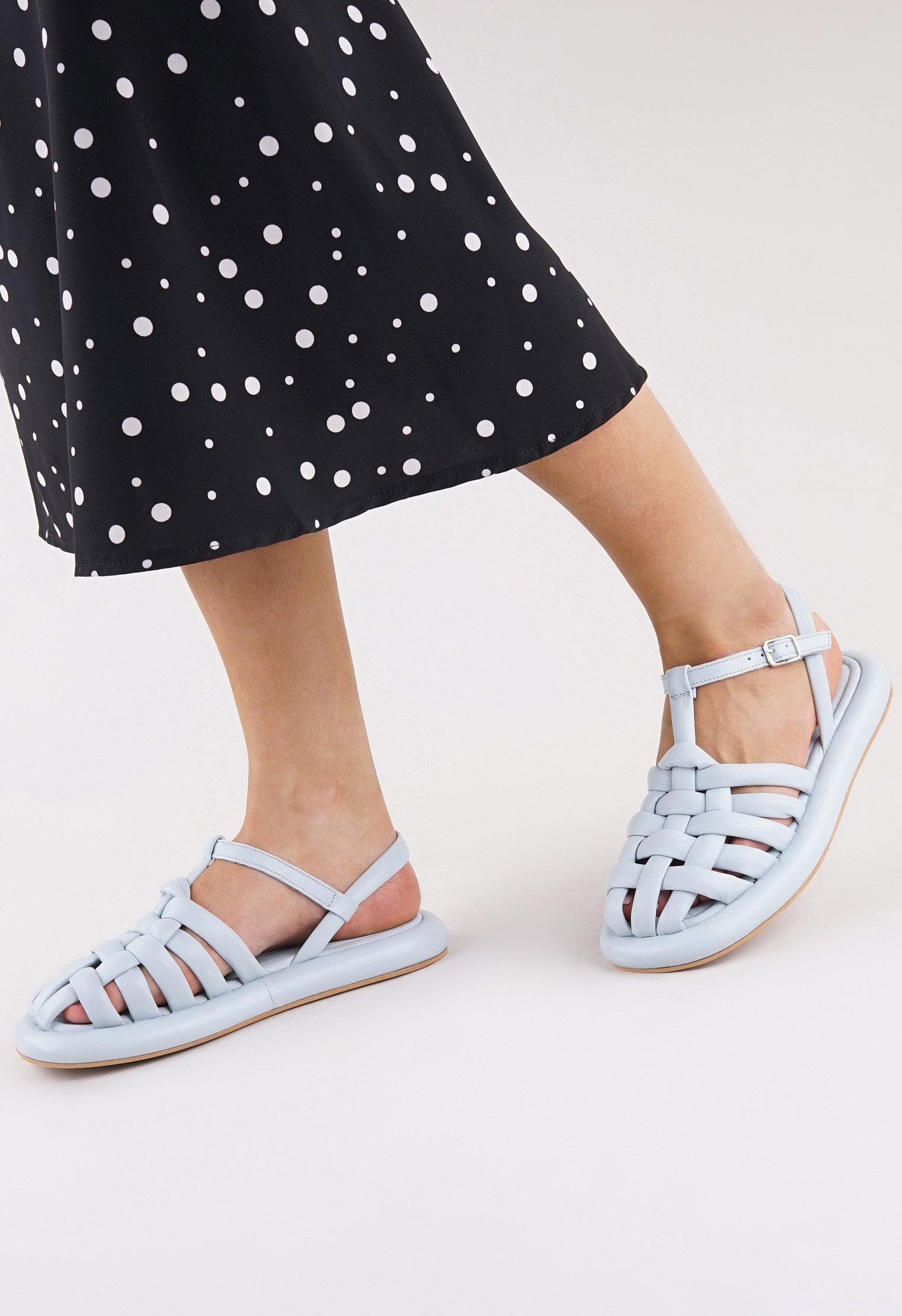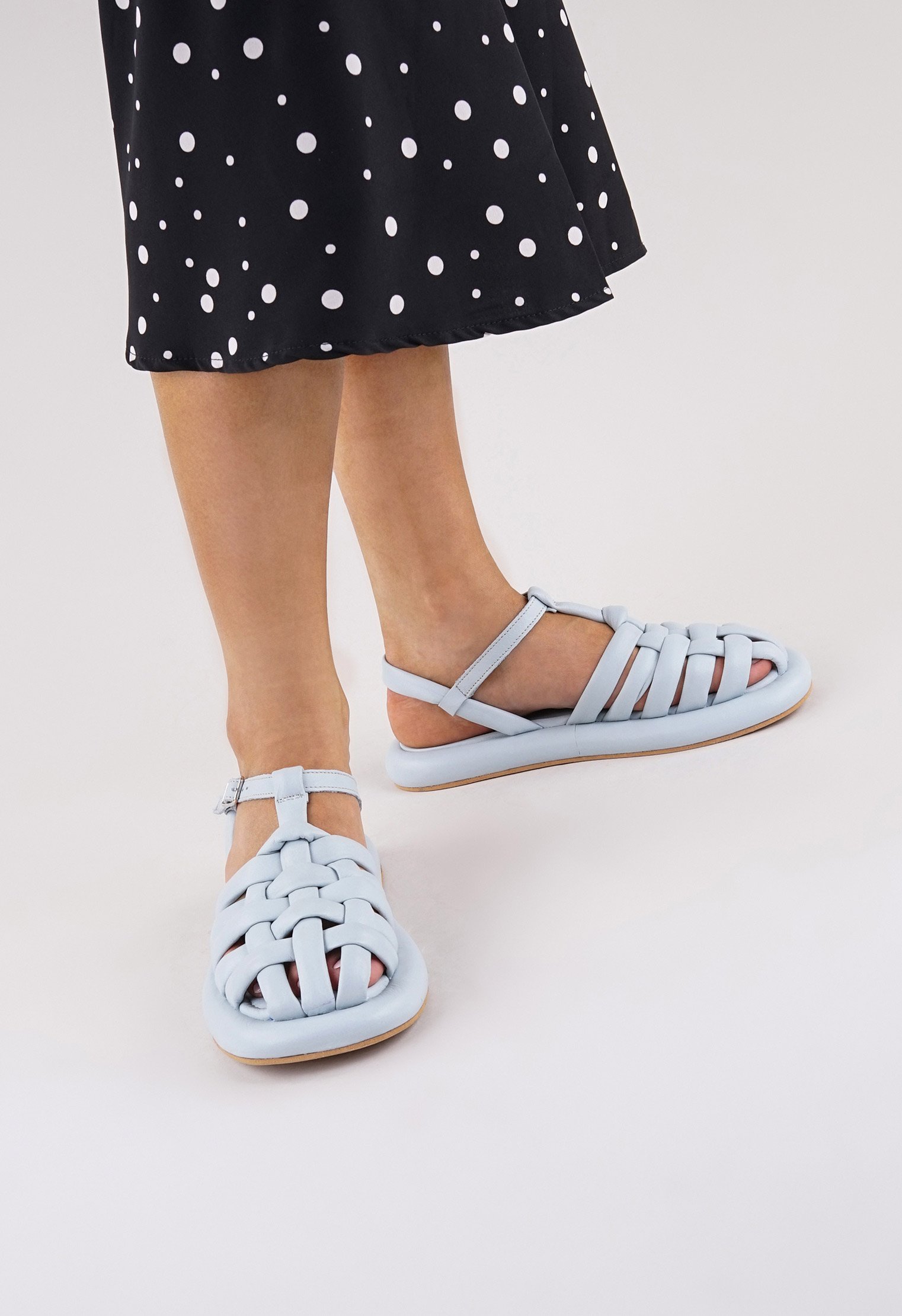 Обратите внимание: данная модель идёт в размер и отлично подходит для ног со средней и узкой полнотой и любым подъёмом стопы. Ультрамодные босоножки из новой коллекции выполнены из натуральной мягкой кожи и представлены в голубом цвете. Пряжка позволяет регулировать полноту, анатомическая кожаная стелька обеспечивает комфорт в течение дня. Современная модель превосходно сочетается как с яркими нарядами, так и с элементами повседневного летнего гардероба.