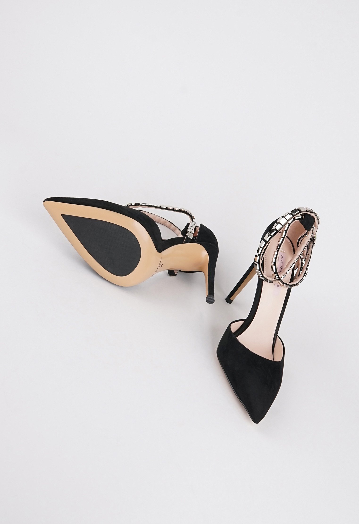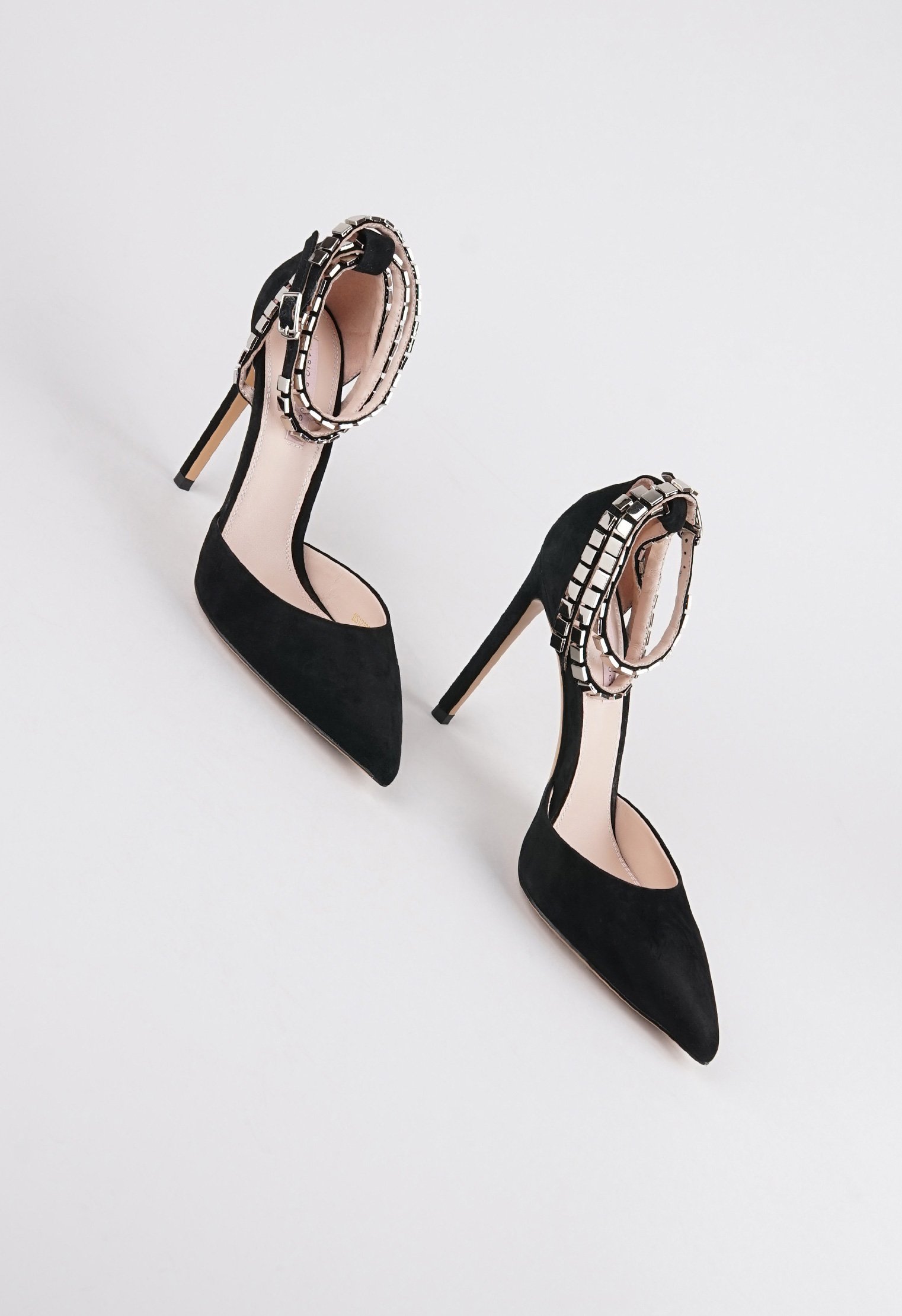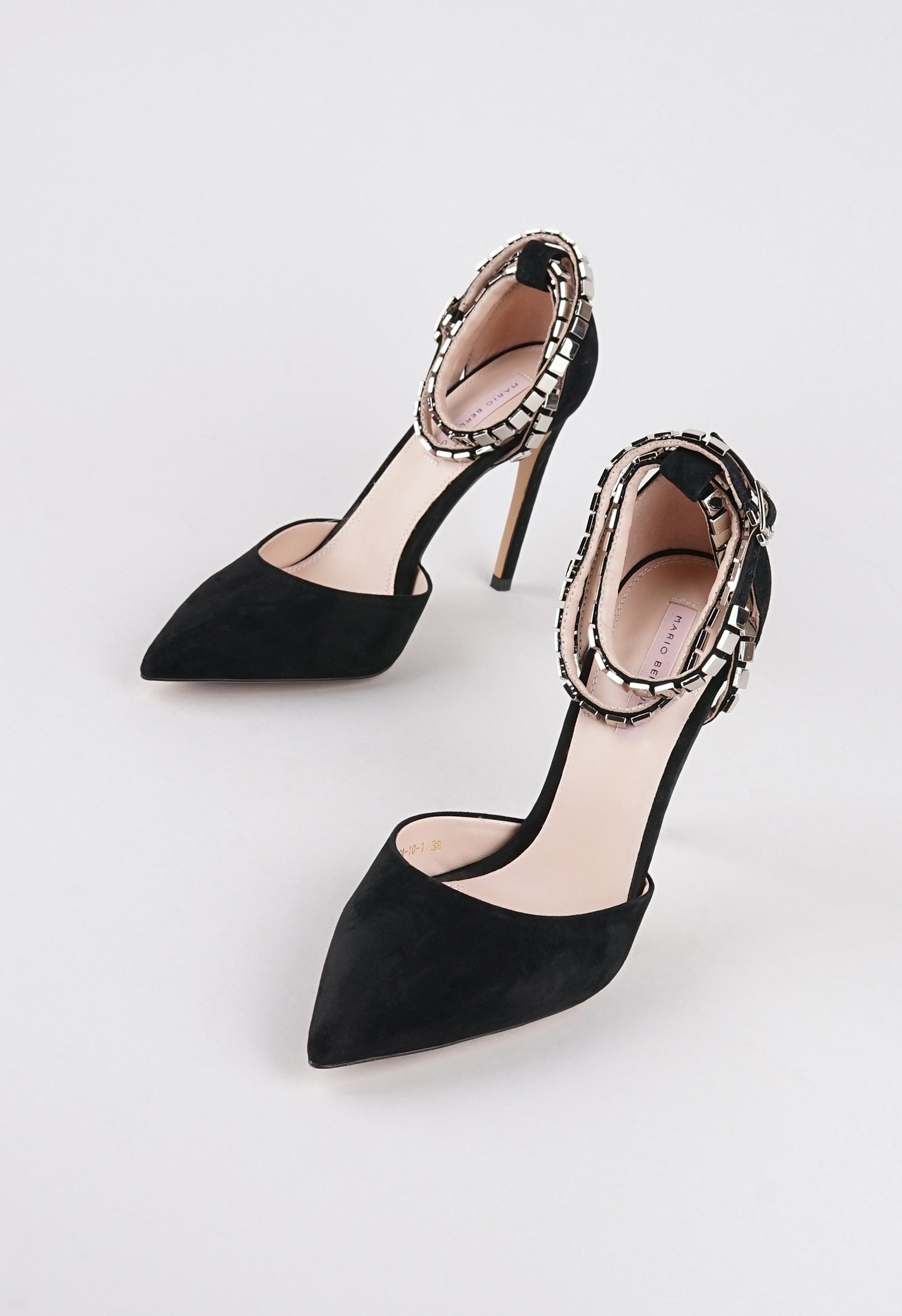 Обратите внимание: данная модель является большемеркой и отлично подходит для ног с узкой полнотой и любым подъёмом стопы. Туфли из новой коллекции выполнены из натуральной замши и декорированы серебристой фурнитурой. Трендовый крой с заострённым мысом дополнен изящным каблуком с отделкой в тон и застёжкой в виде пряжки. Анатомическая стелька из кожи обеспечивает комфорт в течение дня. Однотонная модель станет украшением женственного наряда и никогда не выйдет из моды.