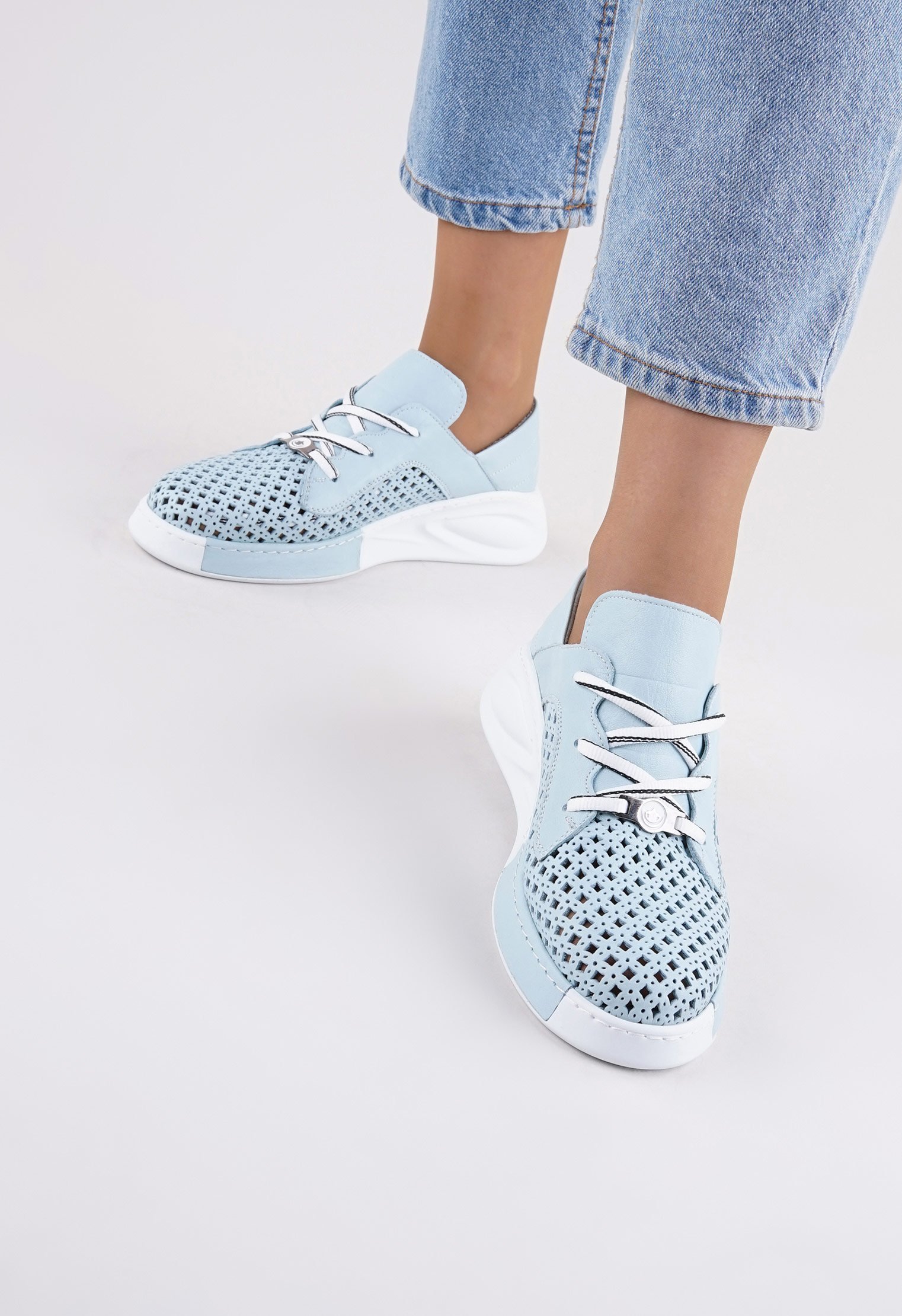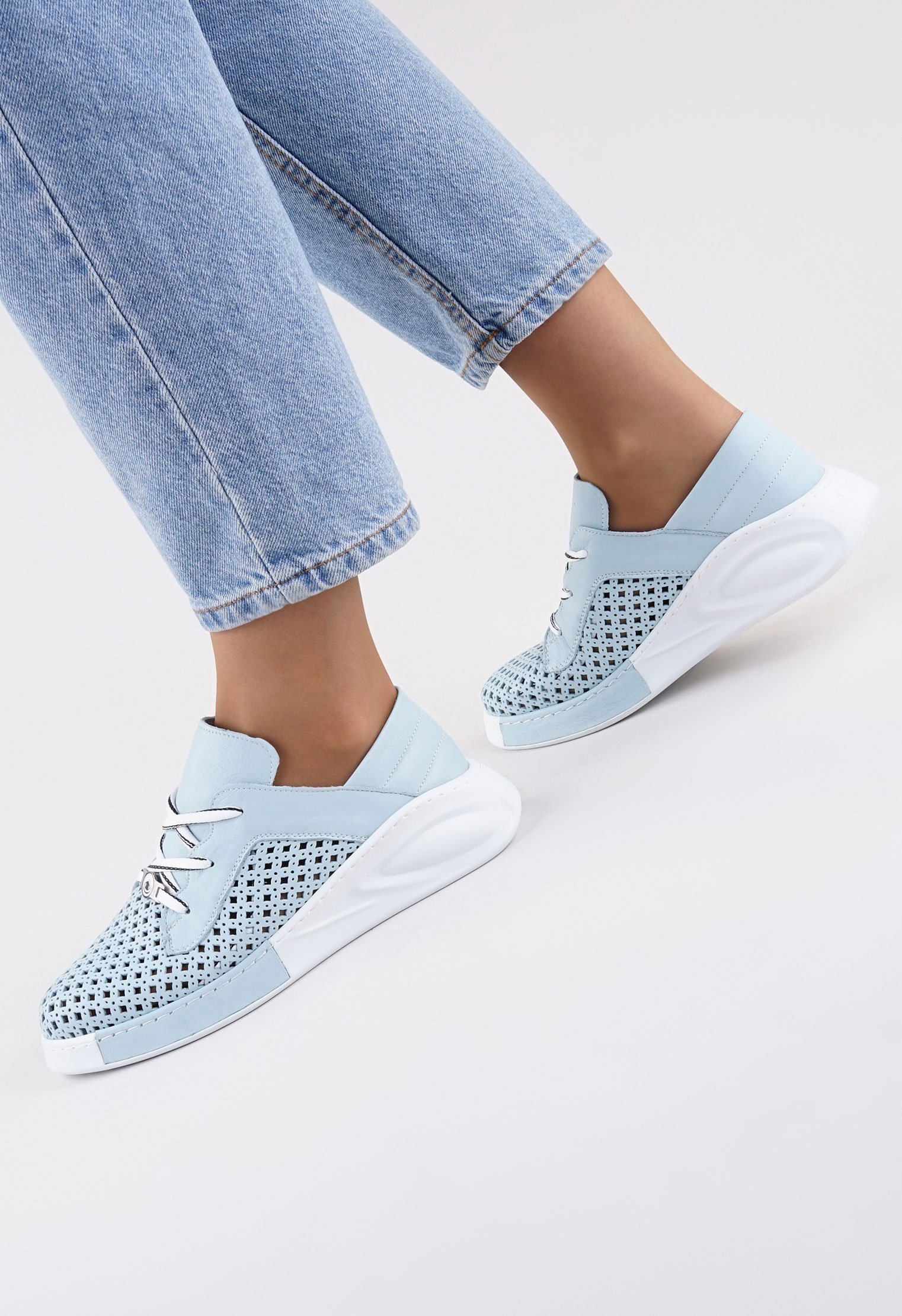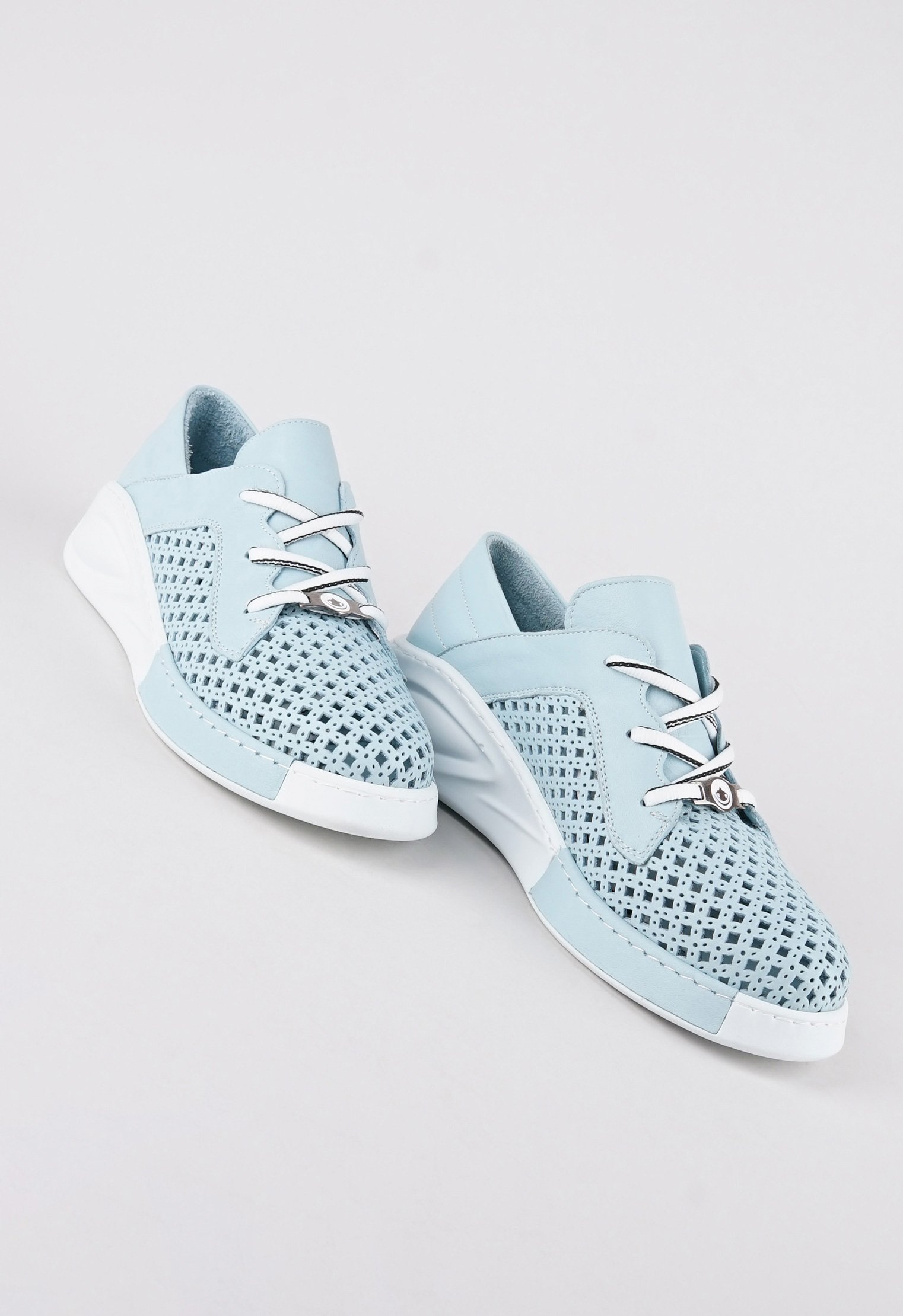 Обратите внимание: данная модель идёт в размер и отлично подходит для ног со средней полнотой и средним подъёмом стопы. Стильные кроссовки на платформе выполнены из натуральной гладкой кожи и представлены в новой коллекции в голубом цвете. Шнуровка обеспечивает особенно комфортную посадку, анатомическая кожаная стелька в точности повторяет контур стопы. Актуальная модель станет идеальным дополнением к повседневному гардеробу и поможет оставаться в тренде.