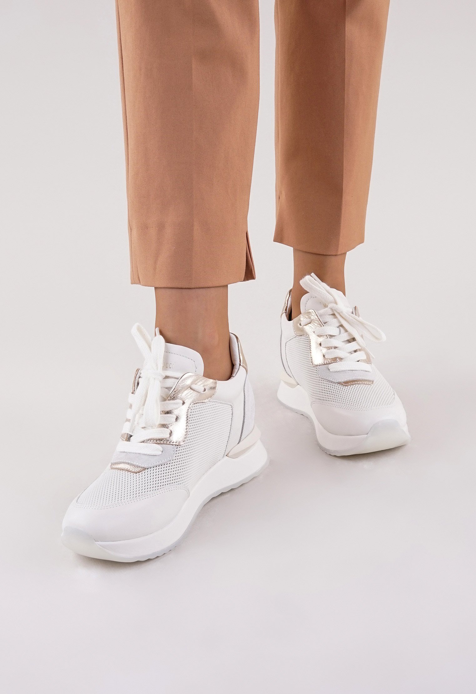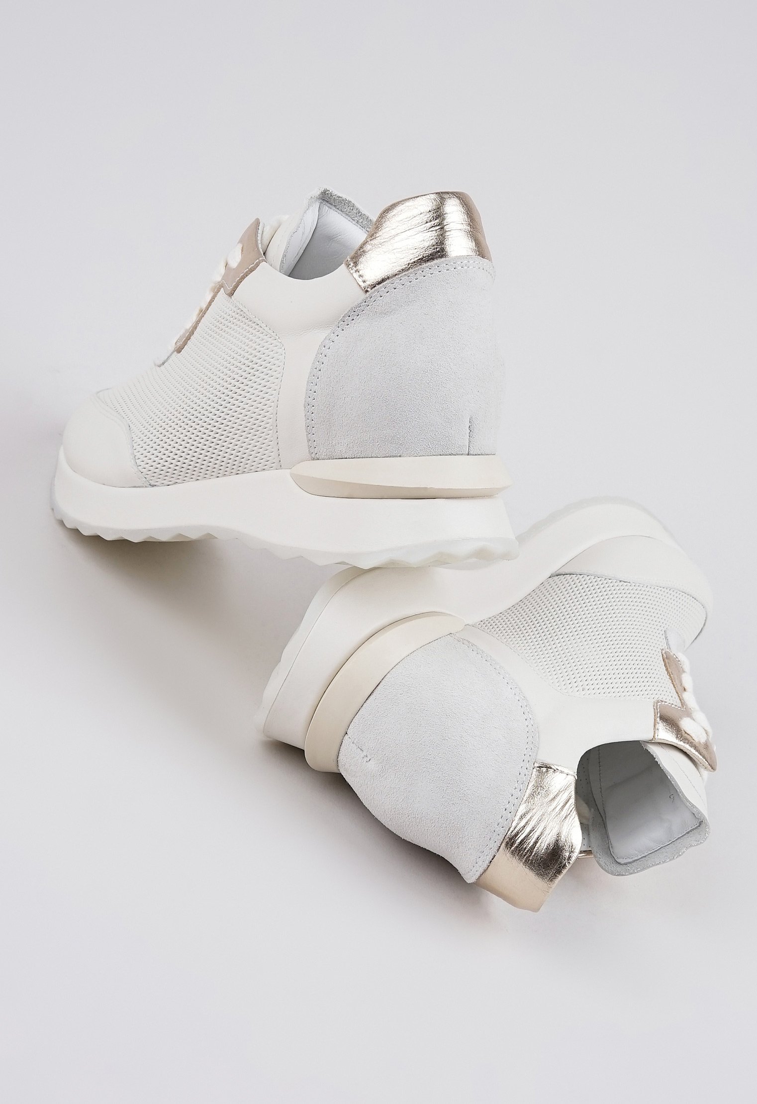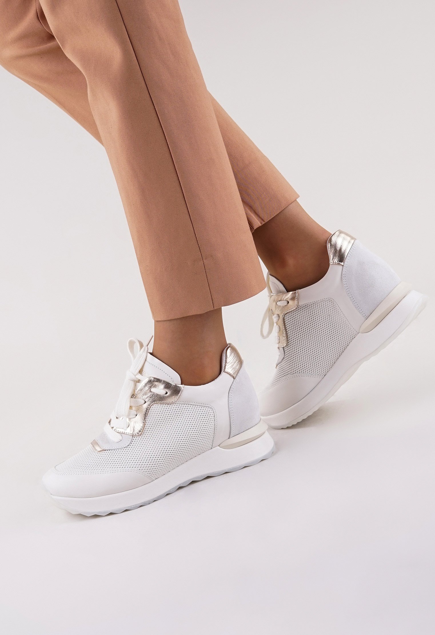 Стильные кроссовки из новой коллекции выполнены из натуральной кожи и дополнены замшевыми вставками. Шнуровка обеспечивает особенно комфортную посадку, анатомическая кожаная стелька предохраняет от усталости в конце дня. Оригинальная модель на танкетке станет ярким акцентом в повседневном образе и поможет оставаться в тренде не один сезон. Чтобы выбрать наиболее комфортную модель, соответствующую вашим анатомическим особенностям, следует учесть полноту модели и характеристики стопы. Более подробную информацию по выбору размера и об особенностях модели предоставит наш менеджер.