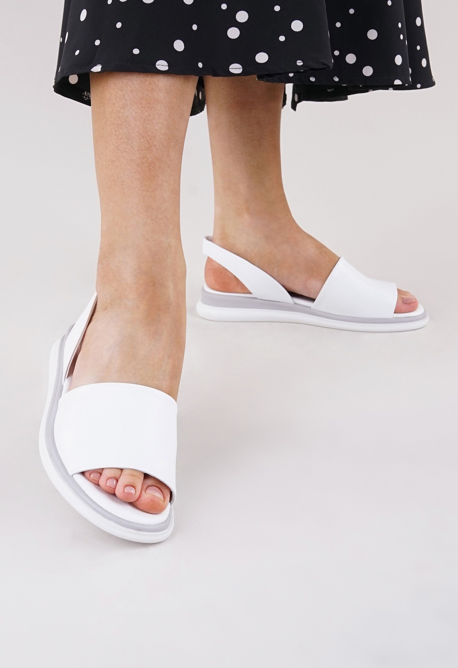 Обратите внимание: данная модель идёт в размер и отлично подходит для ног со средней и узкой полнотой и средним подъёмом стопы. Стильные сандалии из новой коллекции выполнены из натуральной гладкой кожи и представлены в белом цвете. Мягкая кожаная подкладка идеально облегает стопу, платформа из экологичного полимера позволяет равномерно распределить нагрузку во время ходьбы. Актуальная модель удачно сочетается с элементами классического и современного гардероба.
