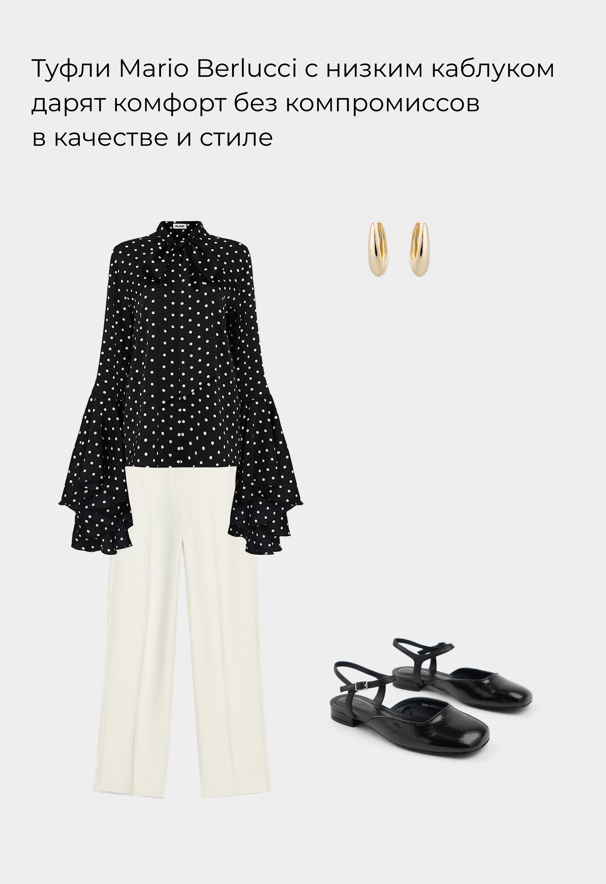 Черные туфли из натуральной кожи – это тот самый базовый элемент, который легко подстраивается под настроение и образ. Гибкая подошва и устойчивый венский каблук дарят комфорт на весь день, а квадратный мысок и аккуратная серебряная пряжка добавляет актуальности и выразительности, чтобы ваш образ точно остался заметным.