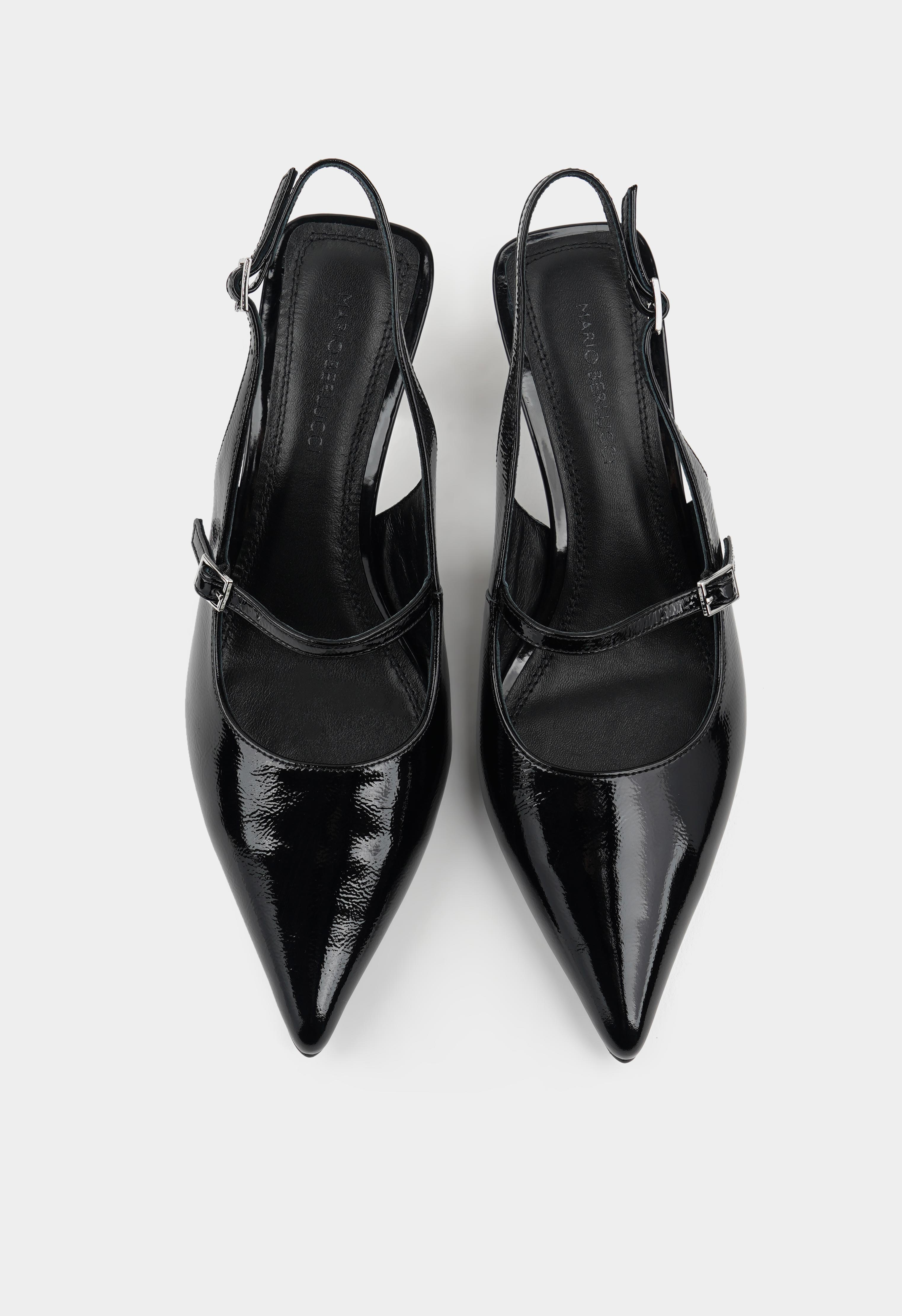 Для изготовления туфель использовалась натуральная лаковая кожа черного цвета. Модель подчеркивают серебряная пряжка и устойчивый каблук. Пара с кожаной внутренней отделкой плотно сидит на ноге, а комфорт при ходьбе обеспечивает анатомическая стелька. Чтобы выбрать наиболее комфортную модель, соответствующую вашим анатомическим особенностям, следует учесть полноту модели и характеристики стопы. Более подробную информацию по выбору размера и об особенностях модели предоставит наш менеджер.