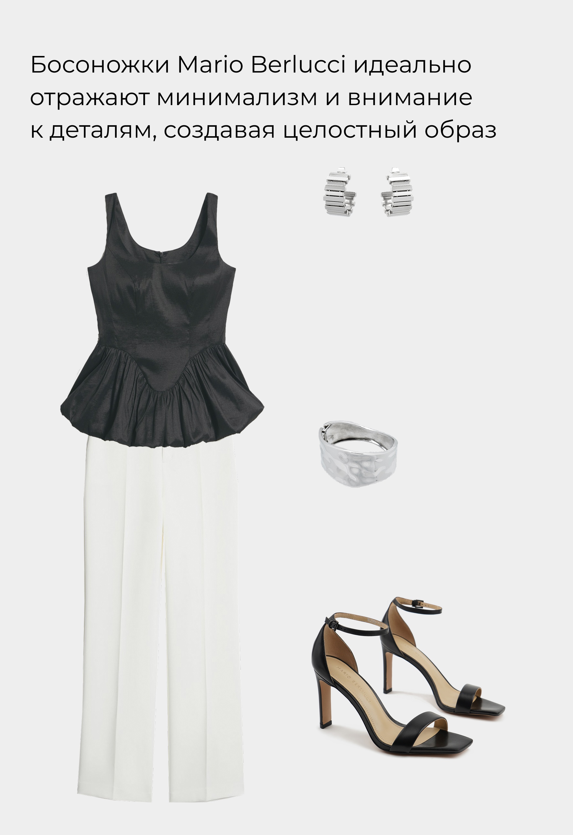 Эти черные босоножки из натуральной кожи – безупречный выбор для тех, кто хочет сочетать трендовый стиль и практичность. Геометричный каблук придает образу архитектурную четкость, в то время как серебристая фурнитура добавляет изысканный блеск. Открытый мысок смотрится легко и актуально в летнем гардеробе, а пряжка надежно фиксирует посадку. Жесткая подошва обеспечивает стабильность при ходьбе, сохраняя при этом комфорт на весь день.