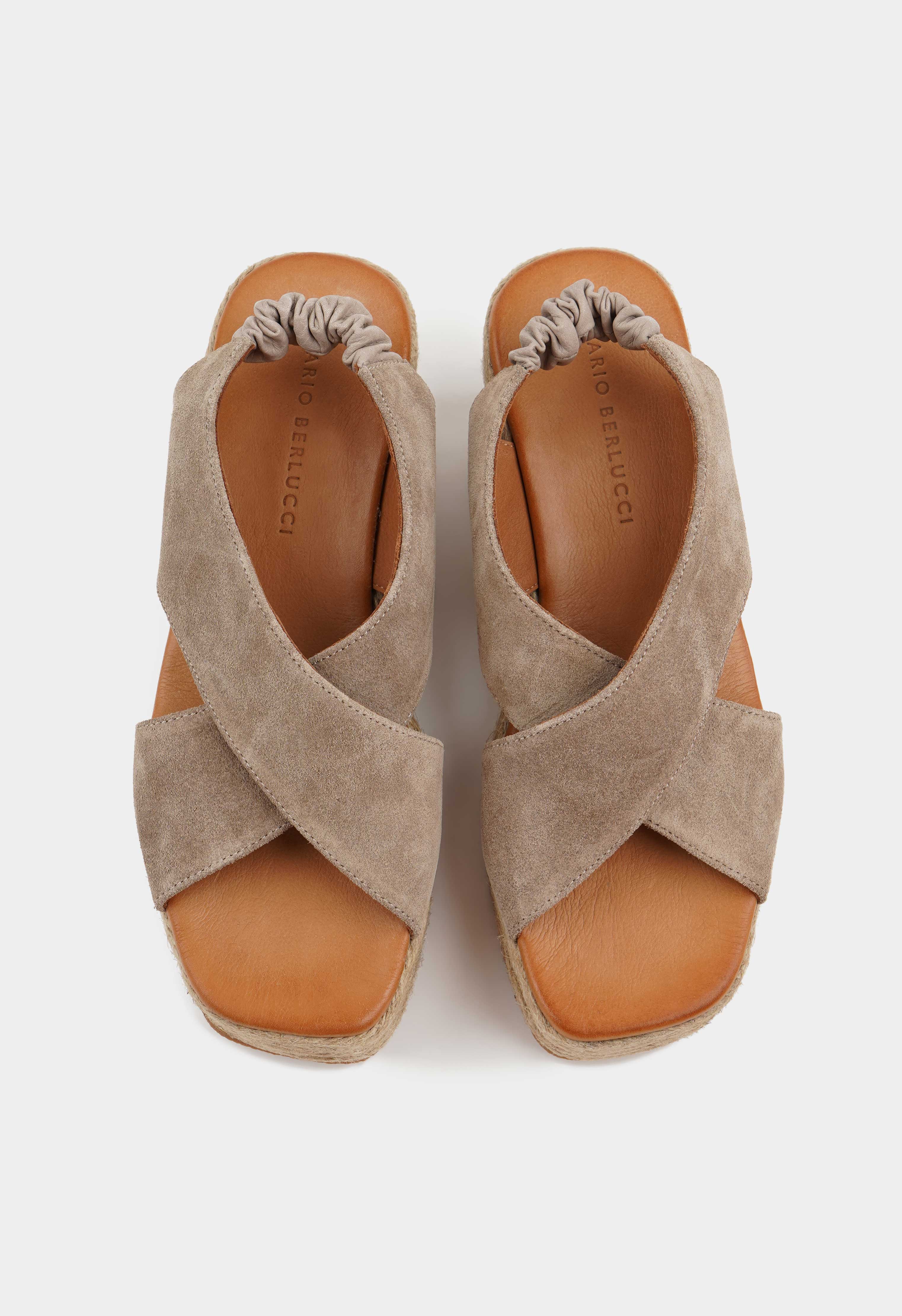 Для изготовления босоножек использовалась натуральная замша бежевого цвета. Комфорт при ходьбе обеспечивает жесткая платформа и кожаная стелька. Чтобы выбрать наиболее комфортную модель, соответствующую вашим анатомическим особенностям, следует учесть полноту модели и характеристики стопы. Более подробную информацию по выбору размера и об особенностях модели предоставит наш менеджер.