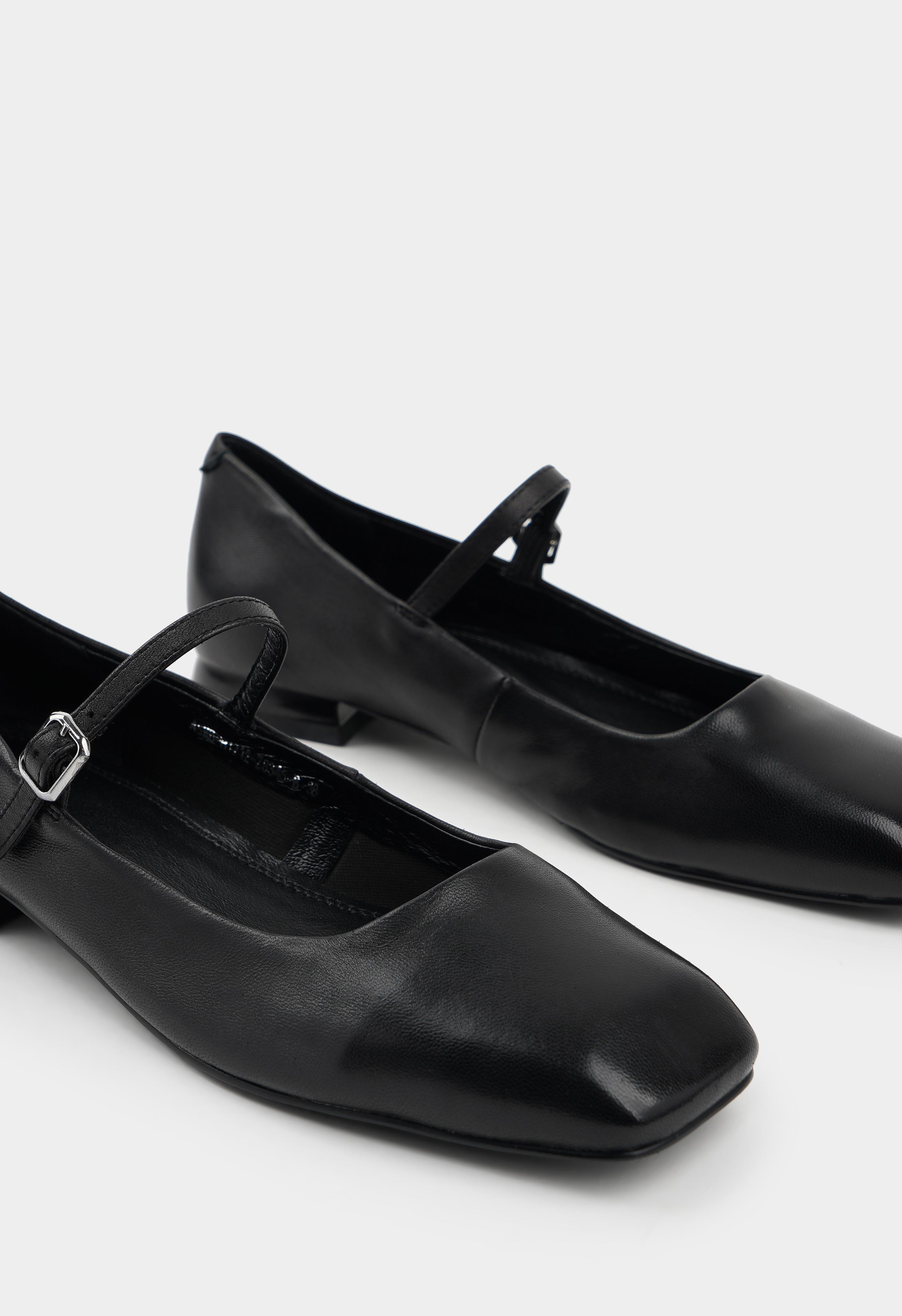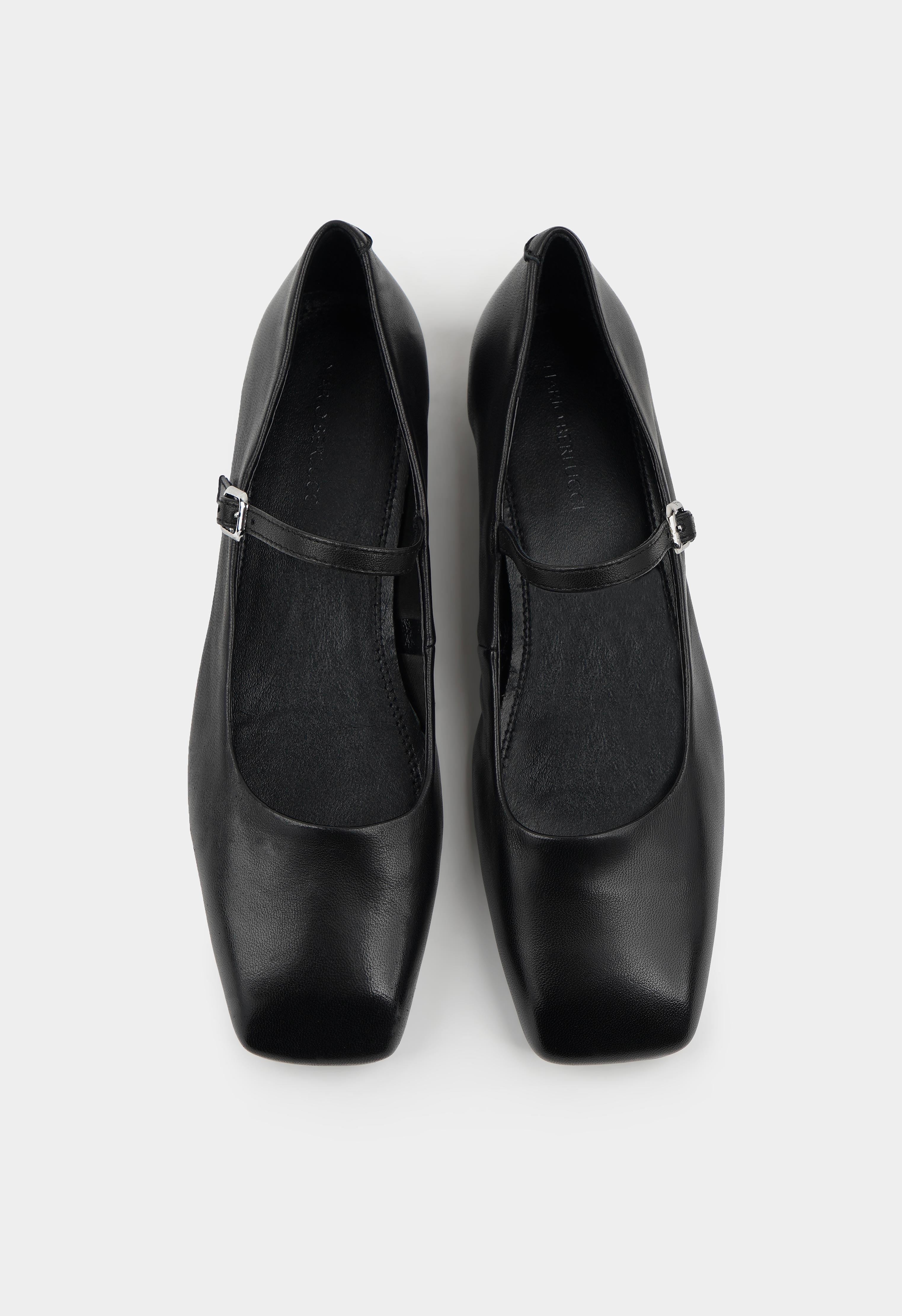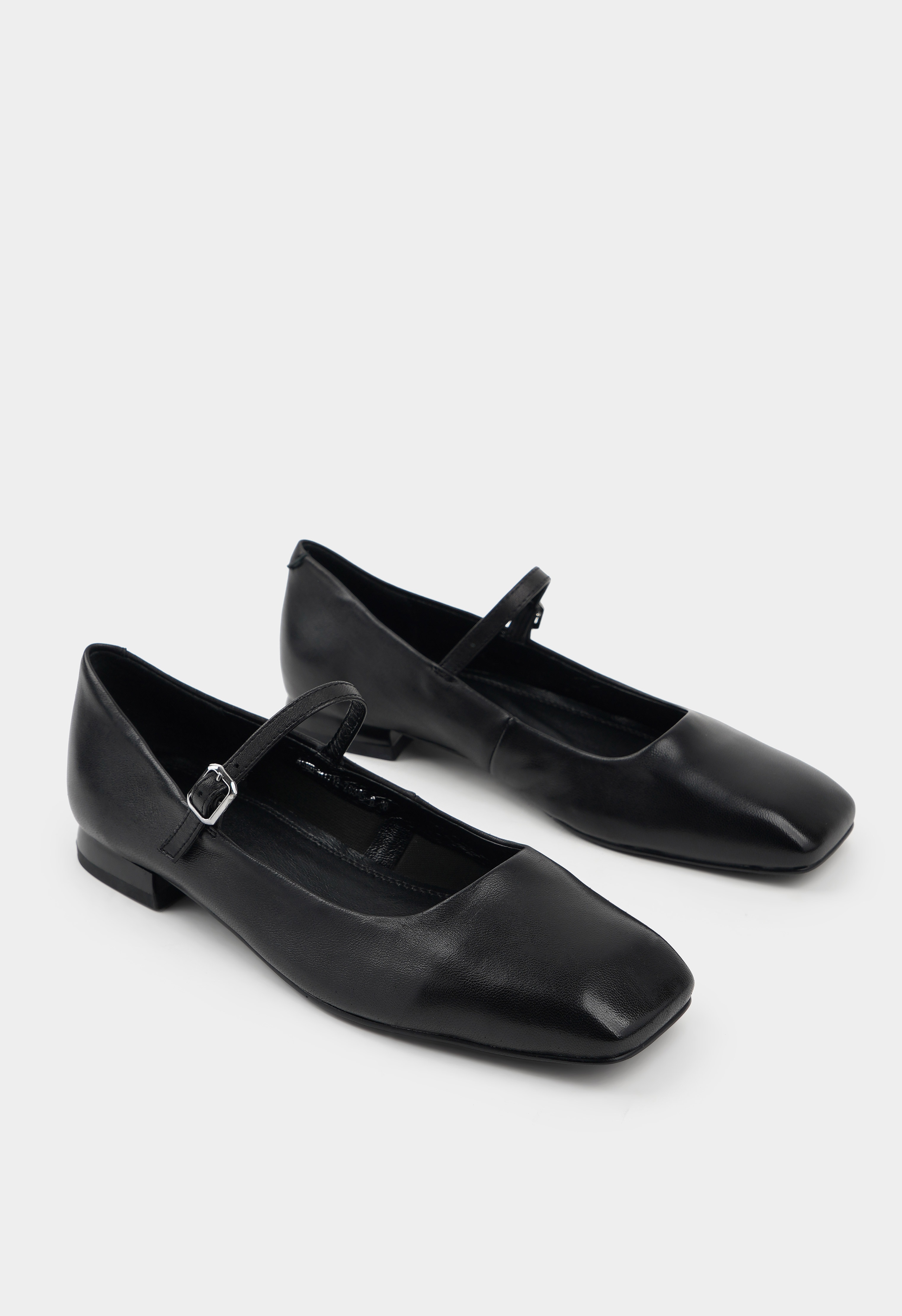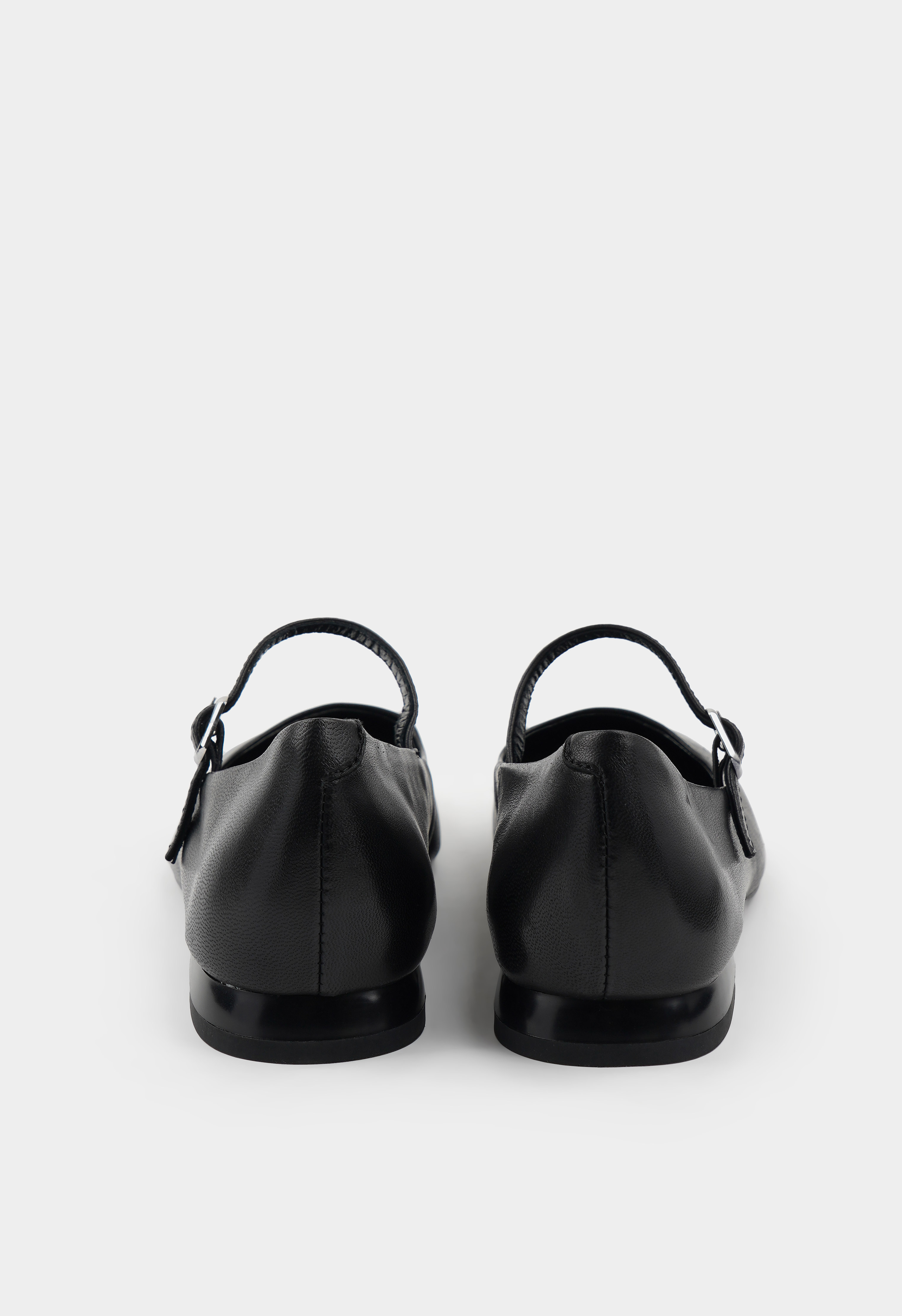 Балетки из натуральной кожи в черном цвете. Дизайн модели подчеркивает серебряная застежка на пряжке и геометричный каблук, а гибкая подошва и анатомическая стелька сделают носку обуви комфортной. Чтобы выбрать наиболее комфортную модель, соответствующую вашим анатомическим особенностям, следует учесть полноту модели и характеристики стопы. Более подробную информацию по выбору размера и об особенностях модели предоставит наш менеджер.