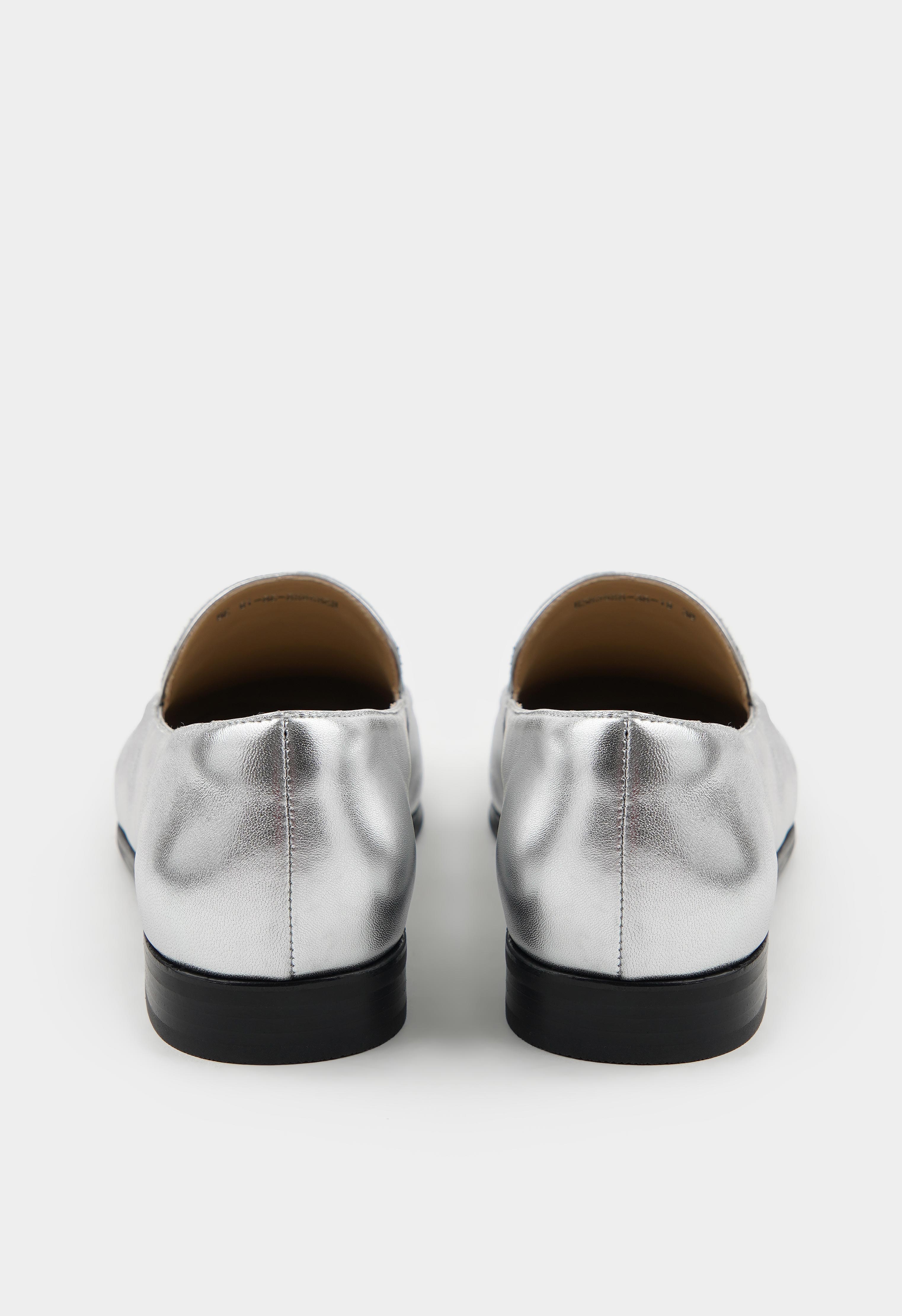 Стильные лоферы из натуральной кожи в серебряном цвете. Модель подчёркивает едва заметный венский каблук. Комфорт при ходьбе обеспечивают гибкая подошва и несъёмная стелька. Чтобы выбрать наиболее комфортную модель, соответствующую вашим анатомическим особенностям, следует учесть полноту модели и характеристики стопы. Более подробную информацию по выбору размера и об особенностях модели предоставит наш менеджер.