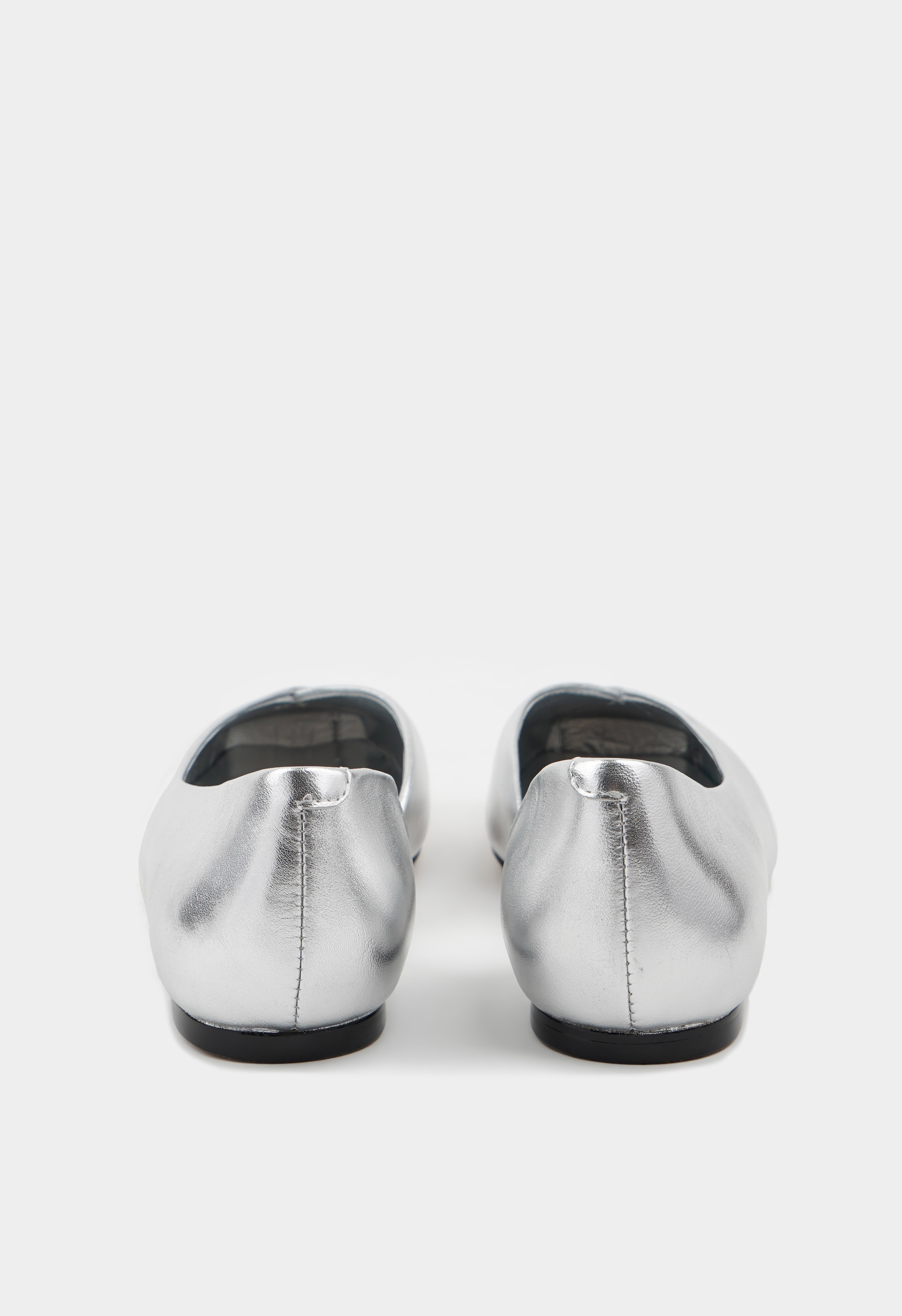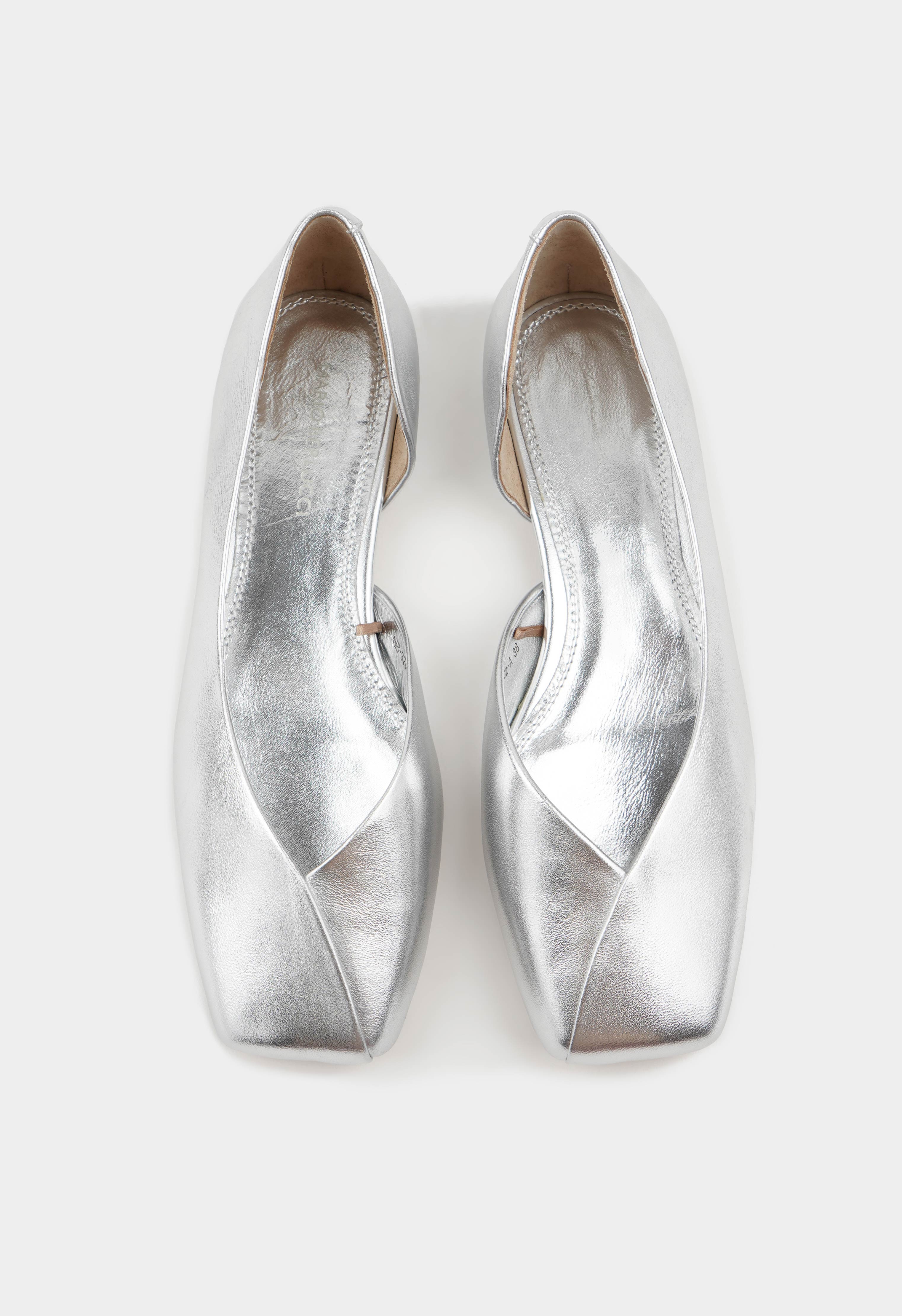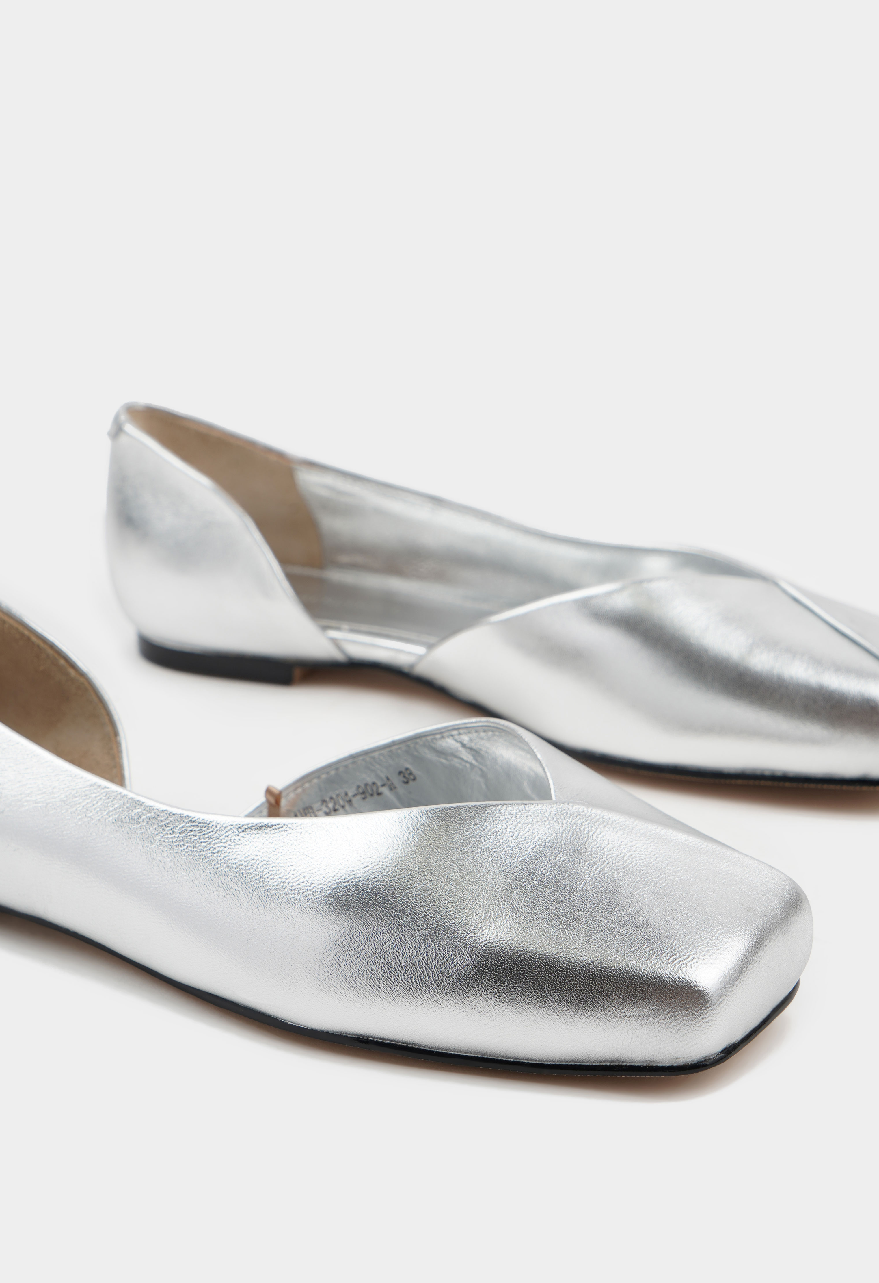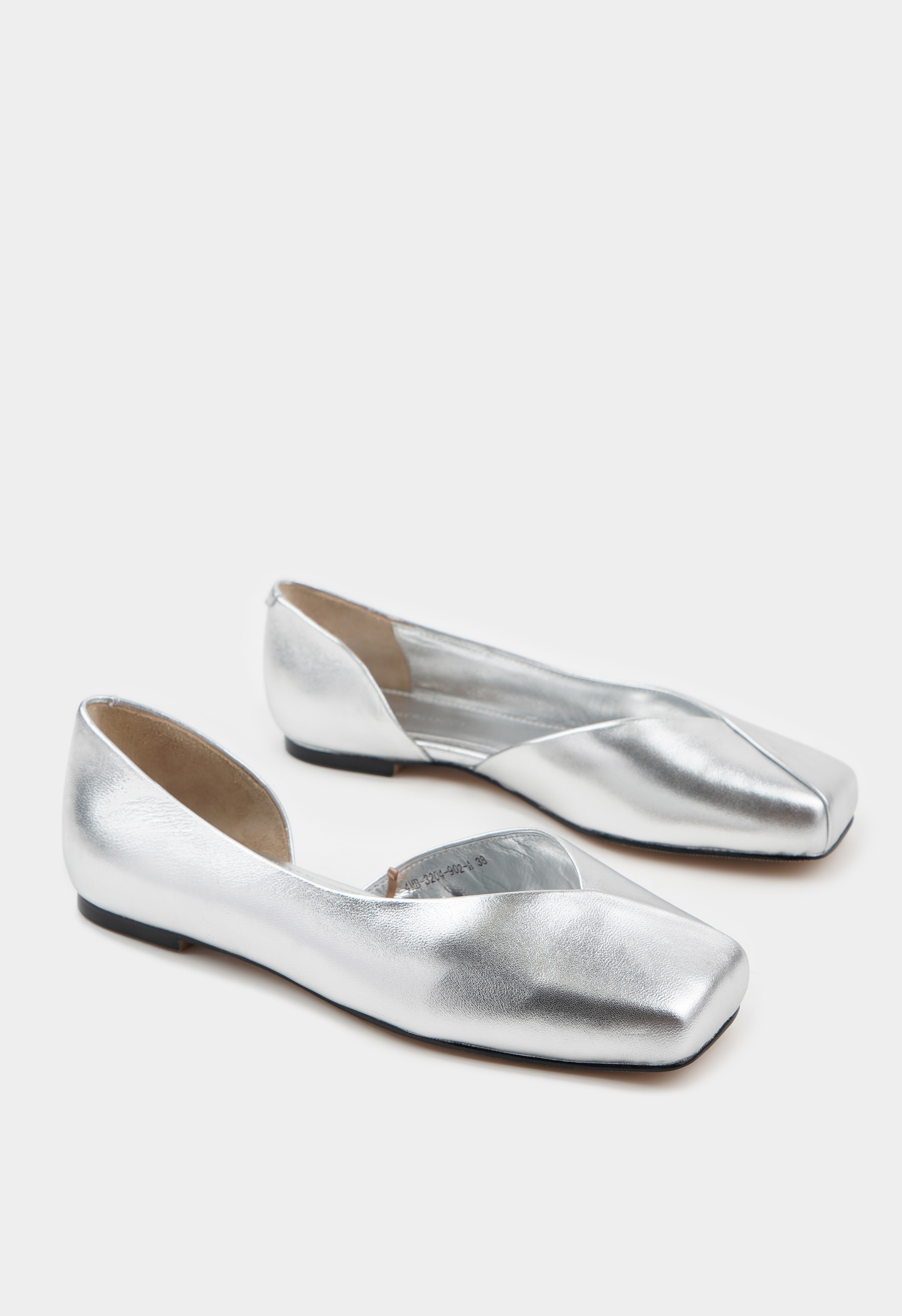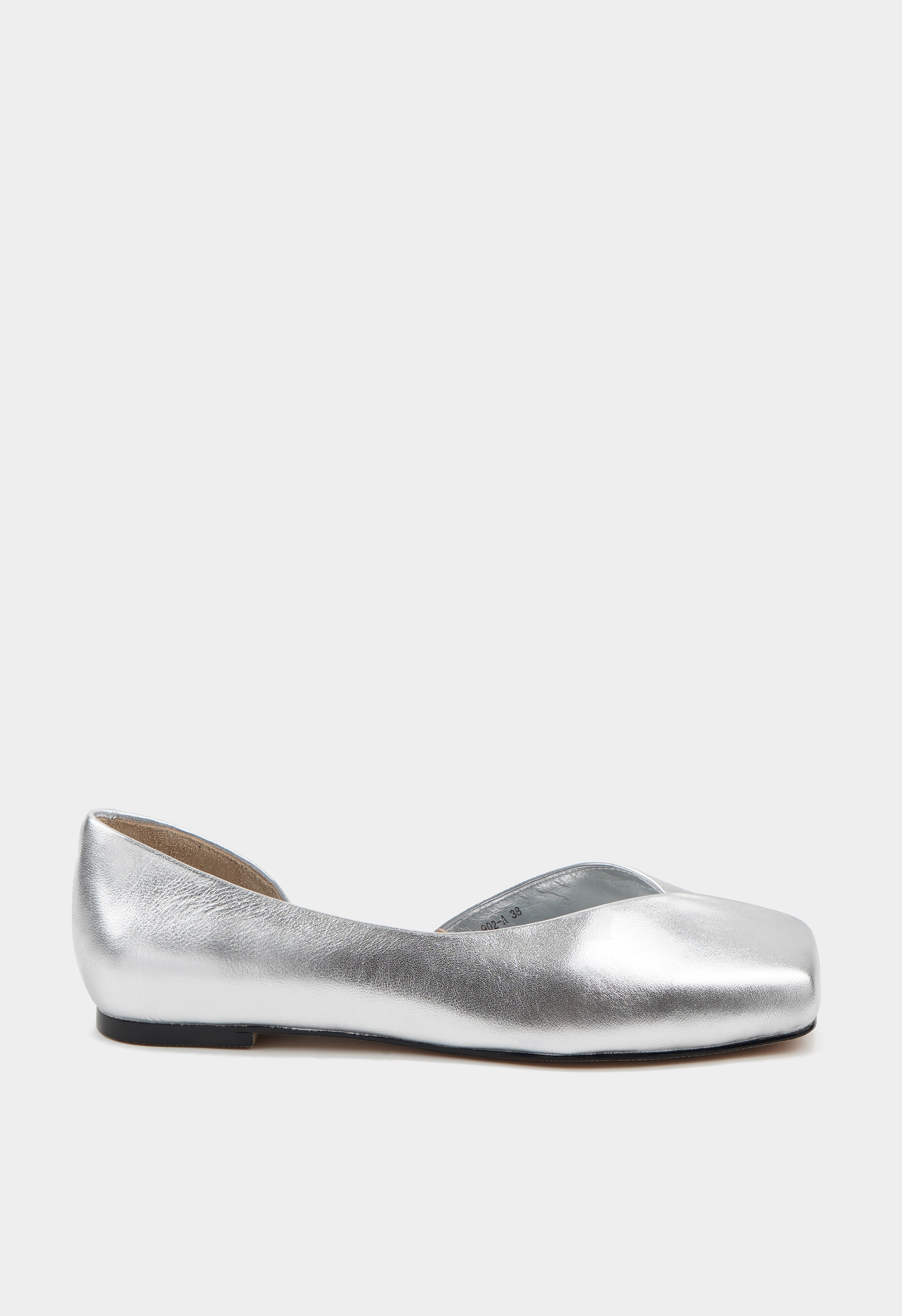 Минималистичные балетки из натуральной кожи в серебряном цвете. Модель подчеркивает квадратный тип мыска, а комфорт при ходьбе обеспечивают несъемная стелька и гибкая подошва. Чтобы выбрать наиболее комфортную модель, соответствующую вашим анатомическим особенностям, следует учесть полноту модели и характеристики стопы. Более подробную информацию по выбору размера и об особенностях модели предоставит наш менеджер.