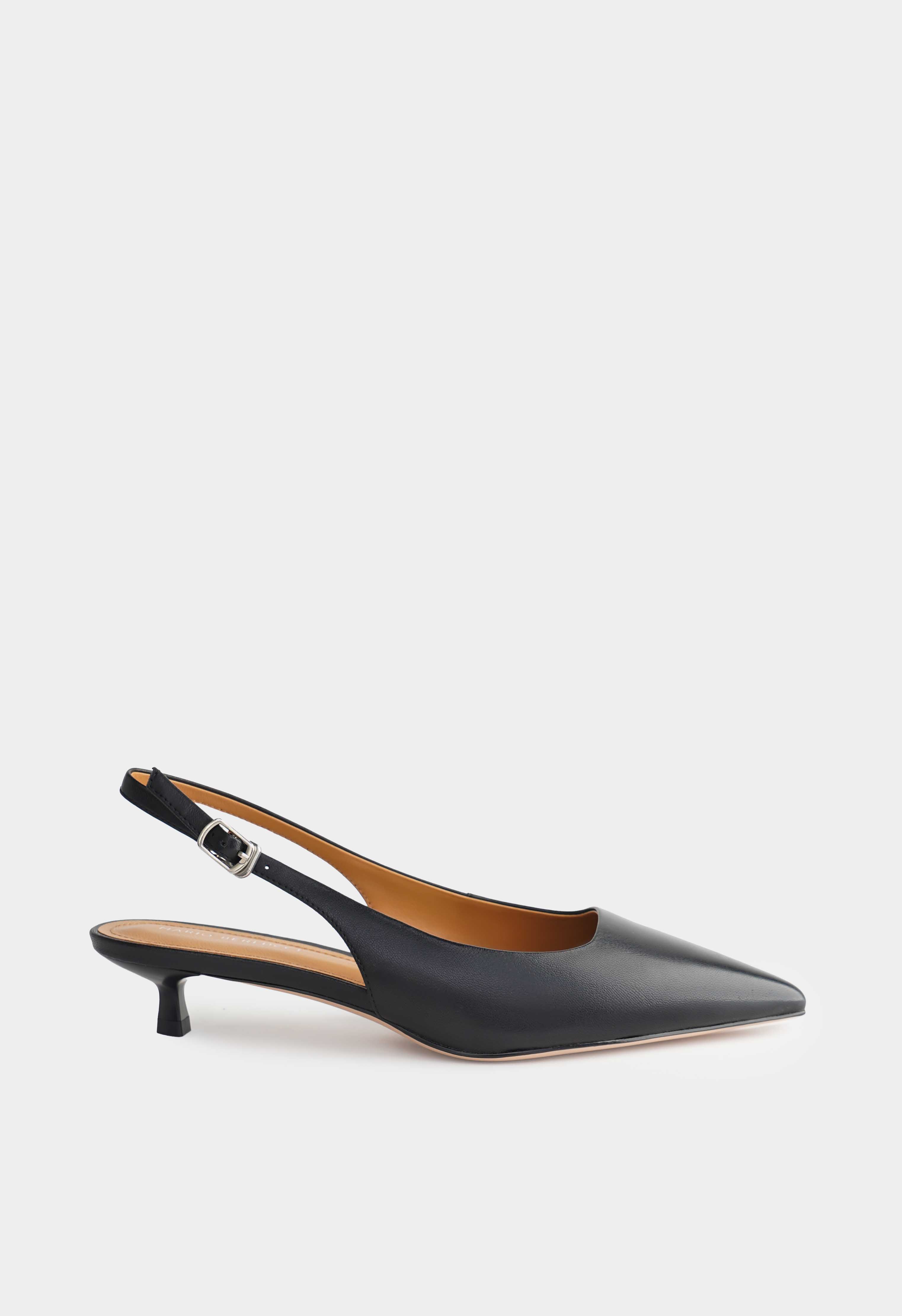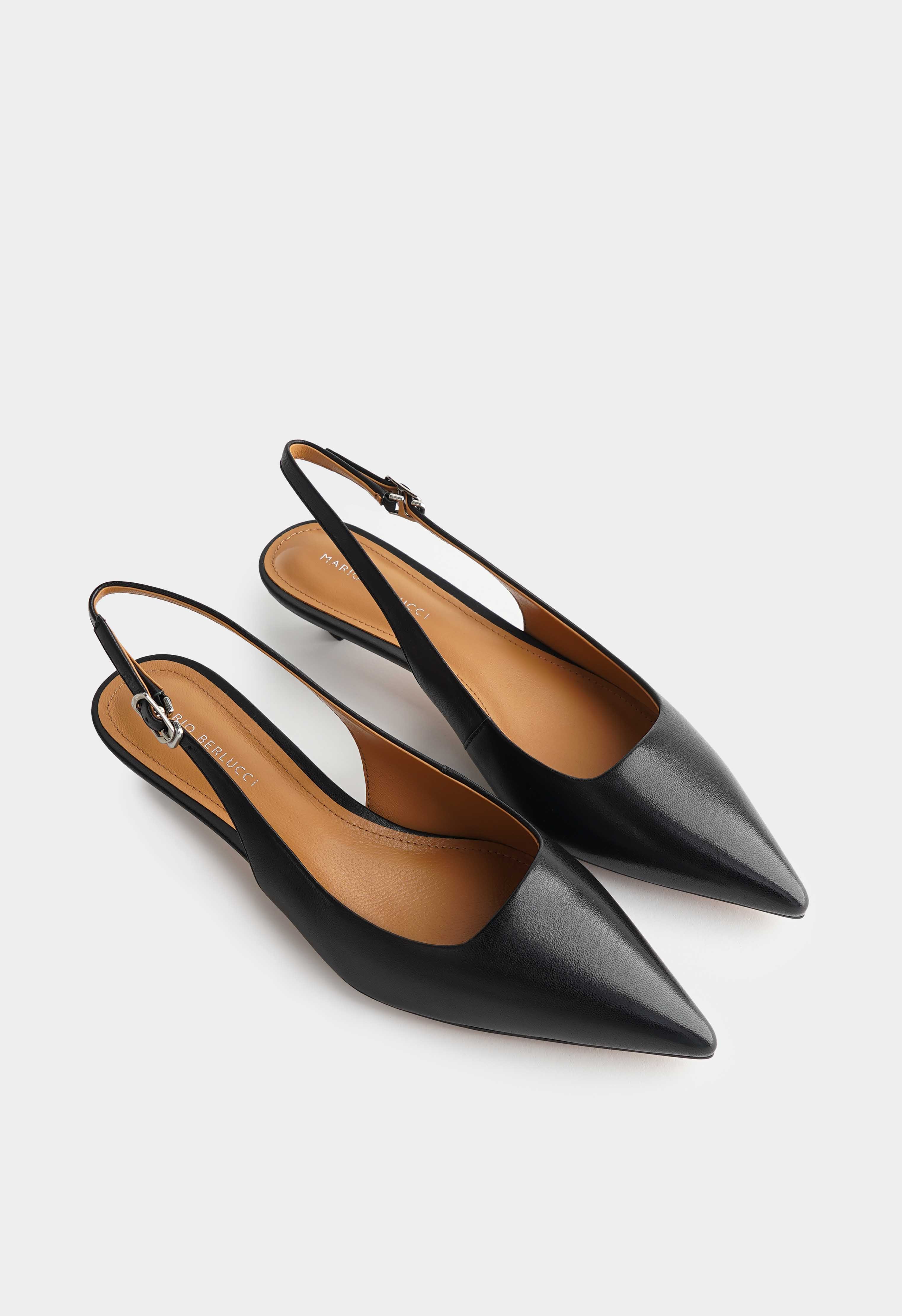 Элегантные черные туфли – идеальный выбор для создания женственного и утонченного образа. Модель выполнена из натуральной кожи, гарантируюшей комфорт в носке и долговечность. Заостренный мысок визуально вытягивает силуэт, а изящный каблук-рюмка придает походке легкость и грацию. Аккуратная серебряная пряжка добавляет стильный акцент и подчеркивает премиальный характер модели. Эти туфли органично впишутся как в деловой гардероб, так и в вечерние образы, легко сочетаясь с классическими юбками, платьями и современными брюками.