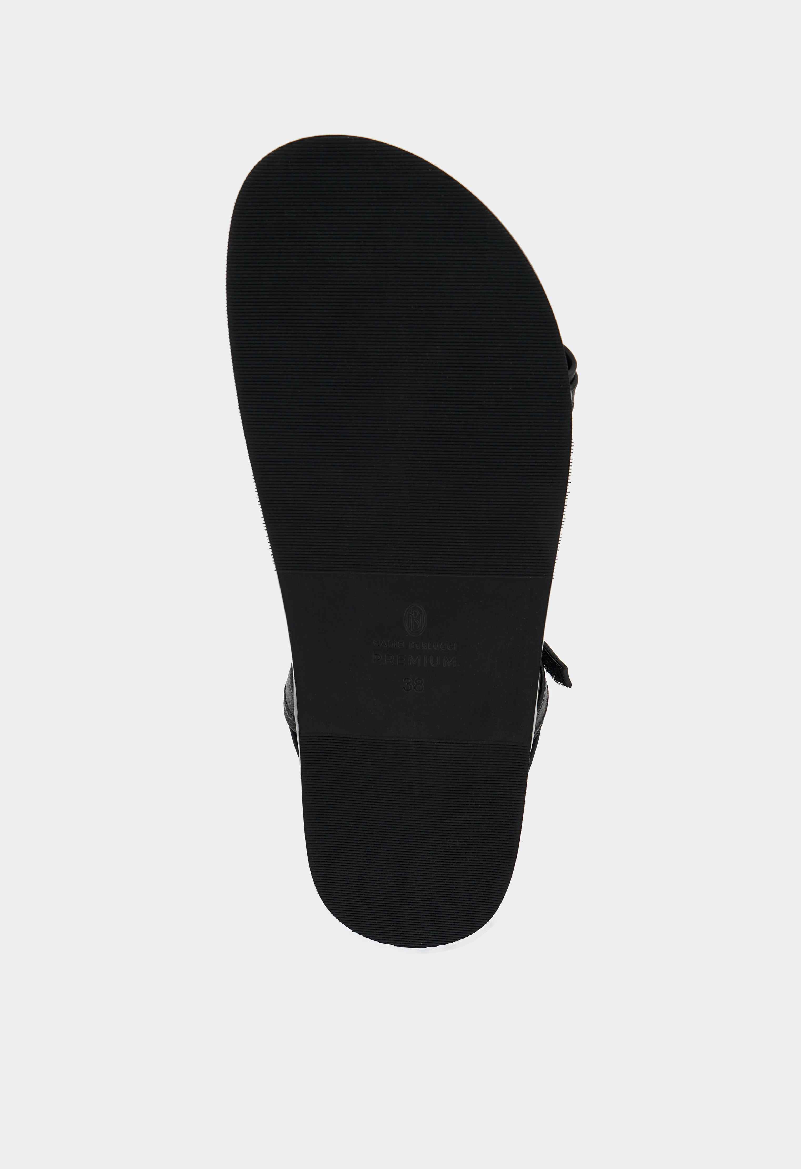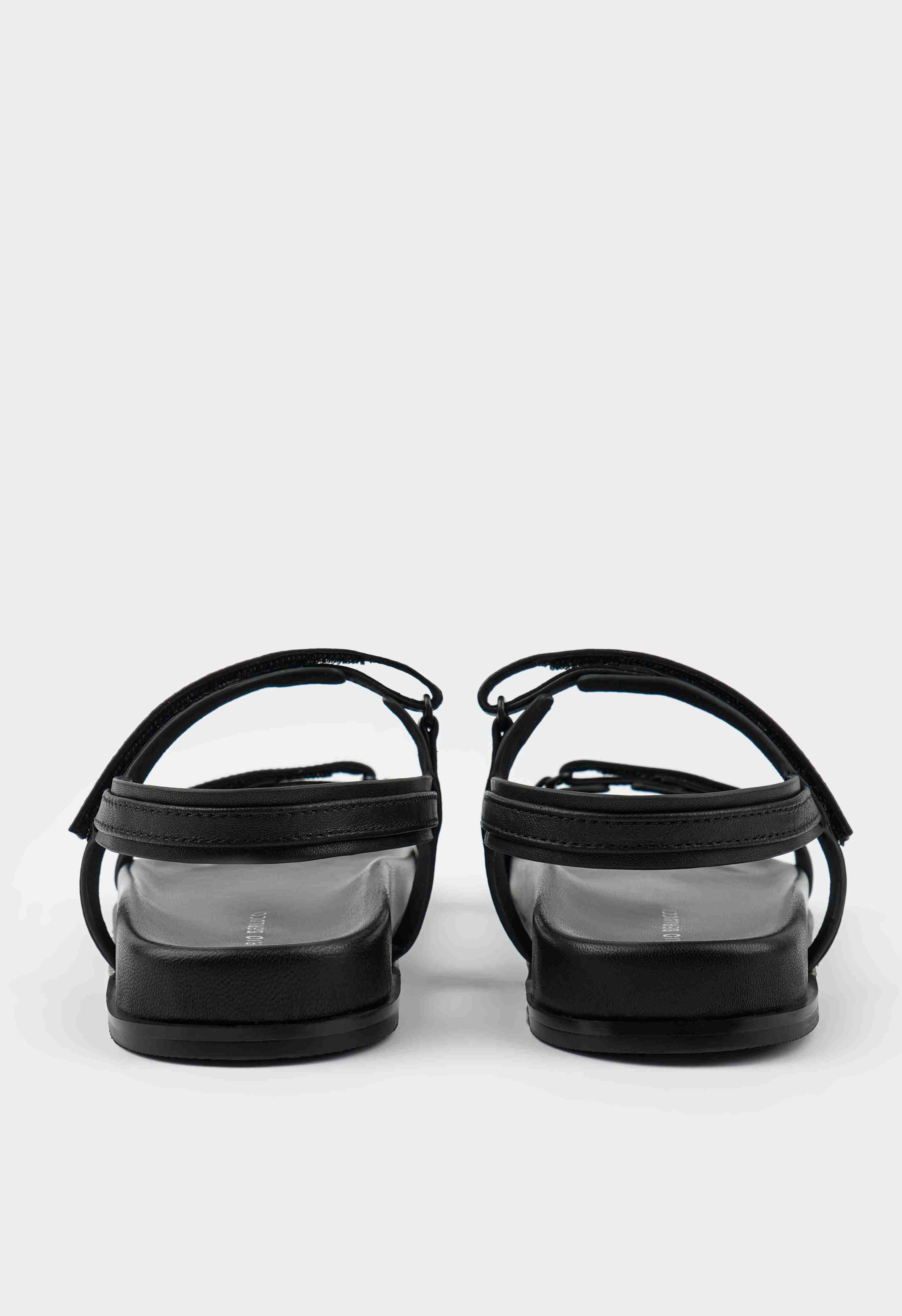 Эти минималистичные сандалии из натуральной кожи в классическом черном цвете – универсальный выбор для теплого сезона. Элегантные ремешки с фурнитурой в тон модели и удобной липучкой создают чистый и современный силуэт, а гибкая подошва дарит комфорт при каждом шаге. Открытый мысок делает модель легкой и дышащей. Сандалии легко сочетаются с повседневными и расслабленными образами.
