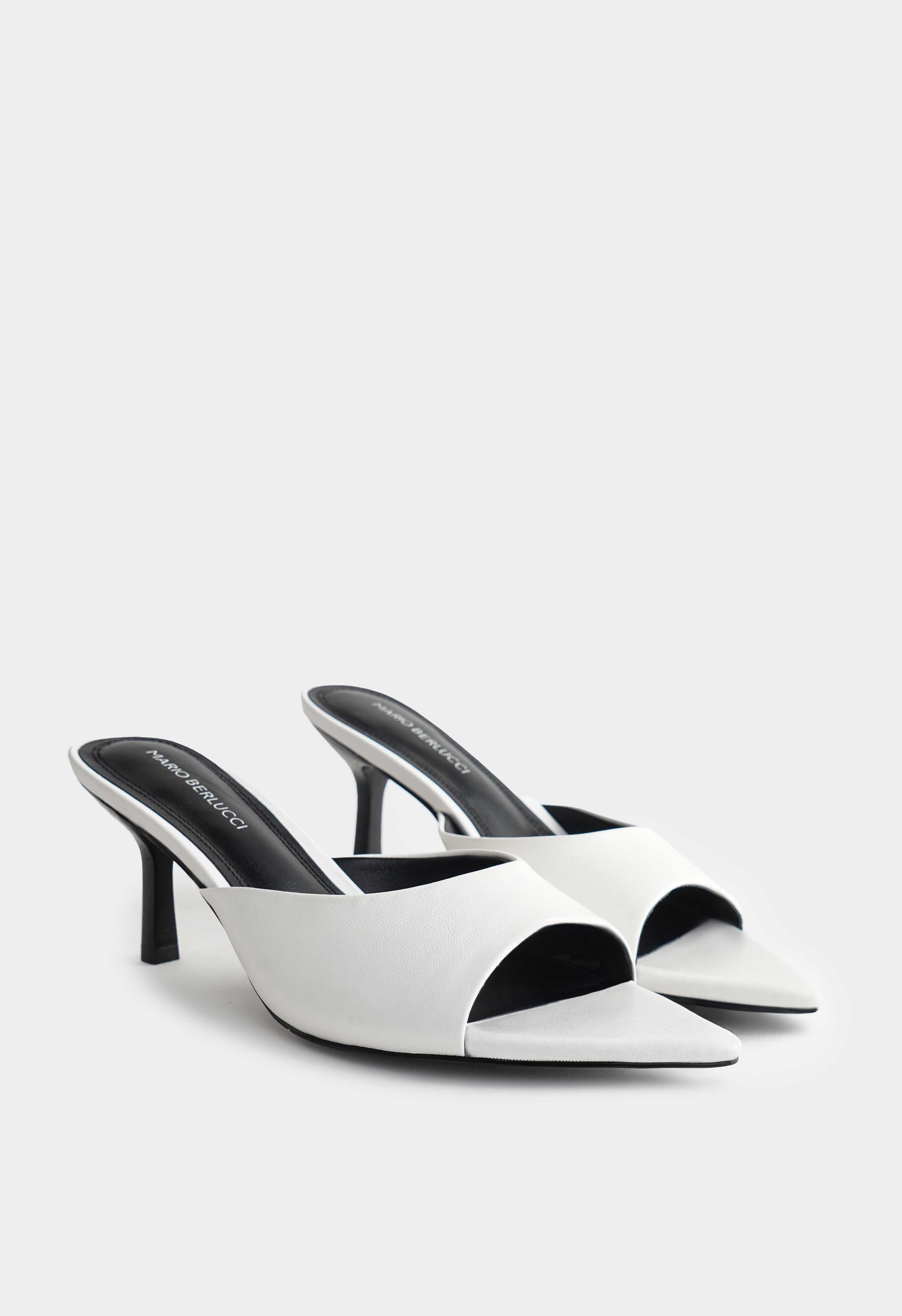 Белые мюли из натуральной кожи – эффектная пара с элегантными линиями и комфортной посадкой, которая мгновенно делает образ более собранным. Широкий кожаный верх аккуратно фиксирует стопу, открытый мысок добавляет легкости и подчеркивает педикюр. Изящный клиновидный каблук смотрится современно и визуально вытягивает силуэт, сохраняя уверенную опору. Жесткая подошва держит форму и дает стабильный шаг.