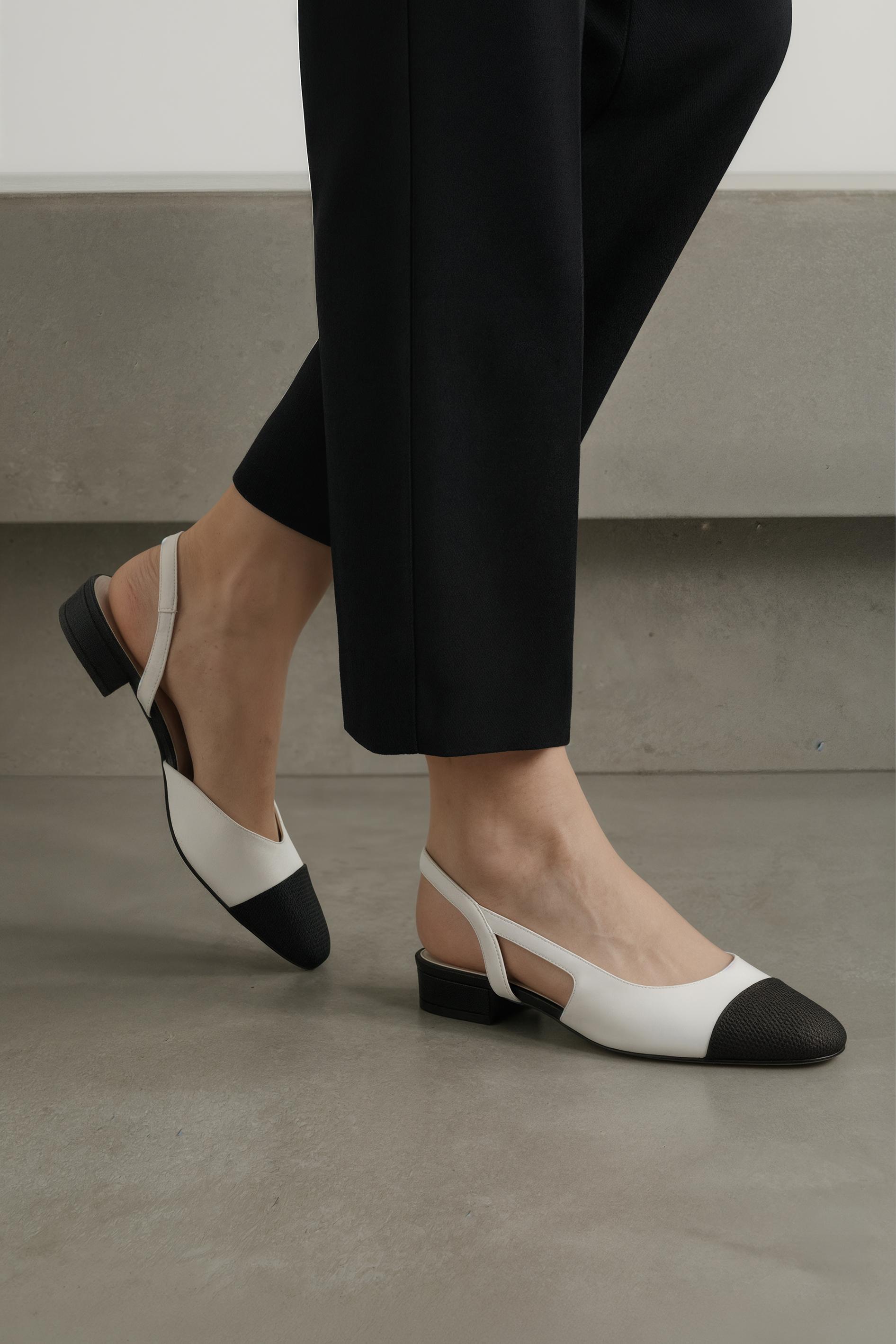 Элегантные туфли в белом цвете из натуральной кожи выглядят аккуратно и очень женственно благодаря лаконичному силуэту и контрастному мысу. Округлый мысок обеспечивает комфортную посадку и мягко смотрится на ноге, а едва заметный венский каблук обеспечивает удобство на каждый день. Открытая пятка с ремешком смотрится изящно, в то время как втачная резинка помогает посадке быть более точной и комфортной. Такая пара легко сочетается с платьями, юбками и брюками и отлично подходит для офиса, прогулок и мероприятий.