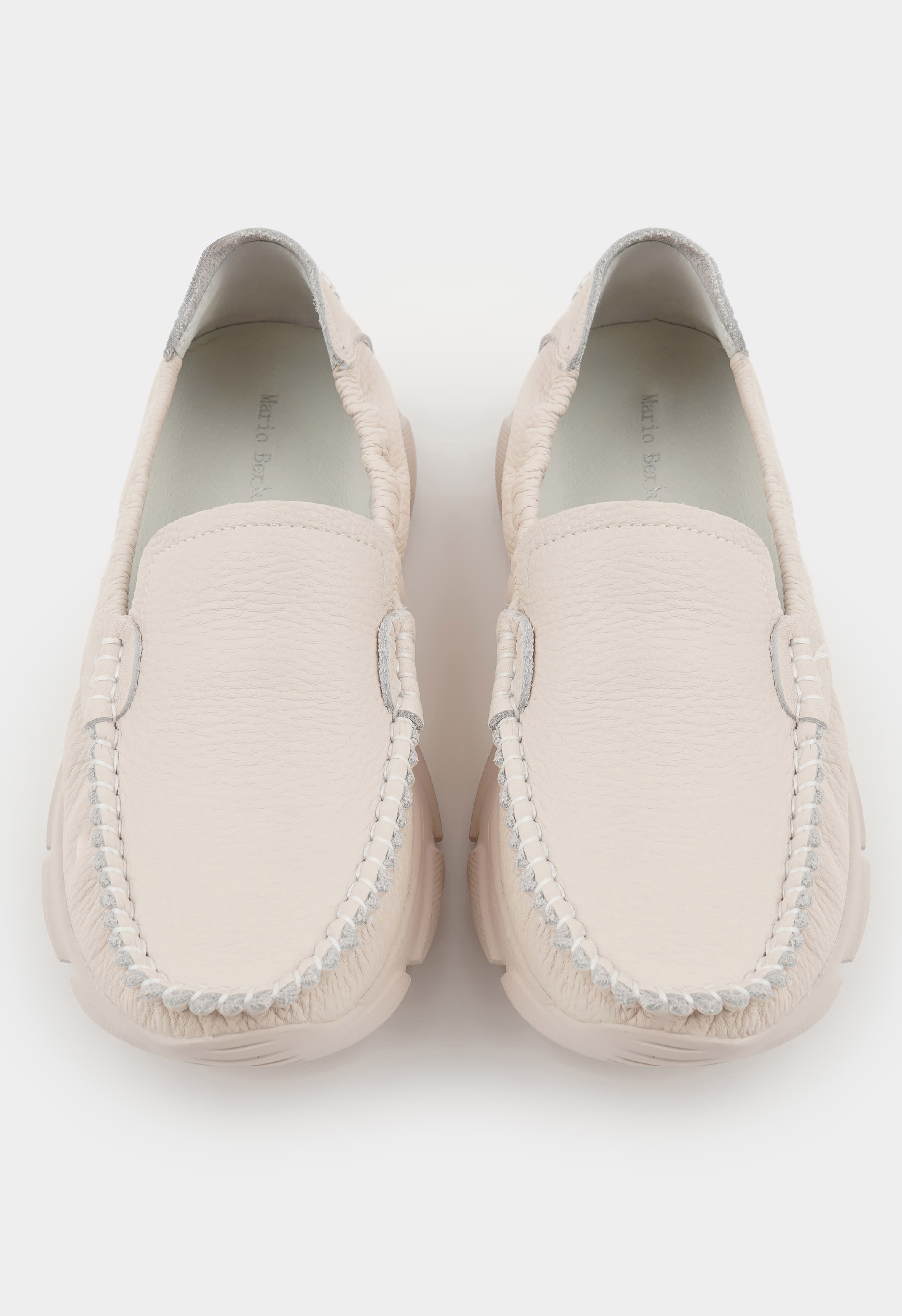 Бежевые слипперы из натуральной кожи – это беззаботная элегантность и непревзойденный комфорт в одном. Легкая кожа нежно обвивает стопу, придавая ощущение свободы, а округлый мысок добавляет обуви утонченности, не теряя при этом удобства. Выразительная платформа поднимает силуэт, при этом сохраняя стойкость каждого шага, а гибкая подошва позволяет движению быть легким и естественным.
