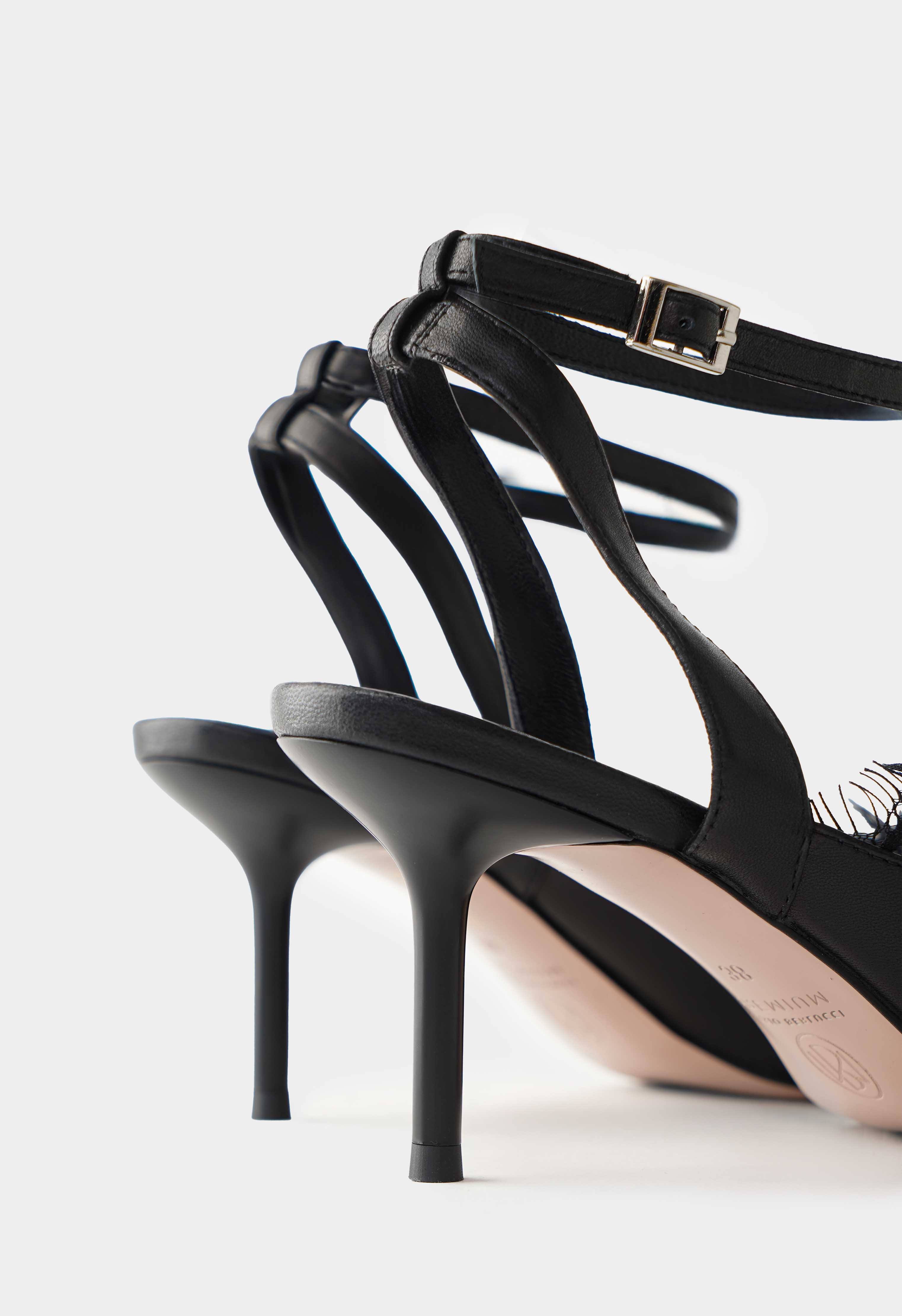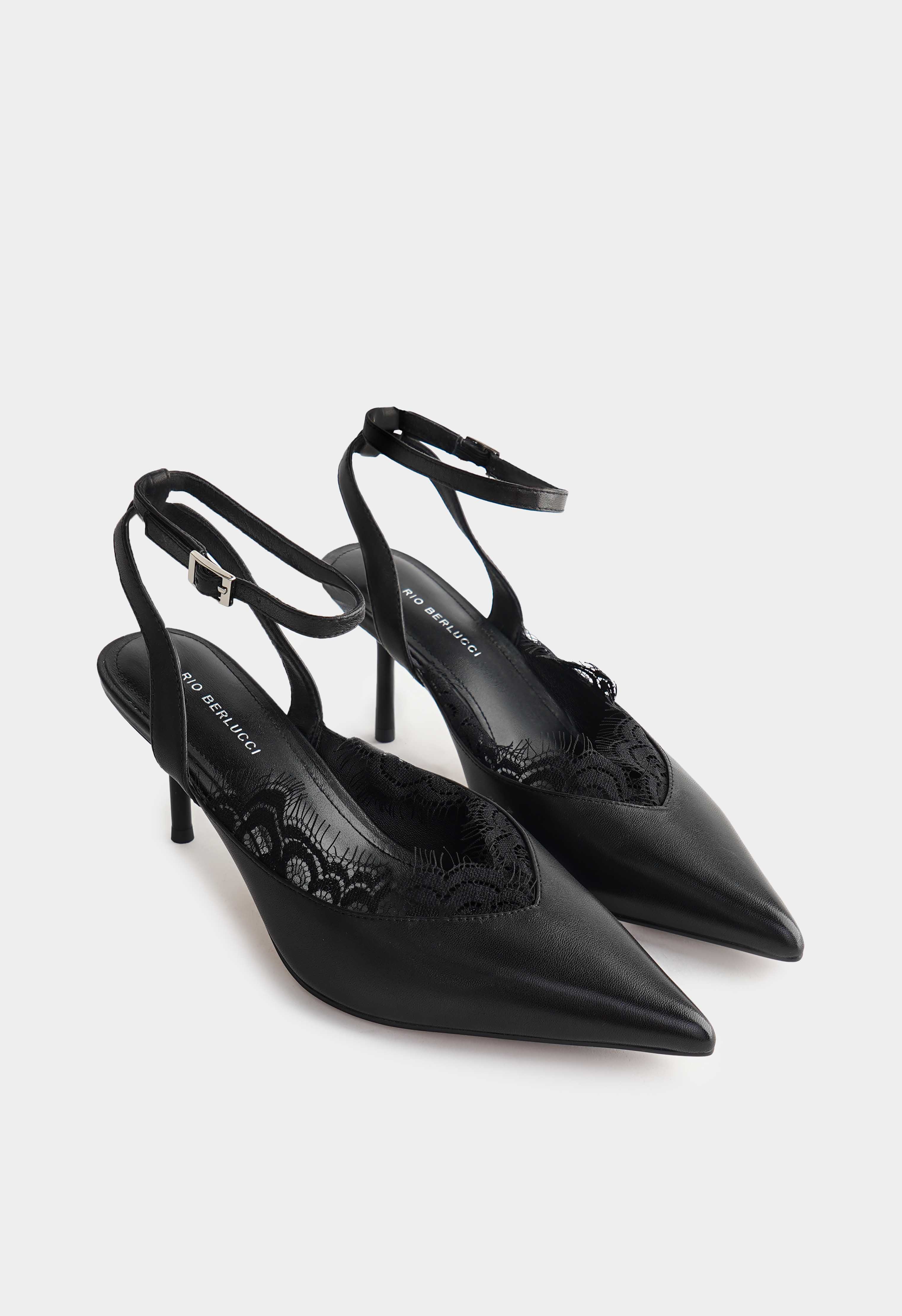 Элегантные черные туфли из натуральной кожи – идеальный выбор для создания утонченного и выразительного образа. Заостренный мысок визуально вытягивает силуэт, а клиновидный каблук обеспечивает устойчивость и комфорт в течение дня. Деликатное кружево добавляет модели изысканности и легкости. Серебряная пряжка выступает стильным акцентом, в то время как жесткая подошва гарантирует надежность и уверенную походку.