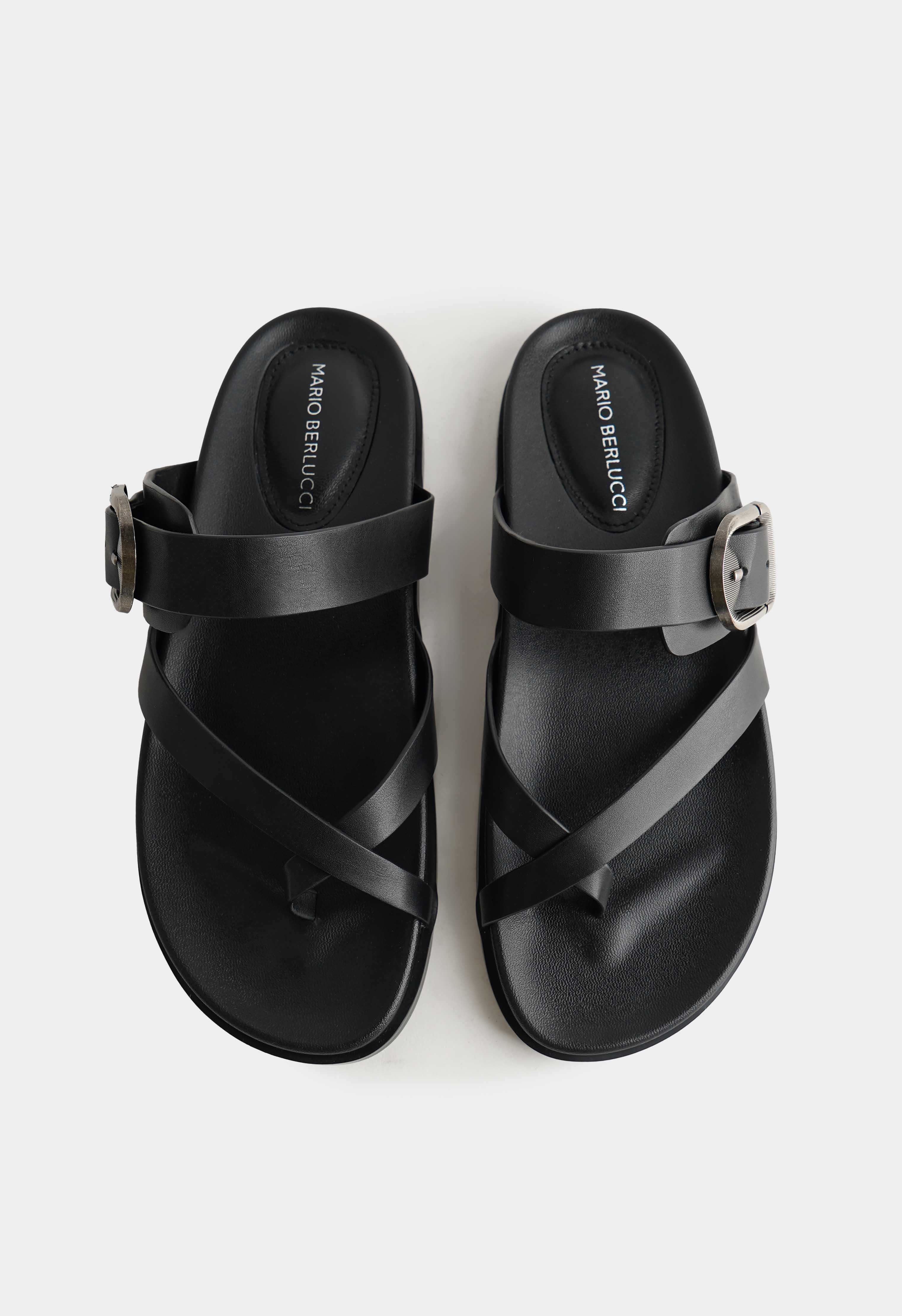 Элегантные черные пантолеты из натуральной кожи – идеальный выбор для стильного повседневного образа. Открытый мысок и широкие перекрестные ремешки создают легкость и визуальный акцент, а регулируемая металлическая пряжка добавляет современный штрих. Платформа придает уверенный шаг, в то время как жесткая подошва обеспечивает долговечность и устойчивость при ходьбе. Эти пантолеты гармонично сочетают минимализм и практичность, делая их универсальным дополнением к любому образу.