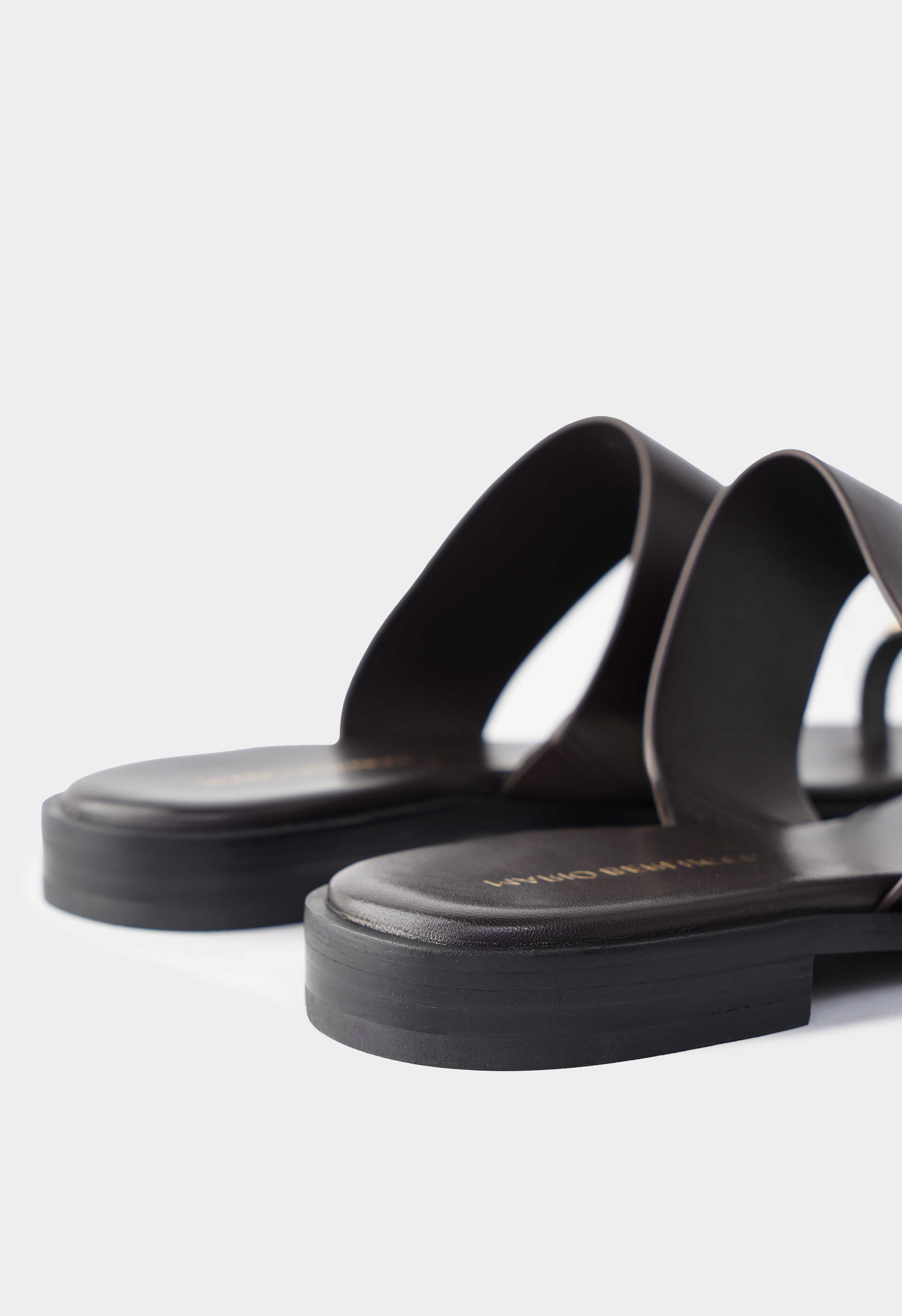 Коричневые кожаные сандалии с открытым мысом – лаконичная пара, которая выглядит дорого и аккуратно в любом летнем образе. Натуральная кожа смотрится гладко и благородно, широкая перемычка надежно фиксирует стопу, а тонкое кольцо на пальце с золотой фурнитурой добавляет изящный акцент. Невысокий венский каблук делает силуэт более собранным и удобным на каждый день, в то время как жесткая подошва держит форму.