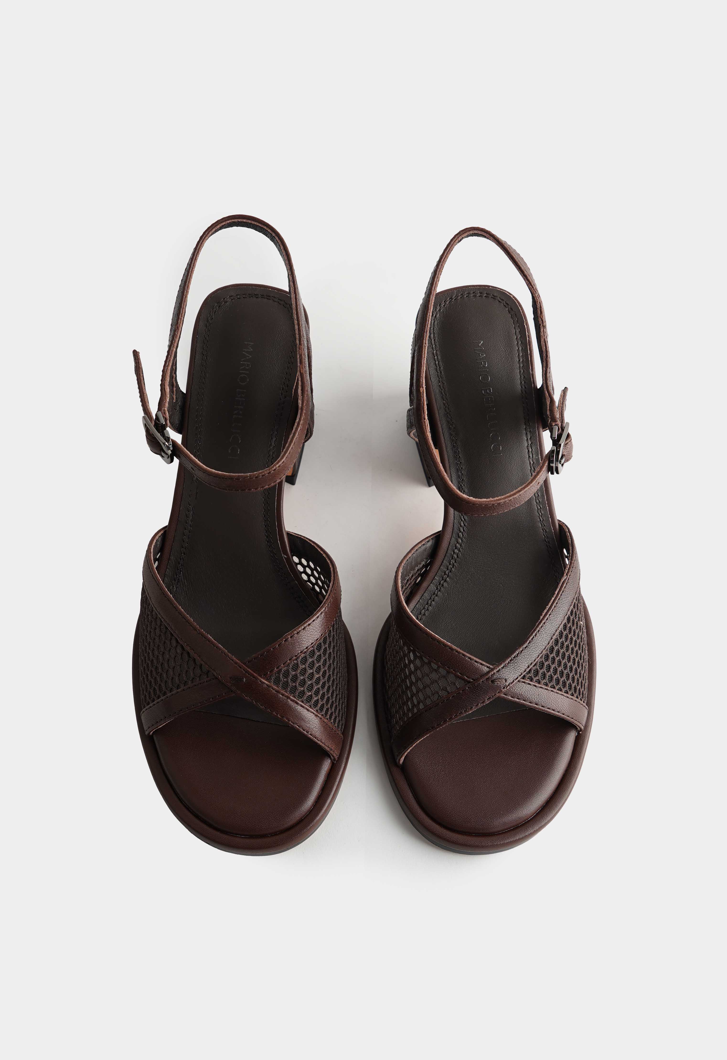 Коричневые босоножки из натуральной кожи и текстиля – легкая пара с аккуратным силуэтом и интересной фактурой. Текстильная сетка добавляет воздушности и делает модель визуально легче, кожаные элементы подчеркивают форму и выглядят ухоженно. Открытый мысок создает летнее настроение, а трапециевидный каблук дает устойчивую высоту и современный акцент. Ремешок с пряжкой в цвете металлик позволяет точно отрегулировать посадку и аккуратно фиксирует стопу. Жесткая подошва держит форму и обеспечивает стабильный шаг.