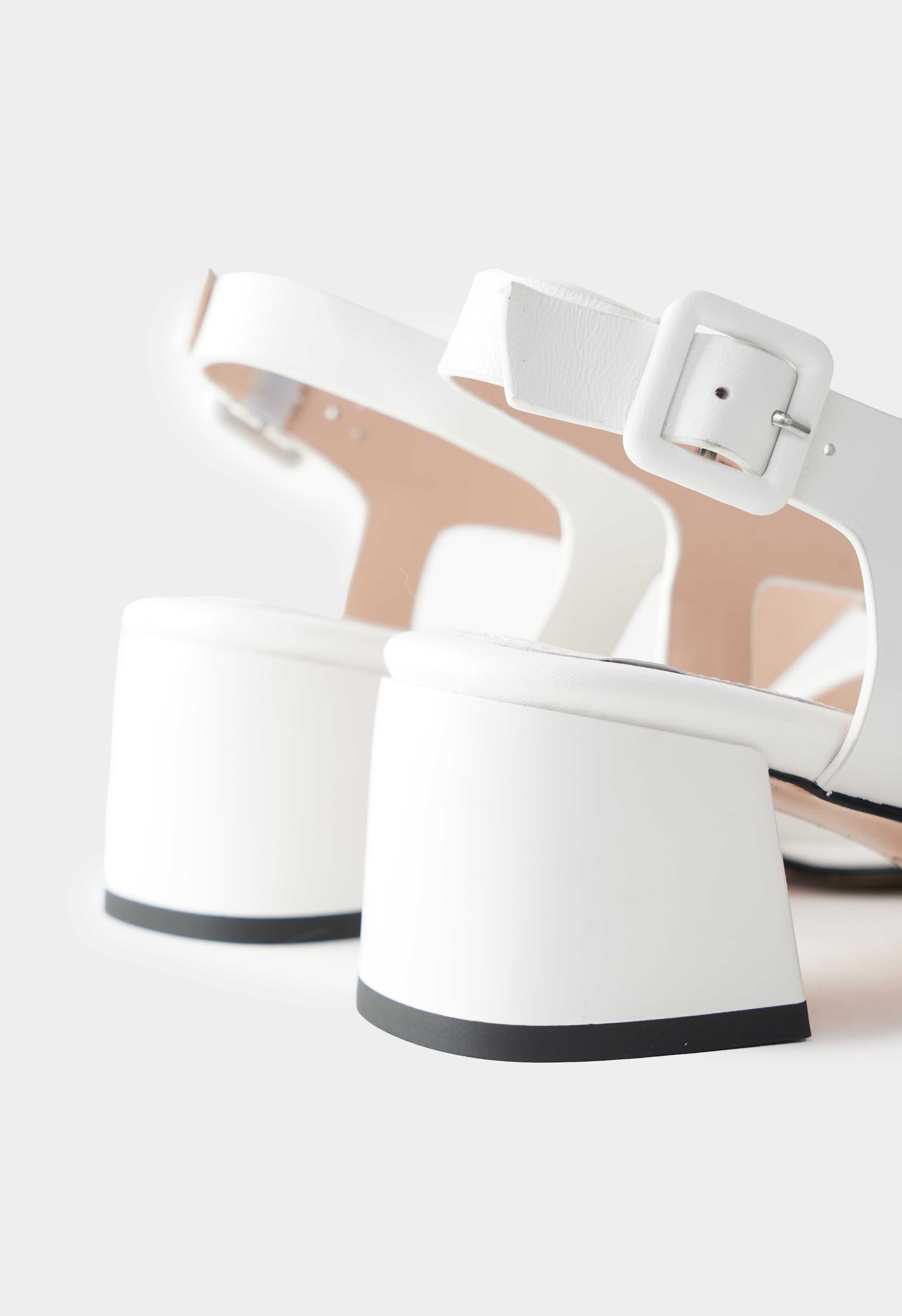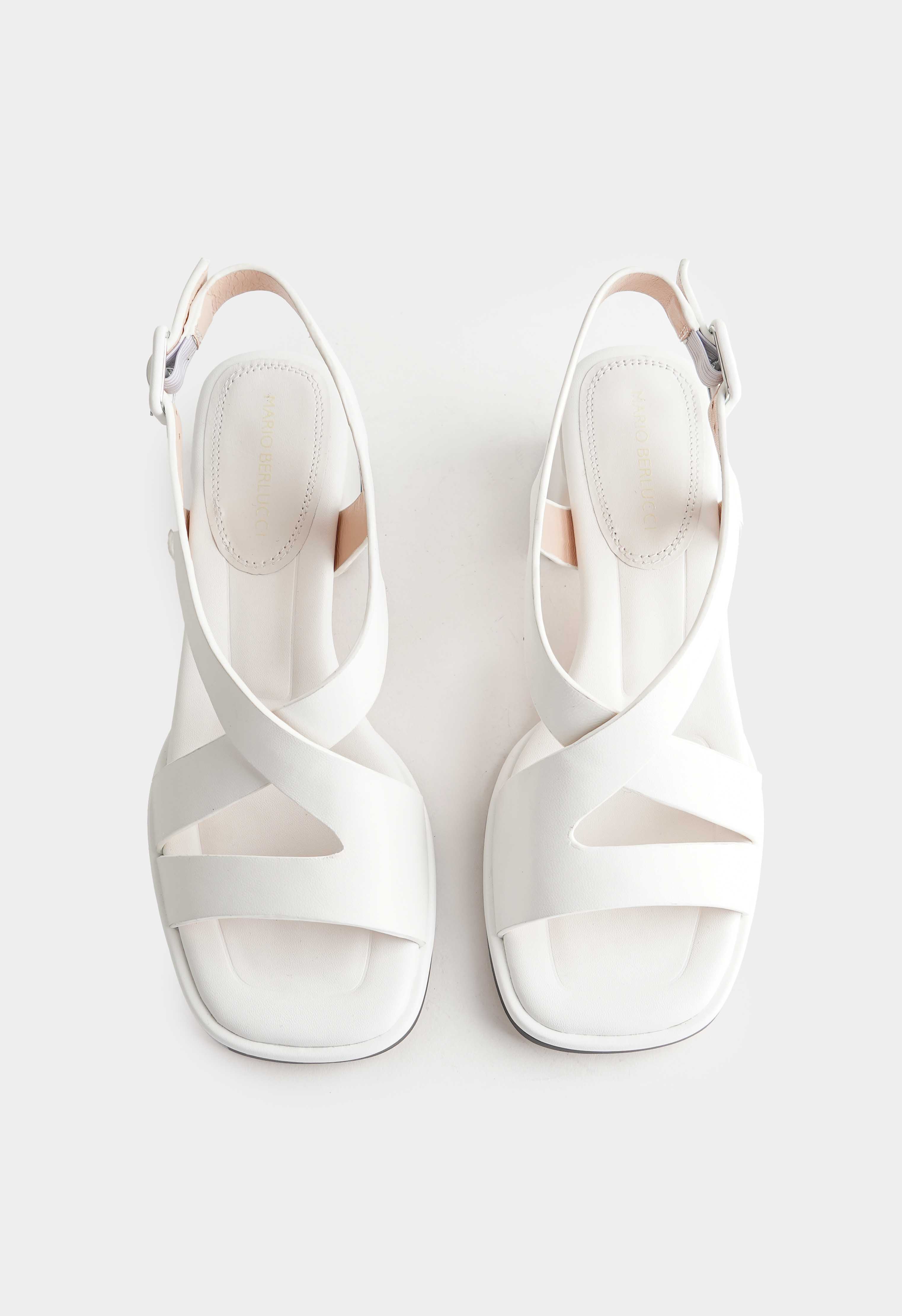 Белые босоножки из натуральной кожи – свежая и аккуратная пара, которая делает образ легким и собранным. Широкие кожаные ремешки красиво переплетаются и надежно фиксируют стопу, а открытый мысок добавляет летнего настроения и подчеркивает педикюр. Трапециевидный каблук обеспечивает устойчивую высоту и смотрится современно, не утяжеляя силуэт. Фурнитура в тон поддерживает чистый минимализм и делает модель особенно гармоничной. Жесткая подошва держит форму и обеспечивает стабильную опору.