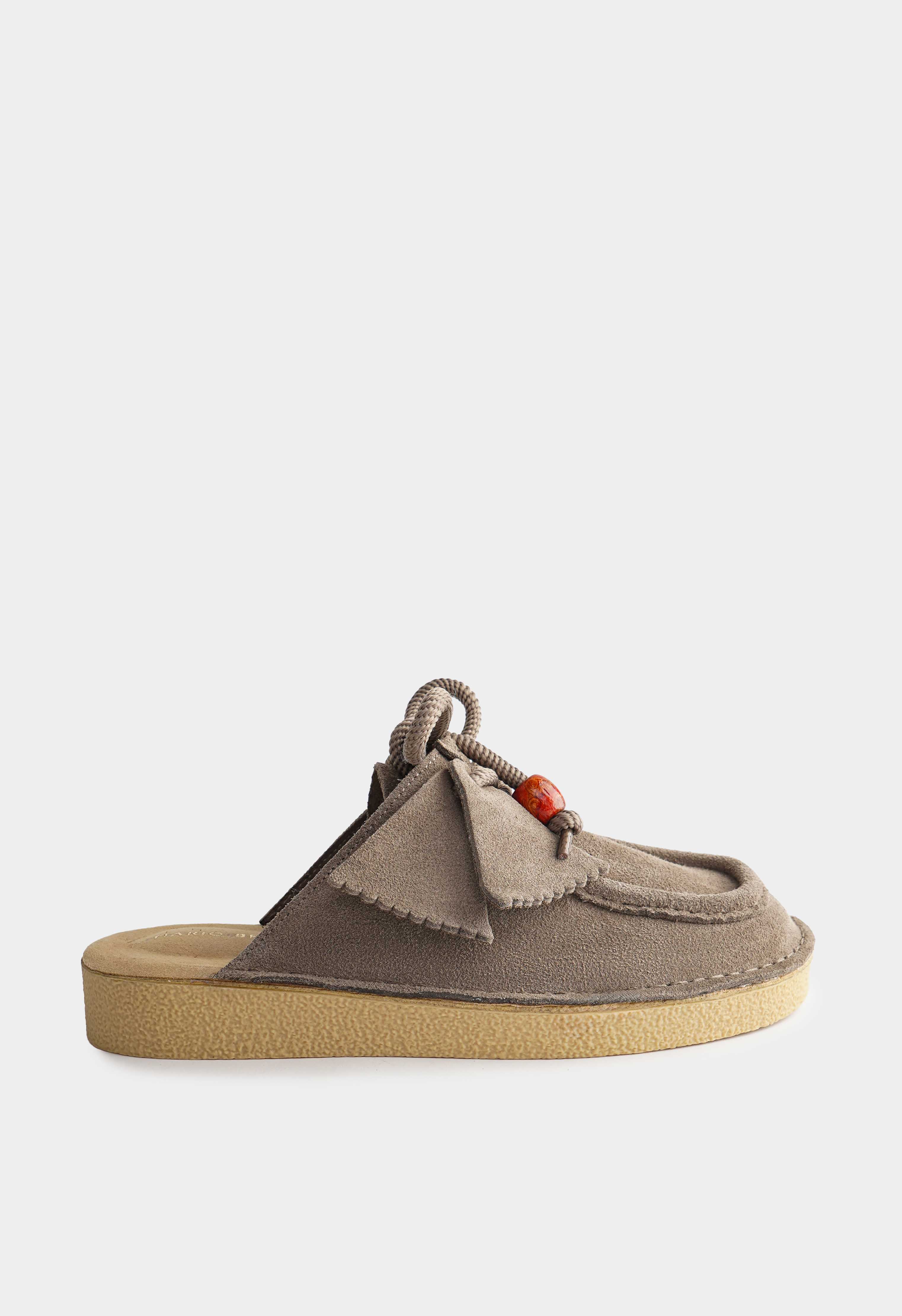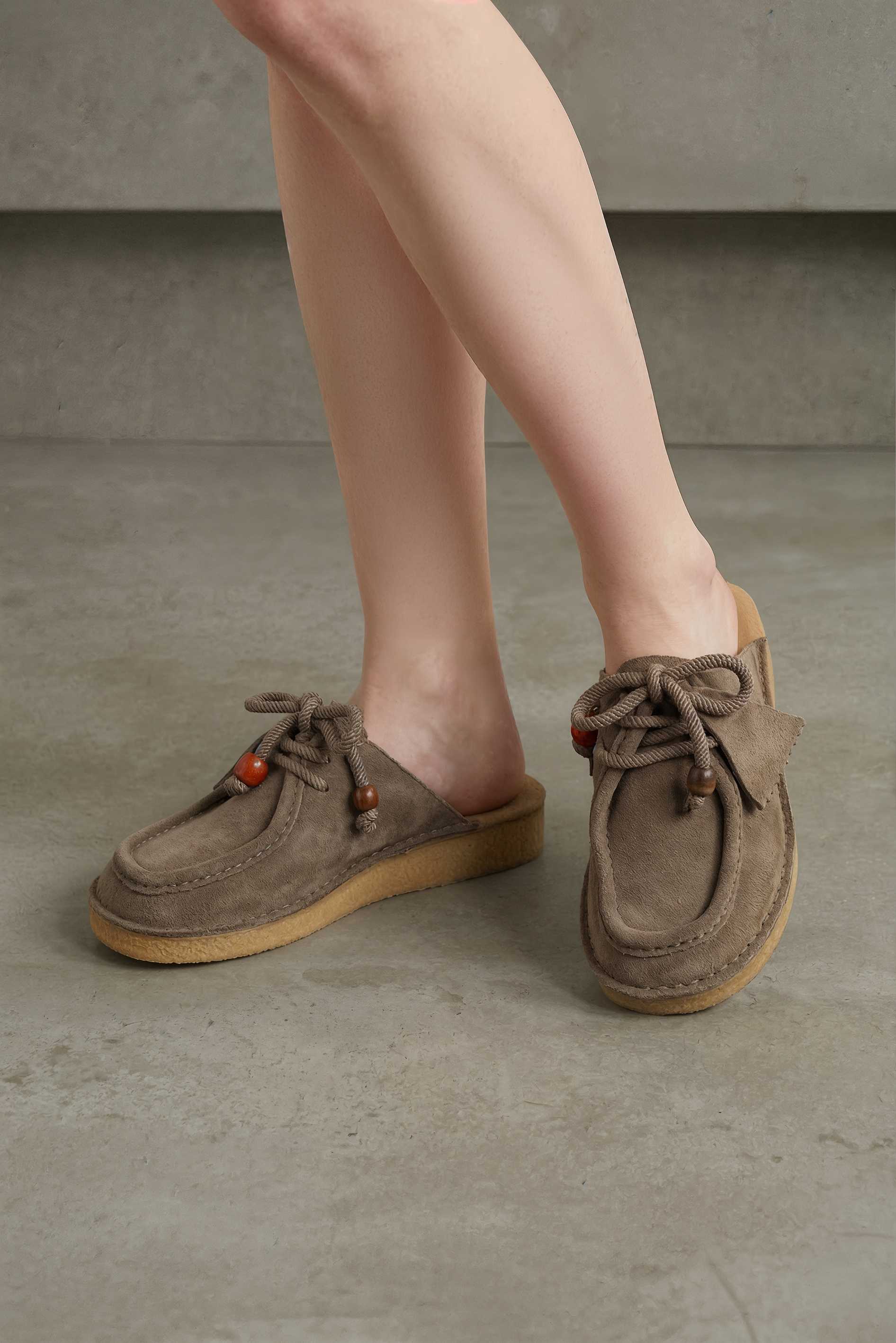 Серые пантолеты из натуральной замши – уютная пара с мягким пастельным оттенком и выразительными деталями. Бархатистая замша смотрится нежно и аккуратно, округлый мысок создает комфортный мягкий силуэт. Декоративная шнуровка с объемным узлом и яркими бусинами добавляет игривый акцент и делает модель заметной даже в простом образе. Платформа приподнимает и визуально вытягивает силуэт, а жесткая подошва держит форму и дает стабильную опору.