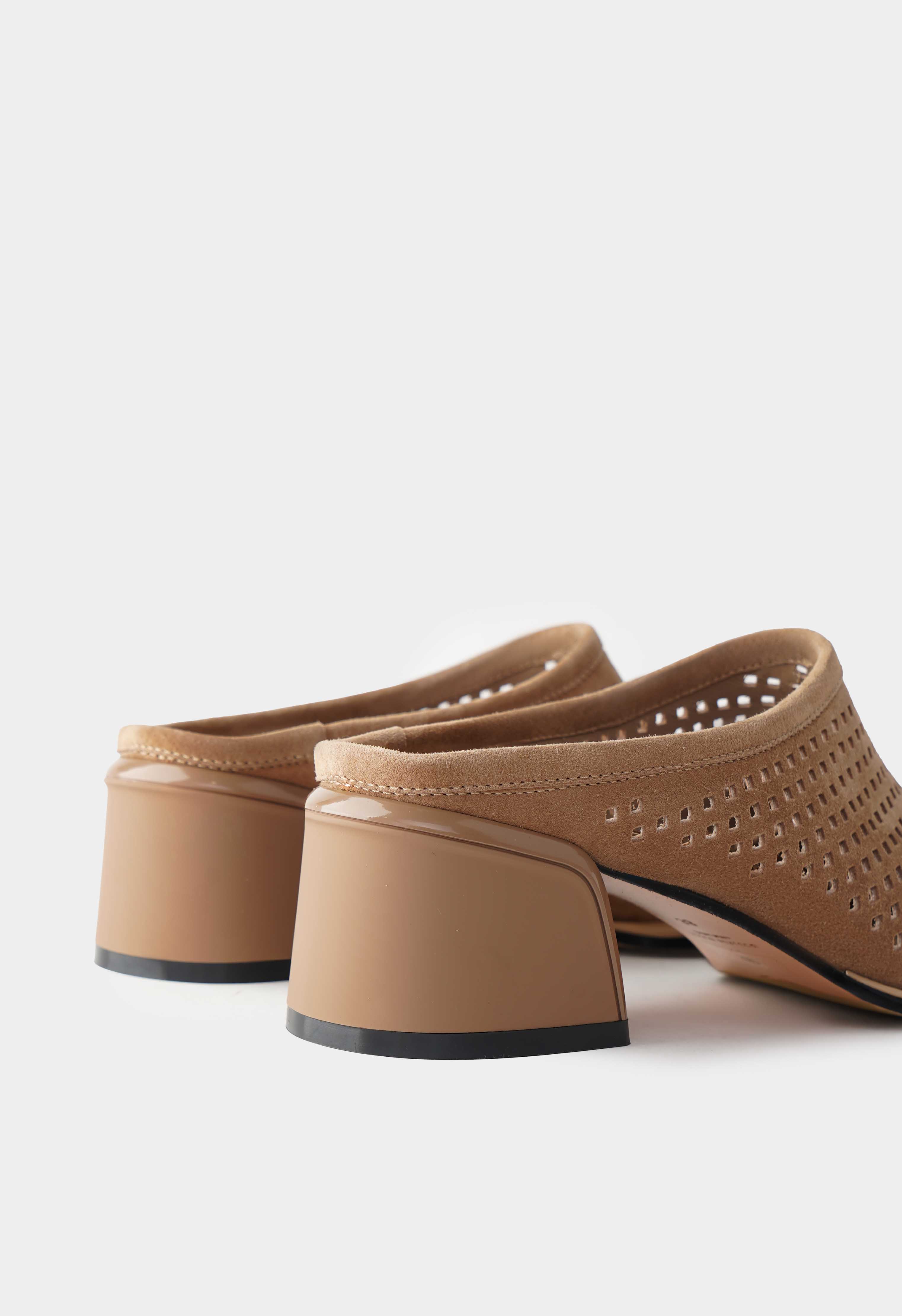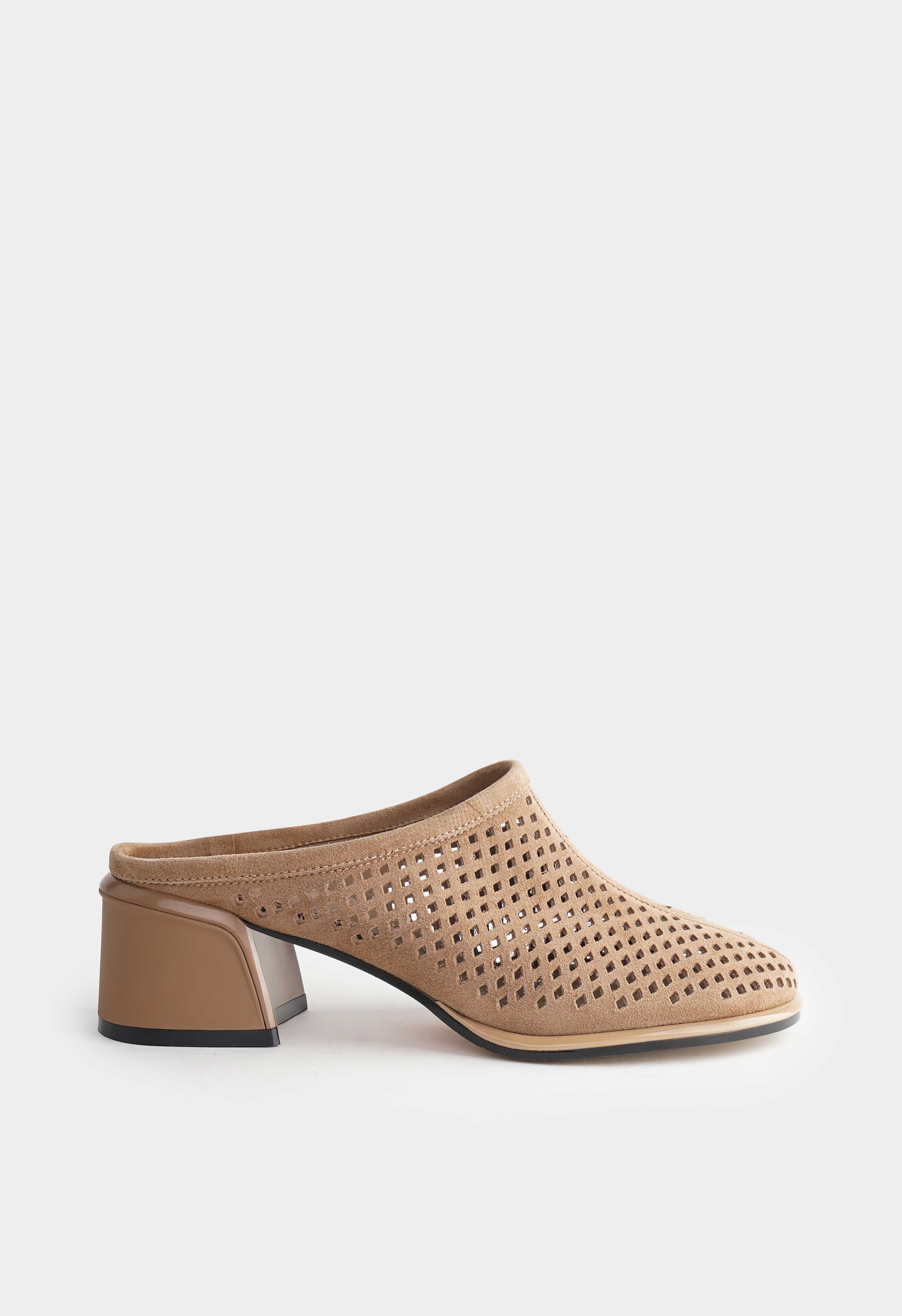 Бежевые мюли из натуральной замши – спокойная элегантность с «дорогим» характером, которая легко вписывается в базовый гардероб. Мягкая бархатистая фактура замши делает образ более уютным и ухоженным, а округлый мысок дает комфортную посадку и аккуратный силуэт. Трапециевидный каблук выглядит современно, добавляет высоту и остается устойчивым для уверенного шага. Жесткая подошва держит форму и поддерживает стабильность.