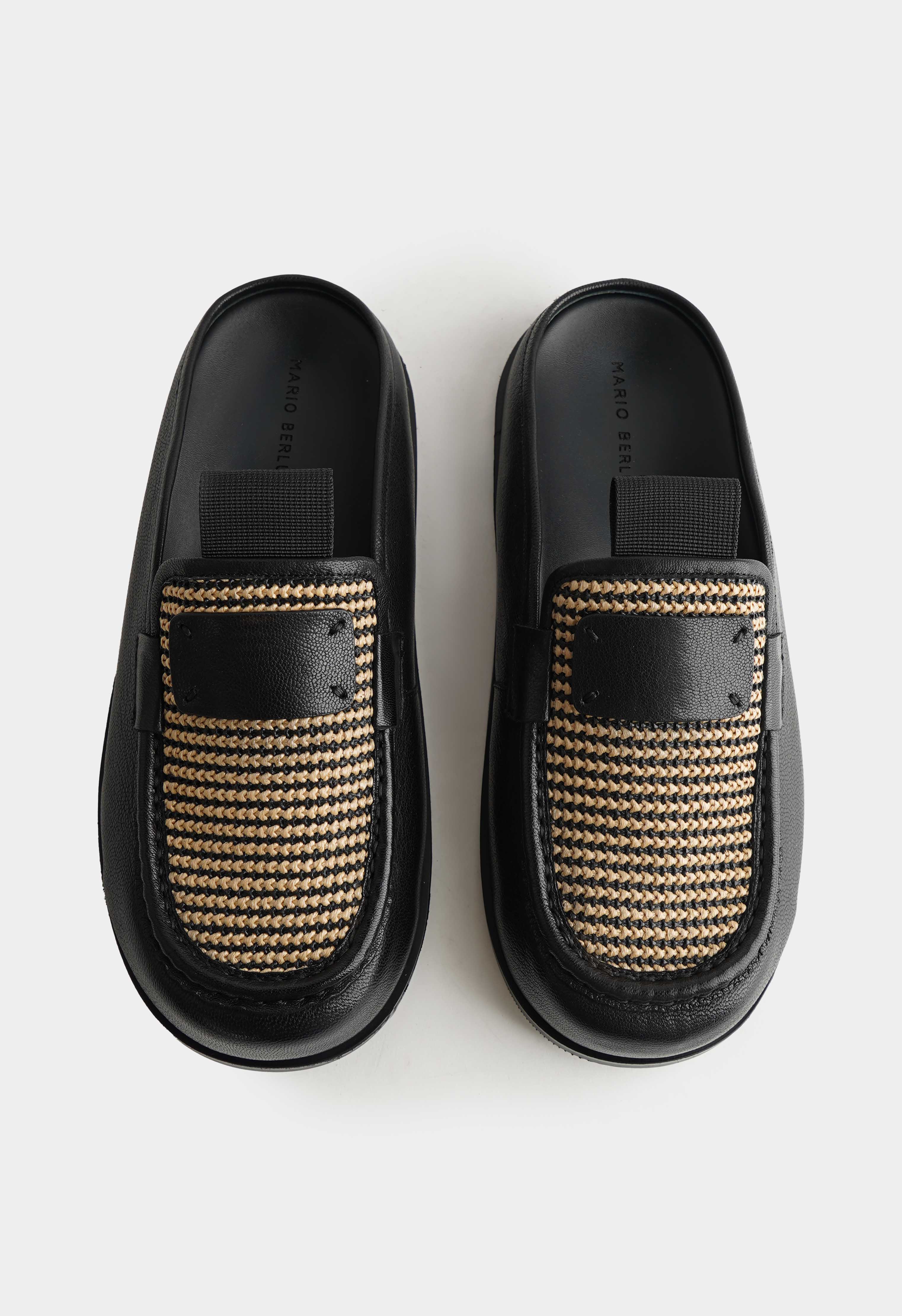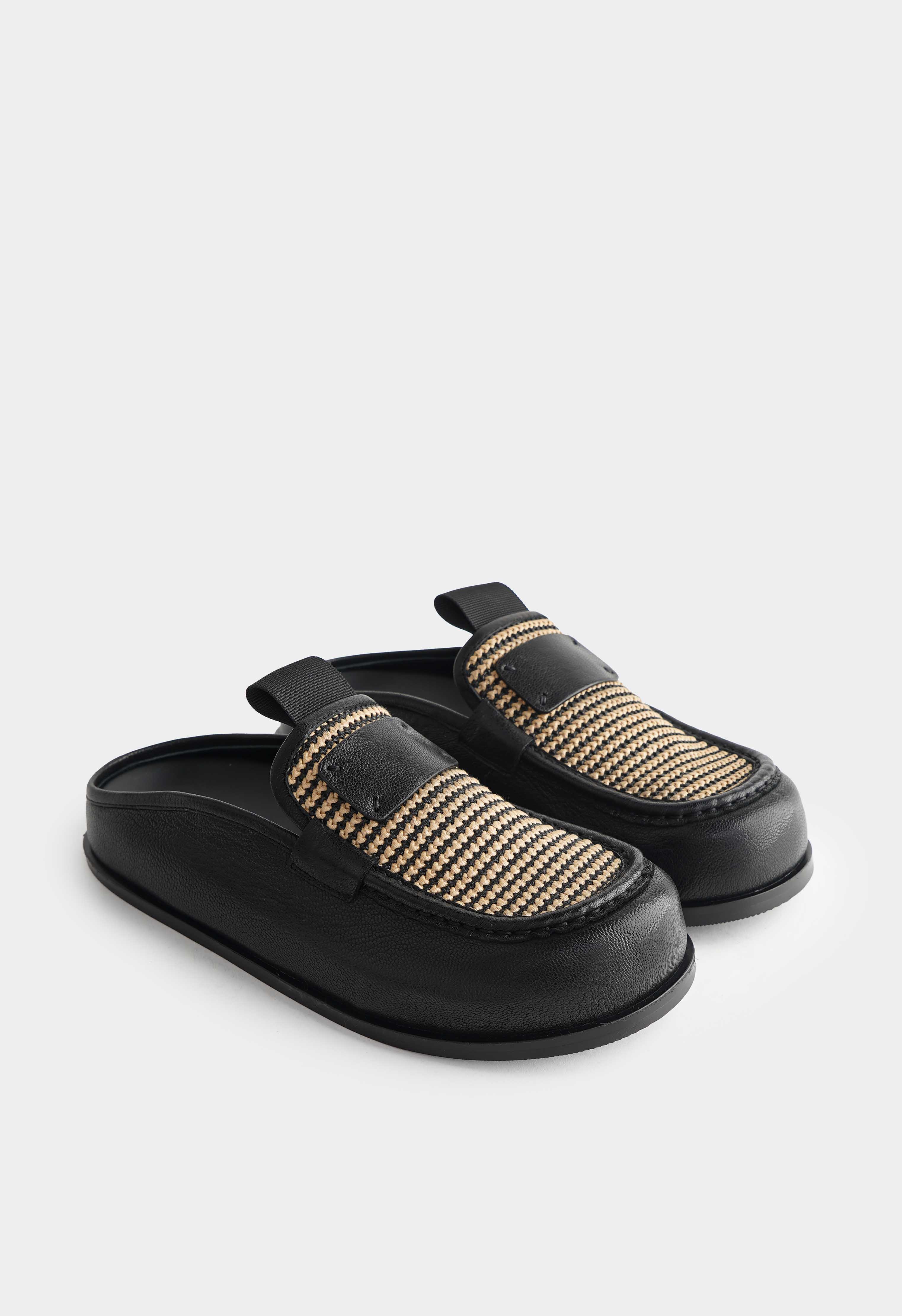 Эти стильные мюли сочетают контрастный черный цвет с плетеной бежевой фактурой, создавая модный и заметный образ. Мягкая натуральная кожа и округлый мысок обеспечивают комфорт на протяжении всего дня, платформа придает дополнительную высоту и уверенность в походке, а жесткая подошва делает каждое движение стабильным и надежным – идеальный выбор для ярких повседневных и вечерних образов.