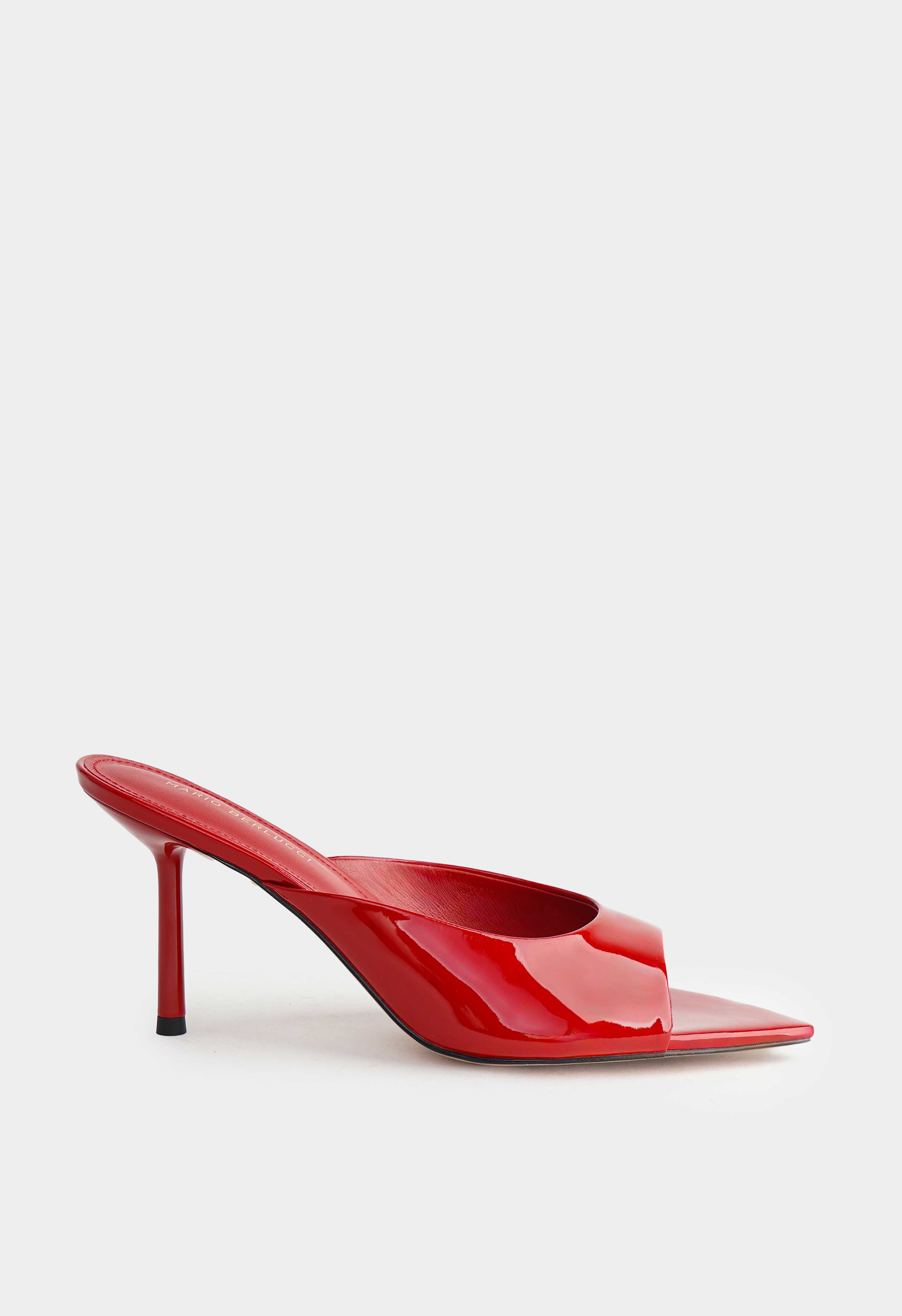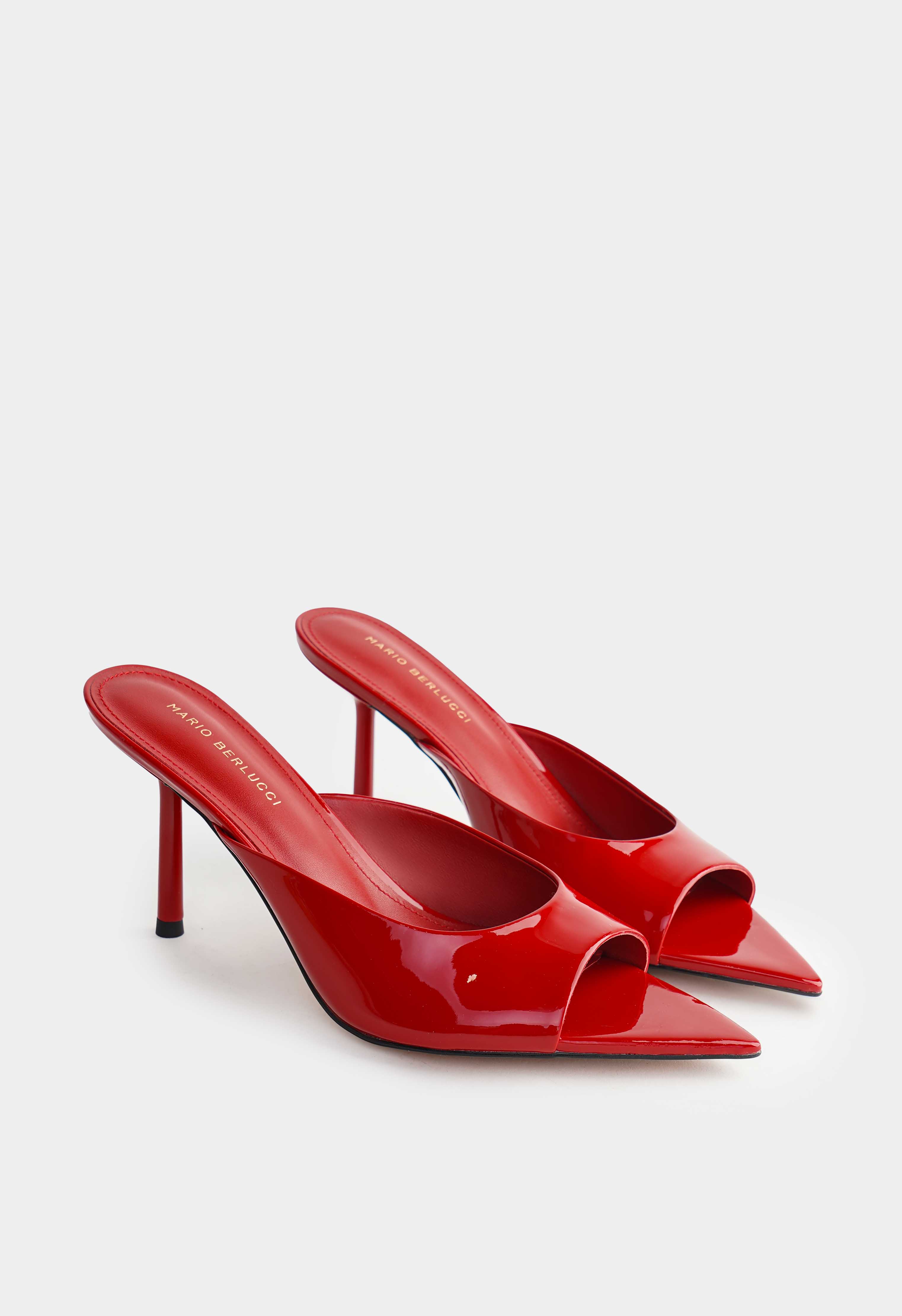 Красные мюли из натуральной лаковой кожи – чистый, эффектный акцент, который мгновенно делает образ более собранным и нарядным. Зеркальный глянец подчеркивает безупречный цвет, а открытый мысок добавляет легкости и красиво выделяет педикюр. Тонкая шпилька придает изящную высоту и визуально вытягивает ноги, сохраняя элегантный силуэт. Жесткая подошва держит форму и обеспечивает стабильную опору.