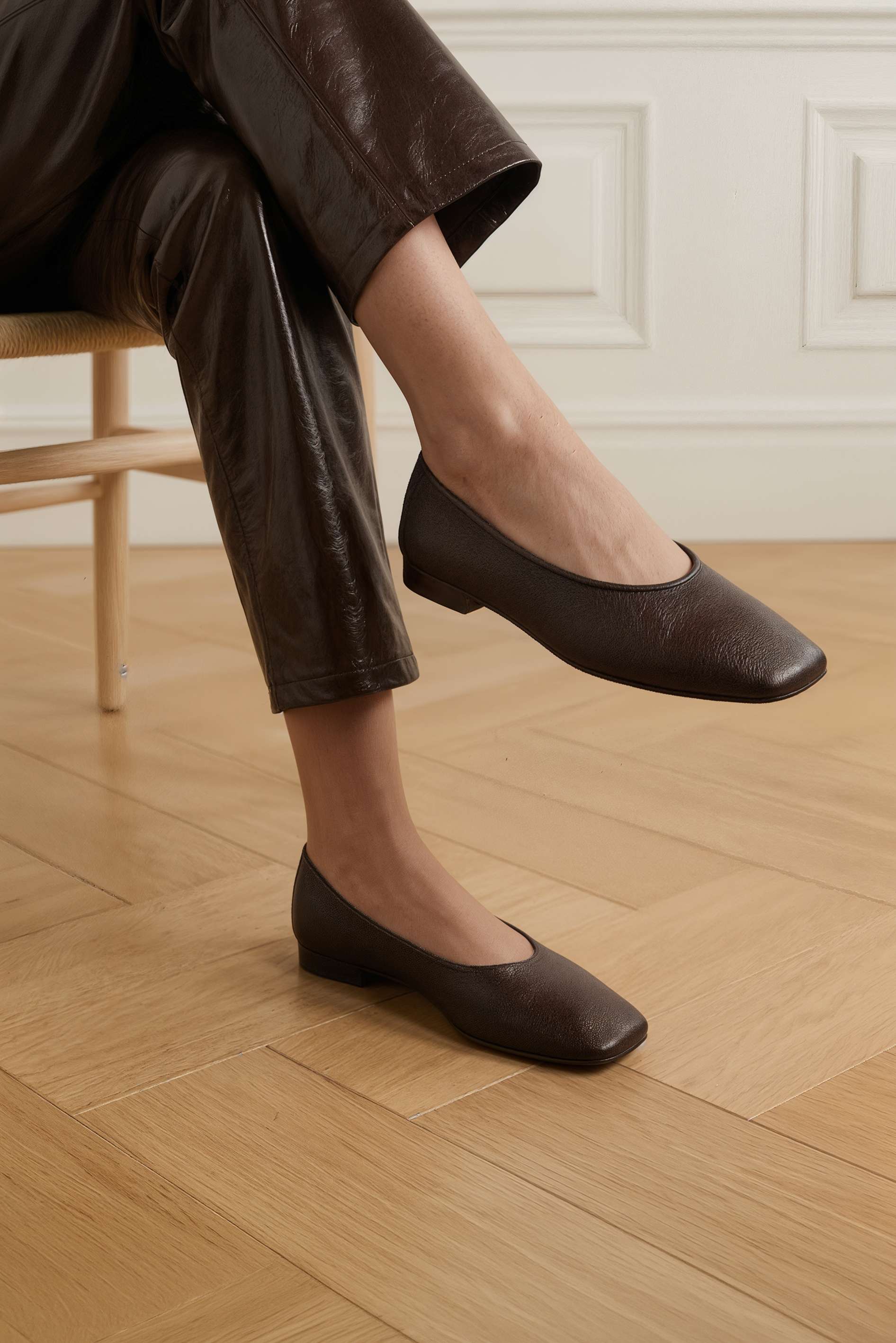 Минималистичные коричневые балетки из натуральной кожи – универсальная пара, которая выглядит аккуратно и дорого в любом гардеробе. Квадратный мысок делает силуэт более собранным, а гладкая кожа красиво смотрится и легко сочетается с брюками, джинсами, юбками и платьями. Лаконичный дизайн без лишнего декора подчеркивает стиль и уместен и в офисе, и на прогулке. Гибкая подошва мягко сгибается при шаге и дарит комфорт на весь день.