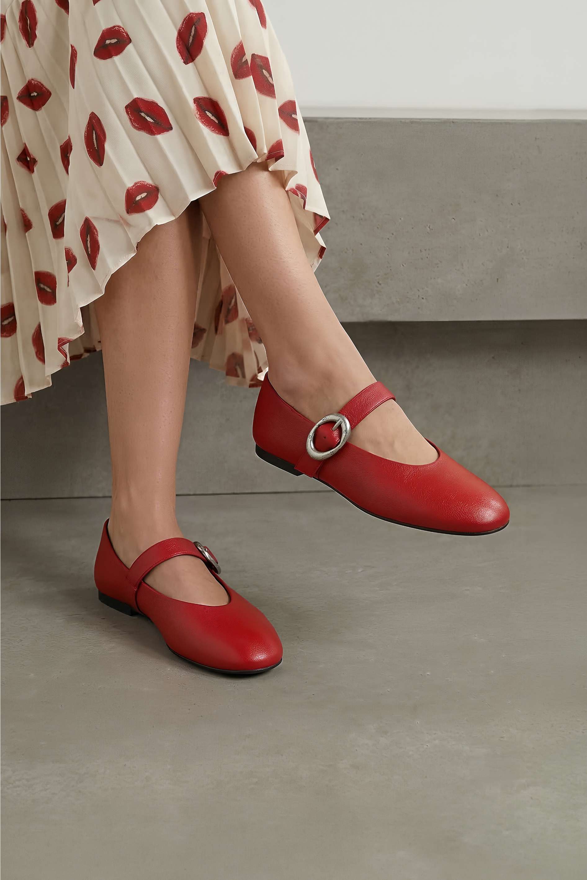 Красные балетки из натуральной кожи – свежая, аккуратная пара, которая добавляет образу легкости и ухоженности. Округлый мысок создает мягкий силуэт и комфортную посадку, а невысокий венский каблук делает модель удобной для активного дня. Акцентный ремешок с пряжкой в цвете металлик смотрится как украшение и придает балеткам изящный характер. Жесткая подошва хорошо держит форму и дает стабильную опору.