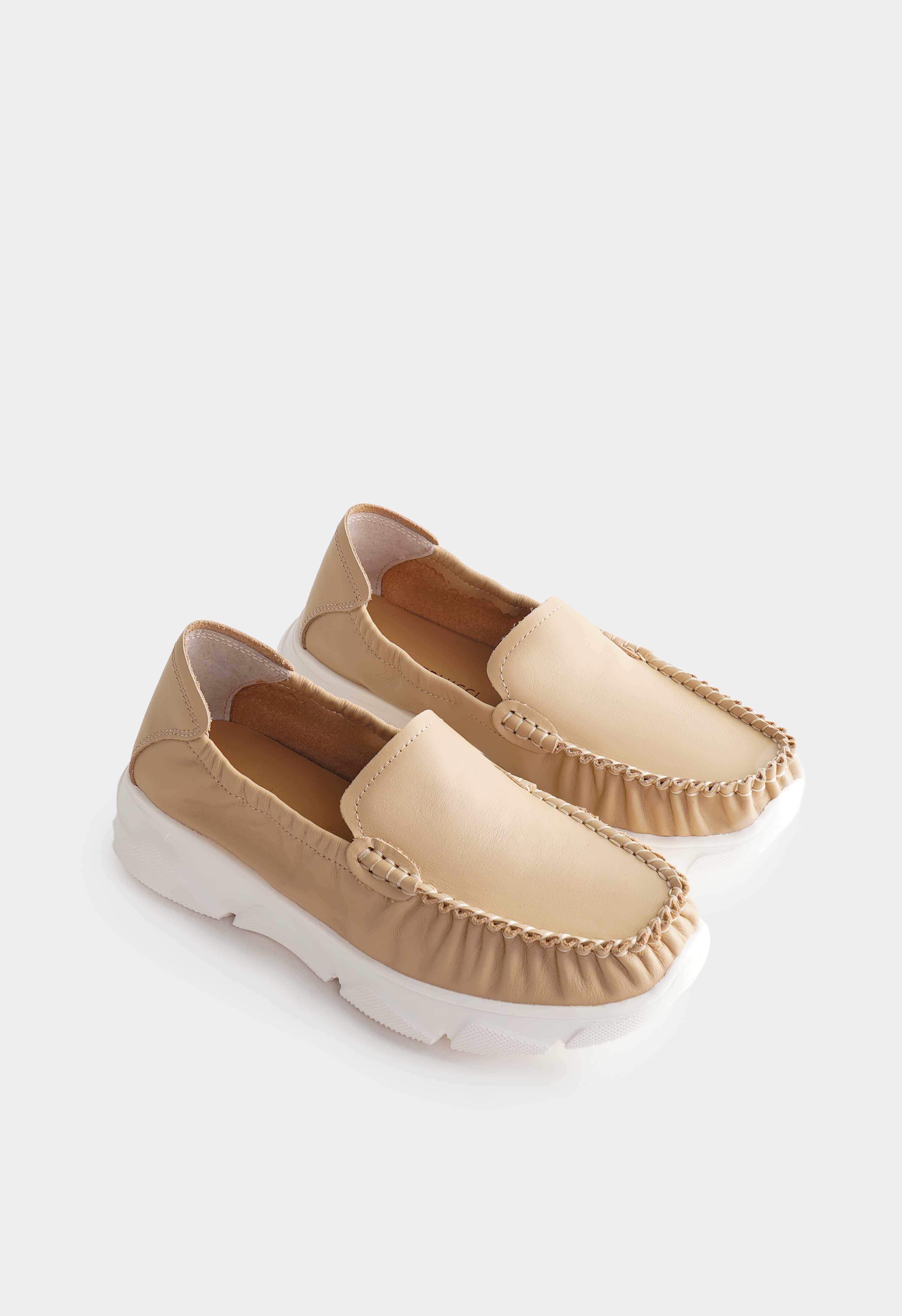 Летние мокасины из натуральной кожи подарят вам максимальный комфорт даже в жаркую погоду. Бежевый цвет и округлый мысок создают стильный и универсальный образ, а гибкая платформа обеспечивает легкость и удобство при ходьбе. Эти мокасины идеально подходят для повседневной носки, прогулок по городу и летнего отдыха, сочетая элегантность, практичность и дышащие натуральные материалы.