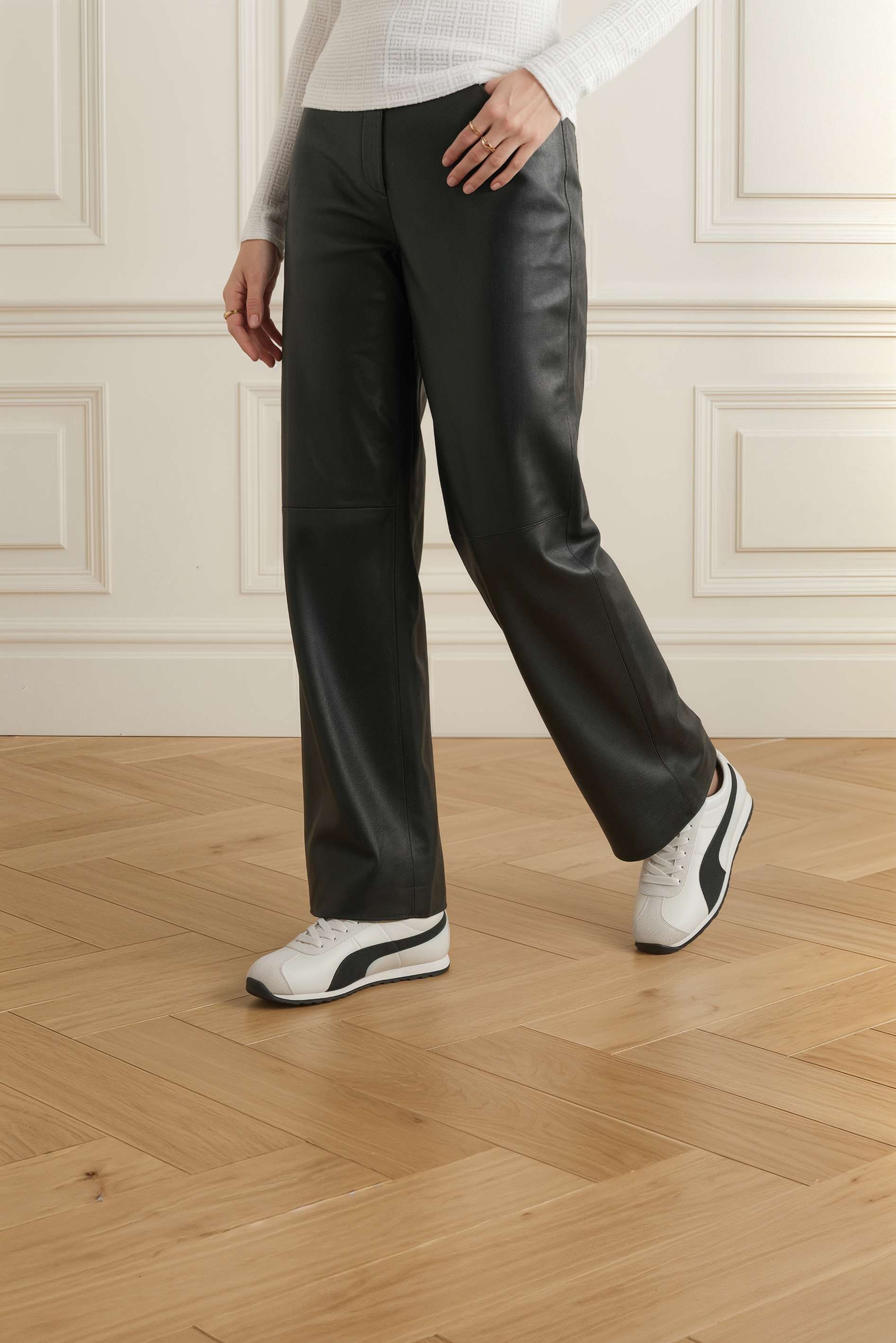 Бело-черные кроссовки из натуральной кожи – аккуратная пара с динамичным контрастом, которая смотрится собранно и легко сочетается с любым гардеробом. Гладкая кожа выглядит опрятно и держит форму, а округлый мысок обеспечивает комфортную посадку на каждый день. Классическая шнуровка помогает точно подогнать кроссовки по стопе и добавляет аккуратный спортивный стиль образу. Гибкая подошва мягко амортизирует и легко сгибается при ходьбе.