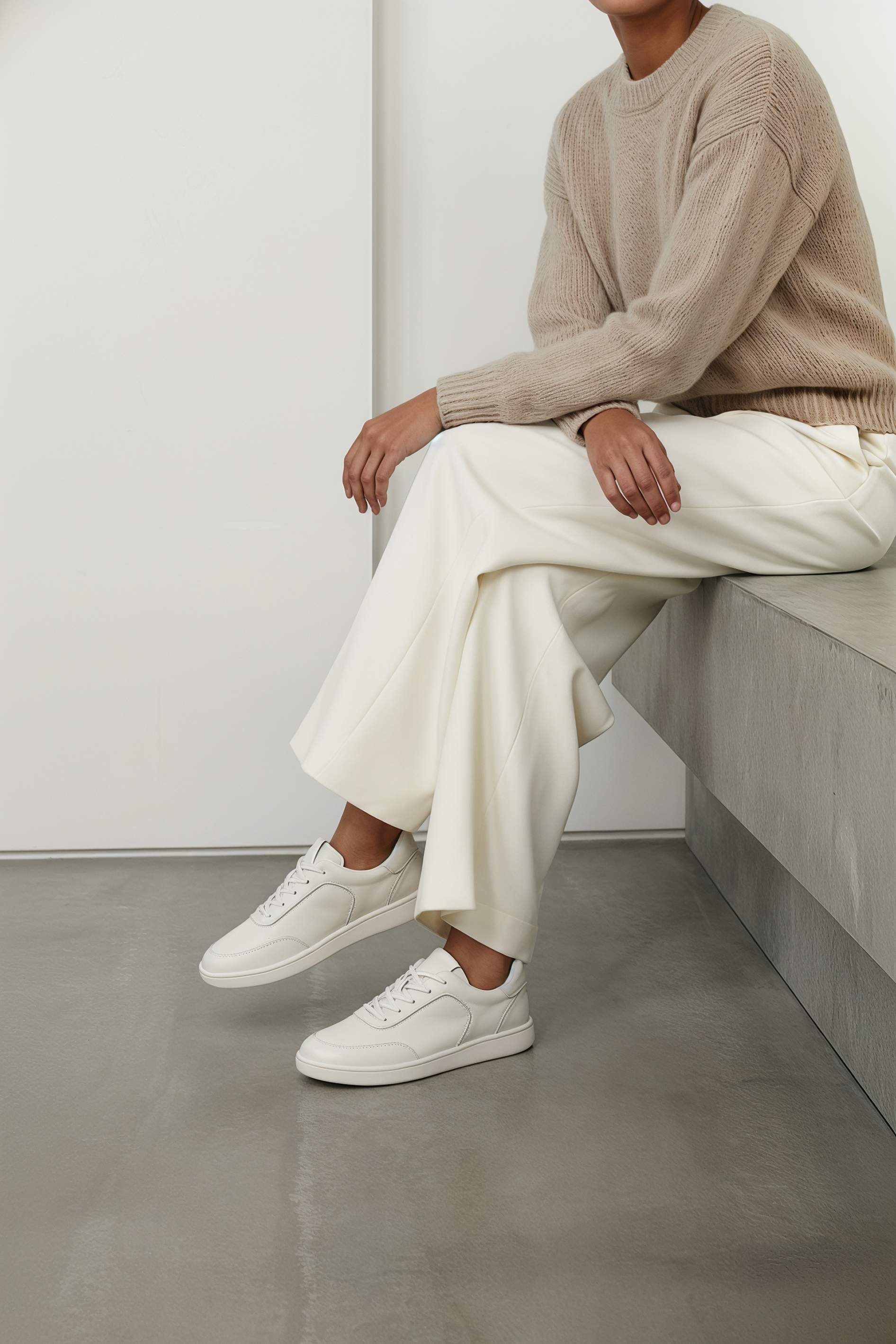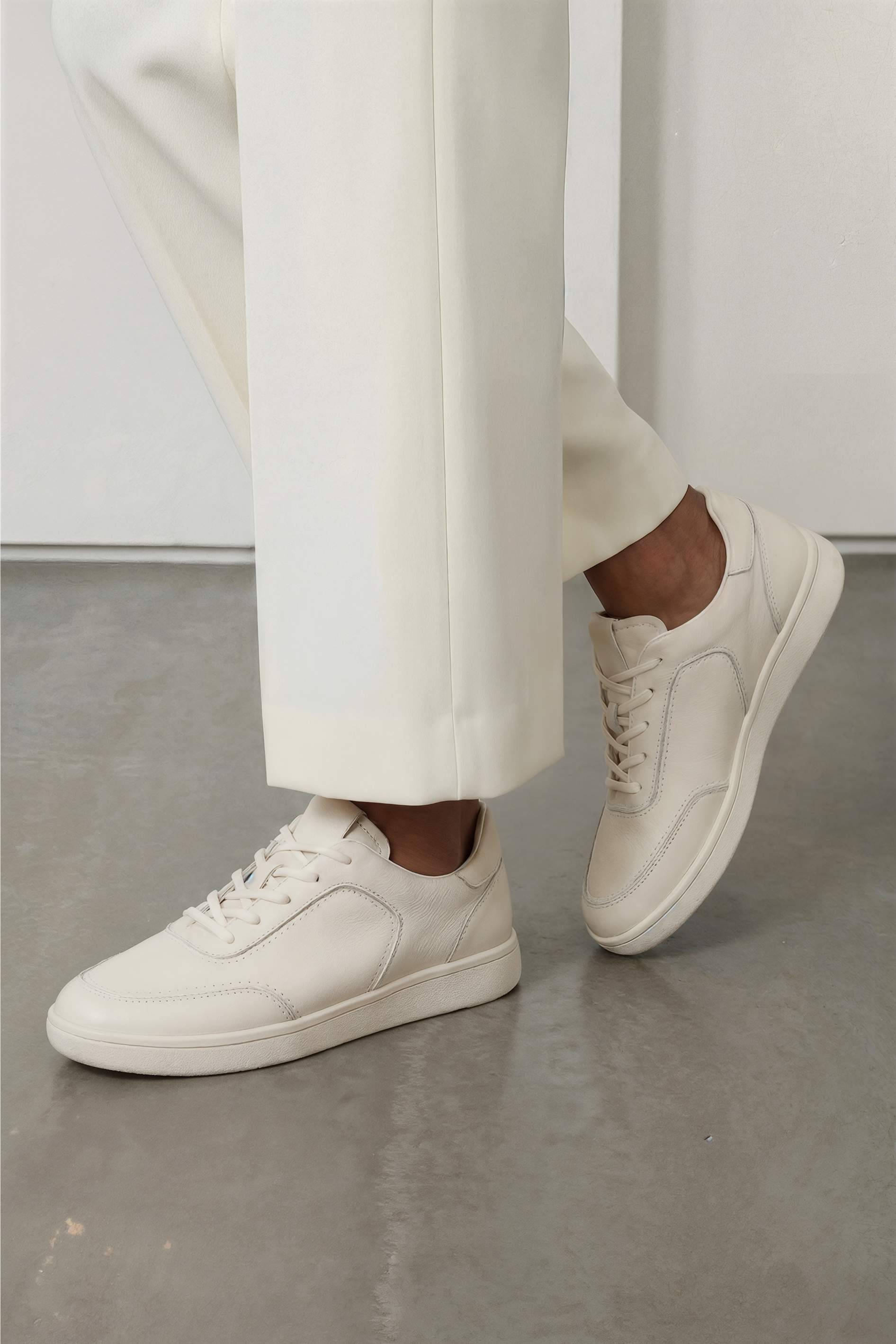 Минималистичные бежевые кеды из натуральной кожи – идеальная базовая пара с аккуратными линиями и чистым дизайном. Гладкая кожа смотрится свежо и дорого, легко вписывается в повседневные и более собранные образы. Округлый мысок обеспечивает комфортную посадку без лишнего давления, а классическая шнуровка помогает точно отрегулировать фиксацию по стопе. Удобная платформа визуально вытягивает силуэт и добавляет современный акцент, при этом гибкая подошва мягко амортизирует и поддерживает лёгкий шаг на протяжении всего дня.